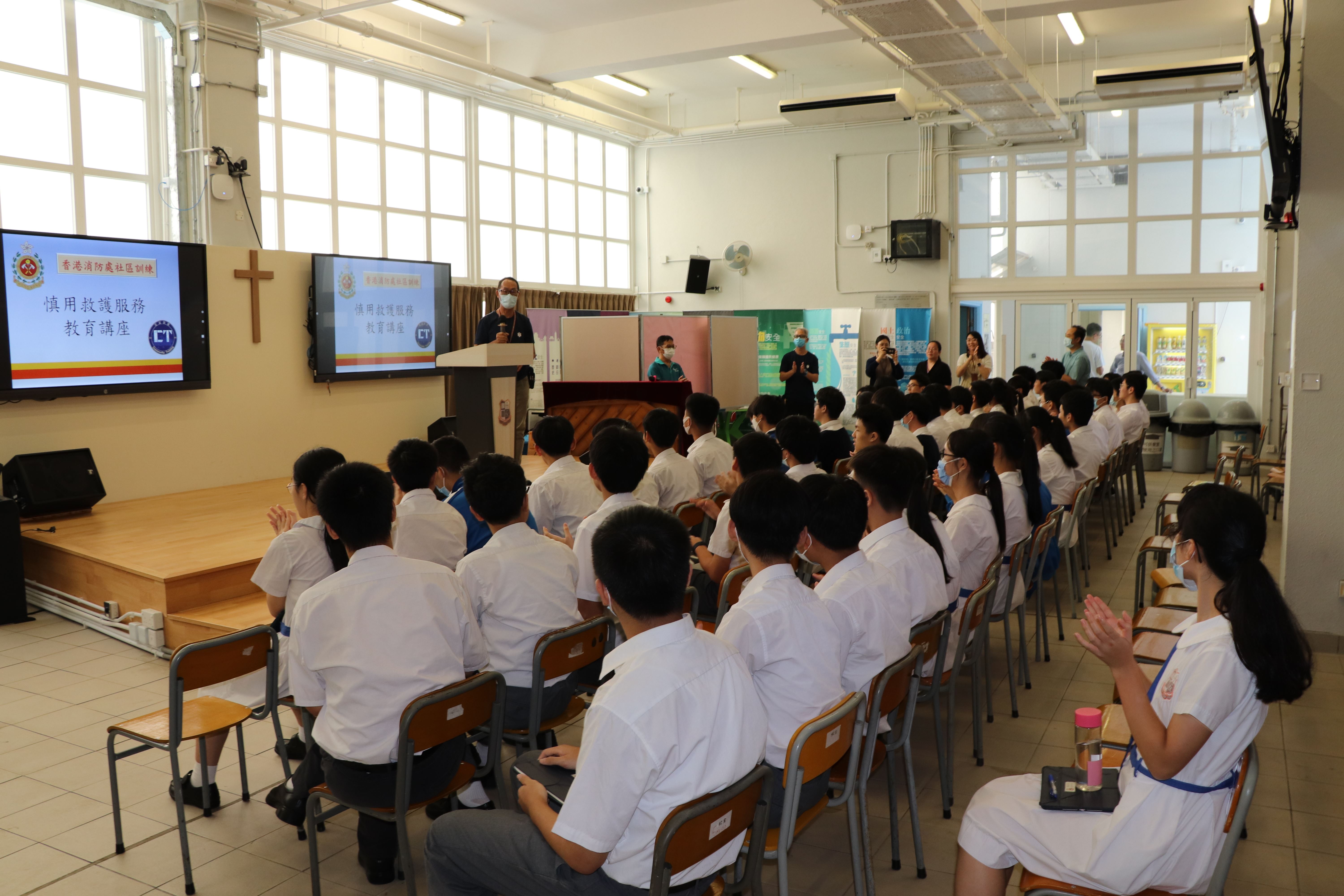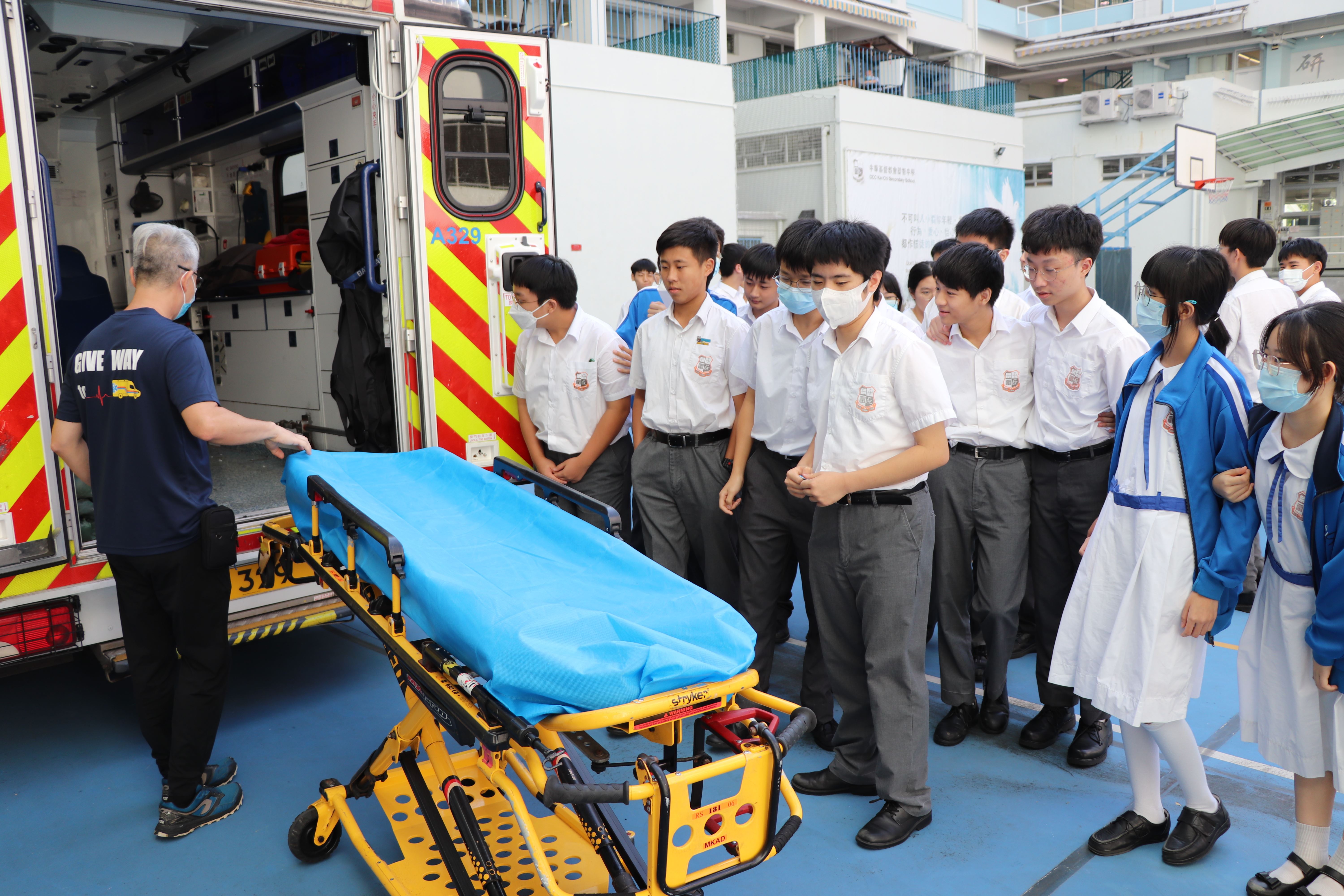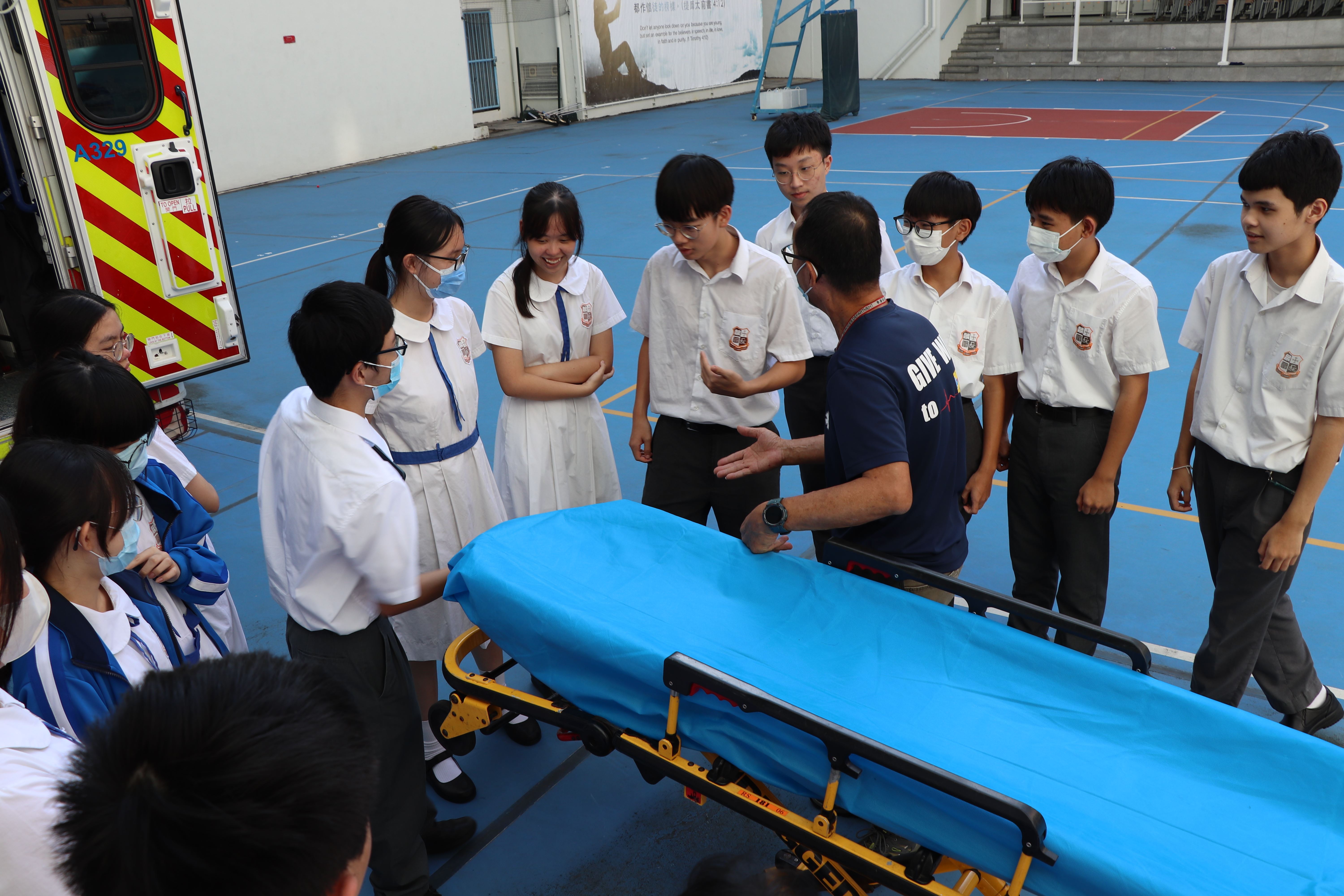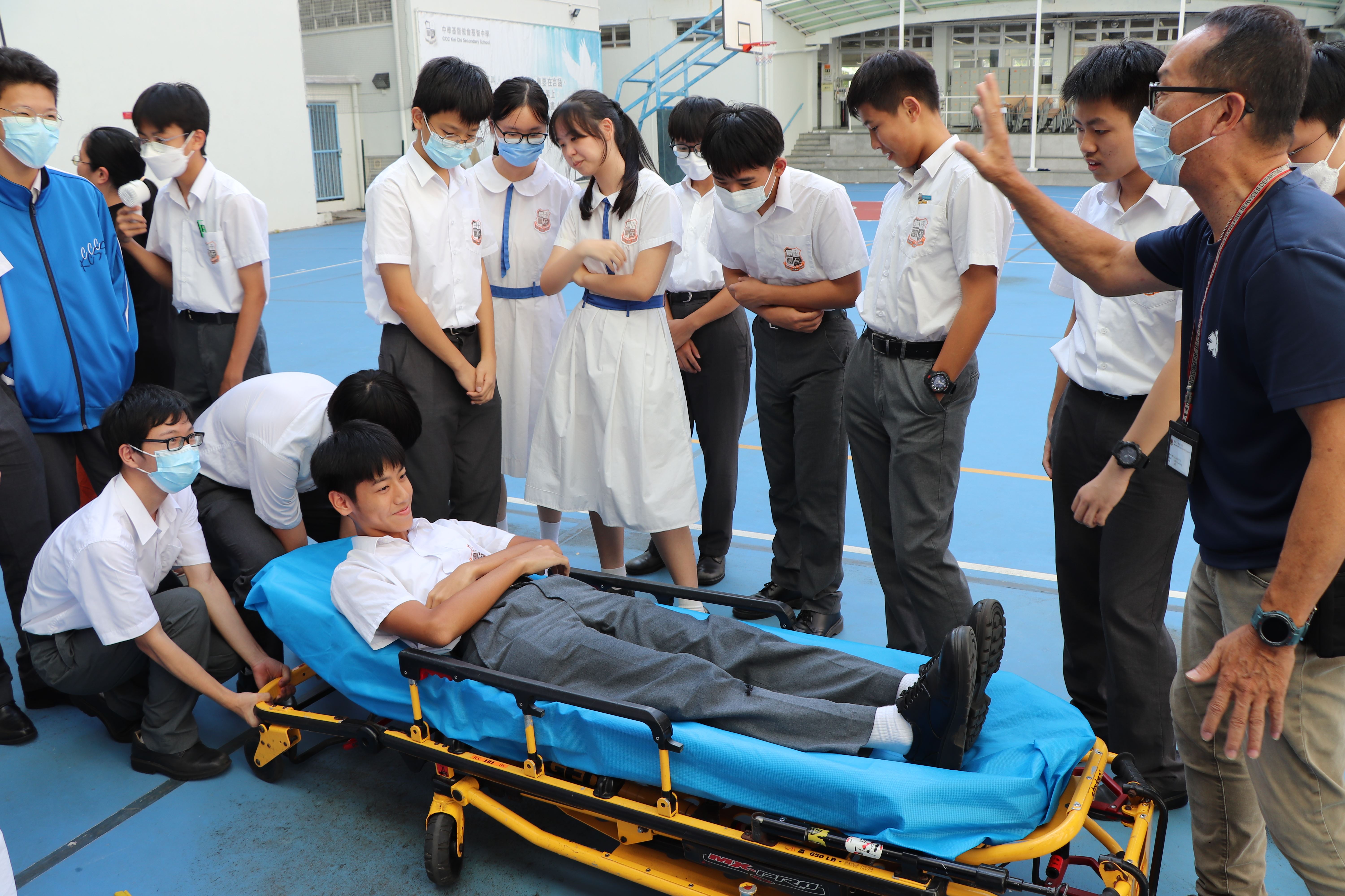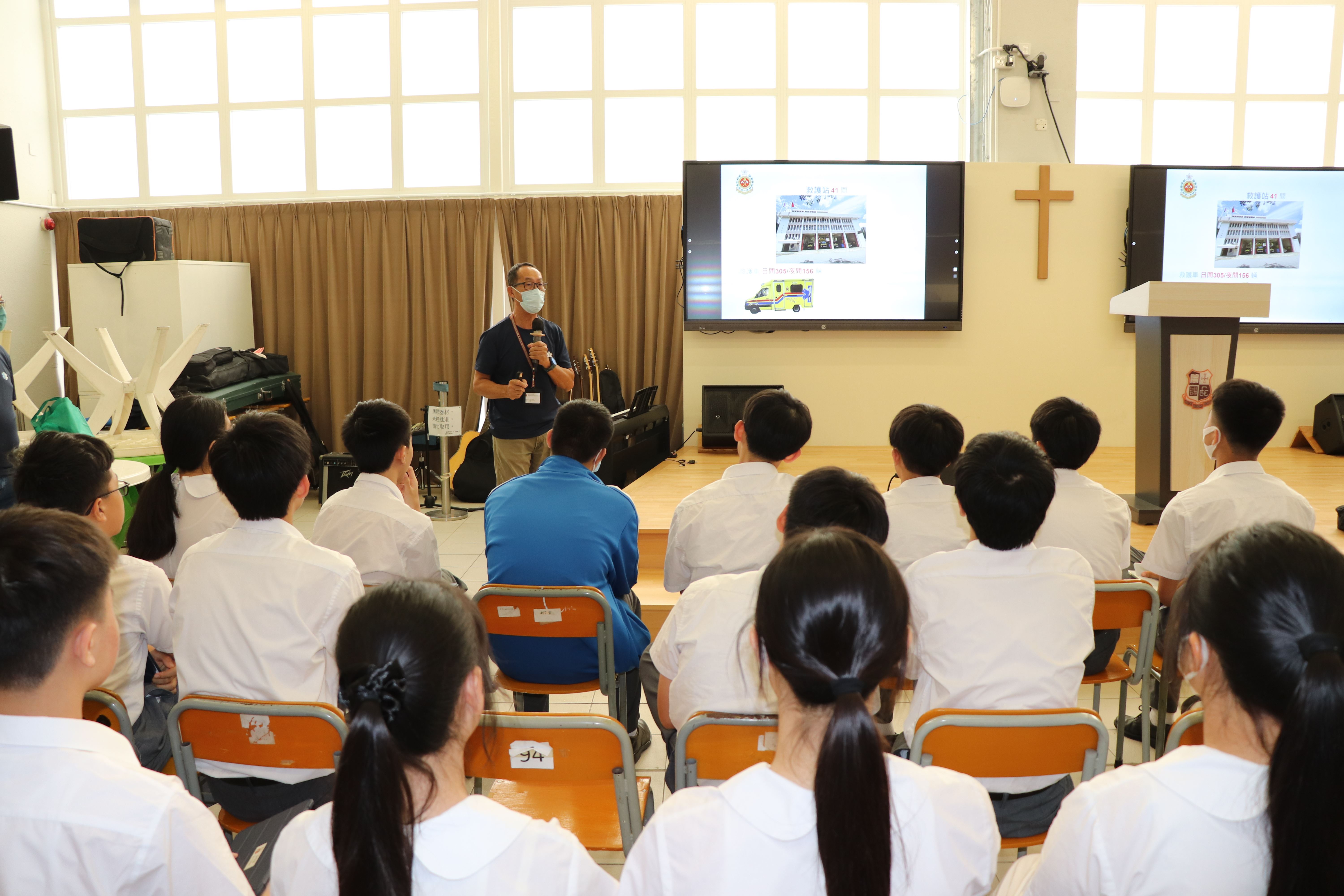 消防處派救護員為66名修讀其他學習經歷科的中四學生講解「慎用救護服務」和「讓路予救護車」的重要性並同時讓他們認識和了解多款救護裝備的功用。此外,學生更有機會體驗心肺復甦法和透過親身踏足救護車輛以更深入了解救護工作。