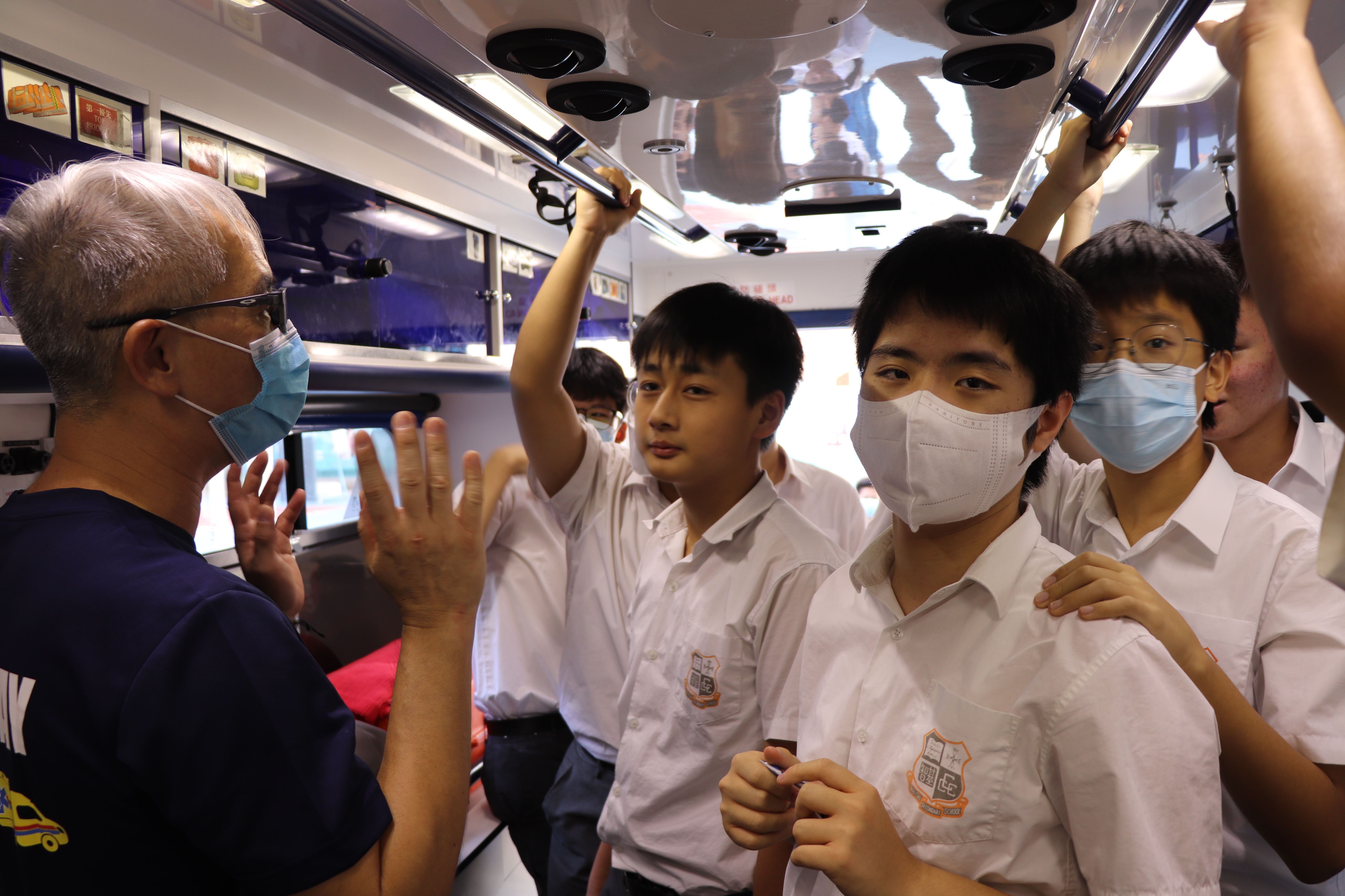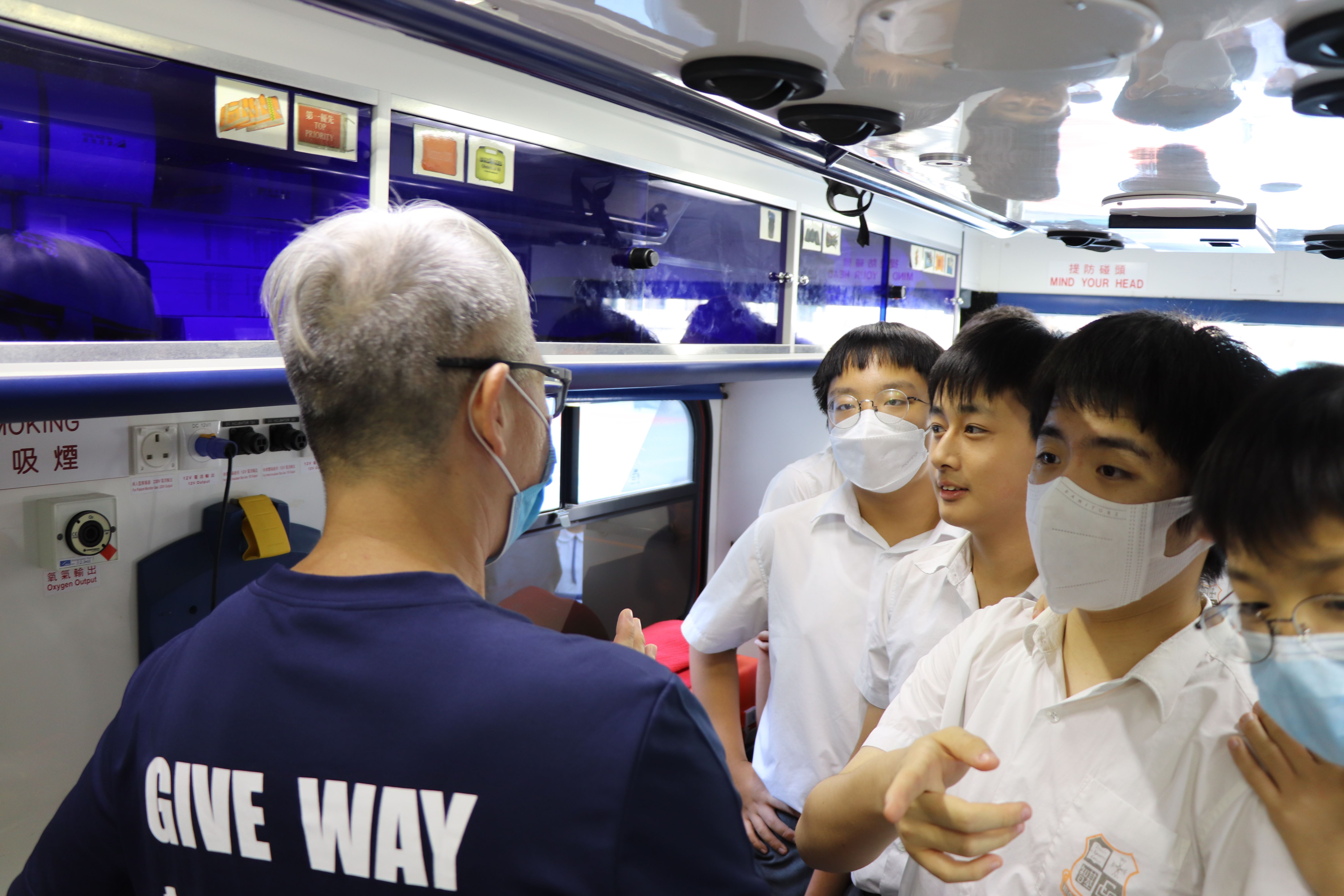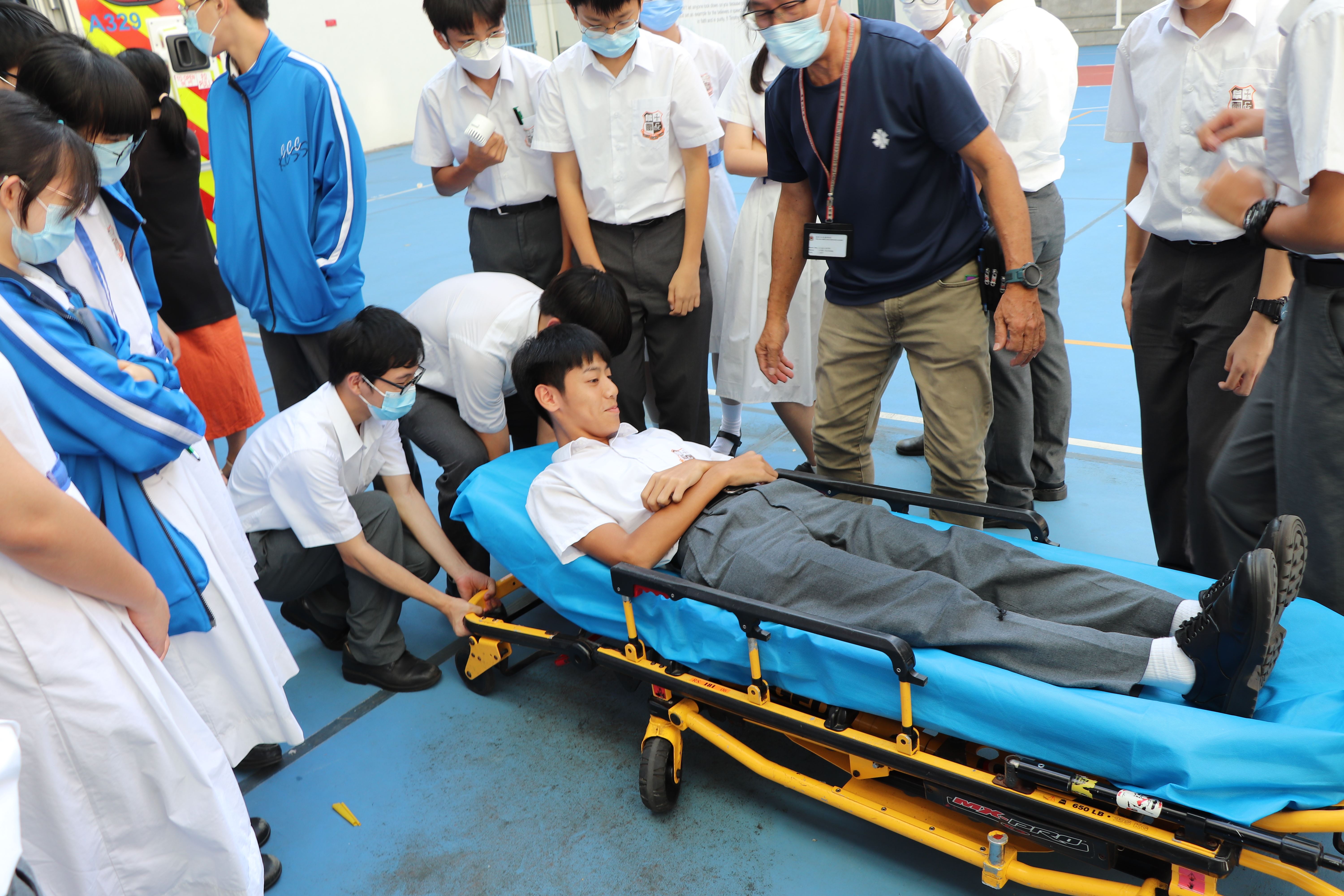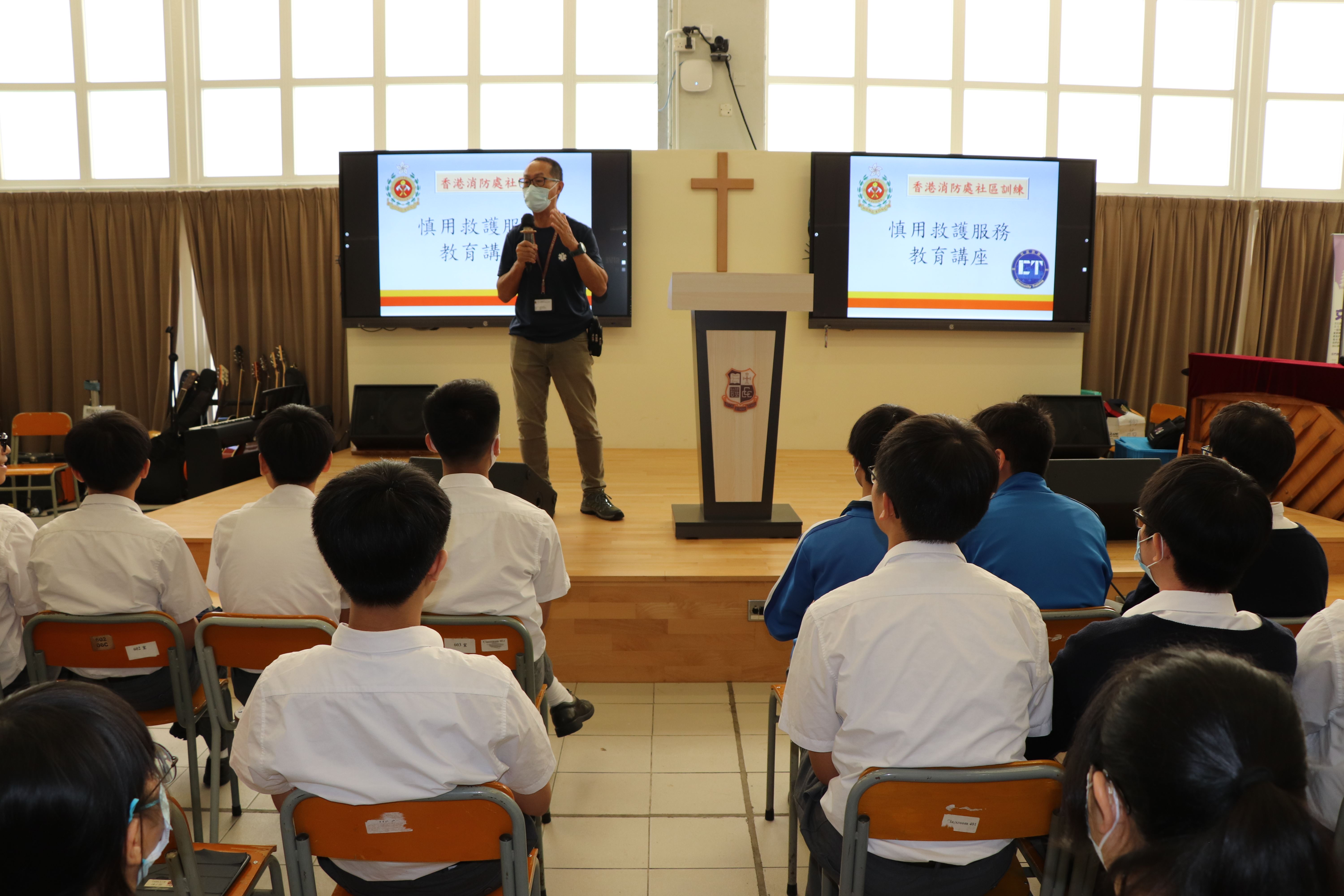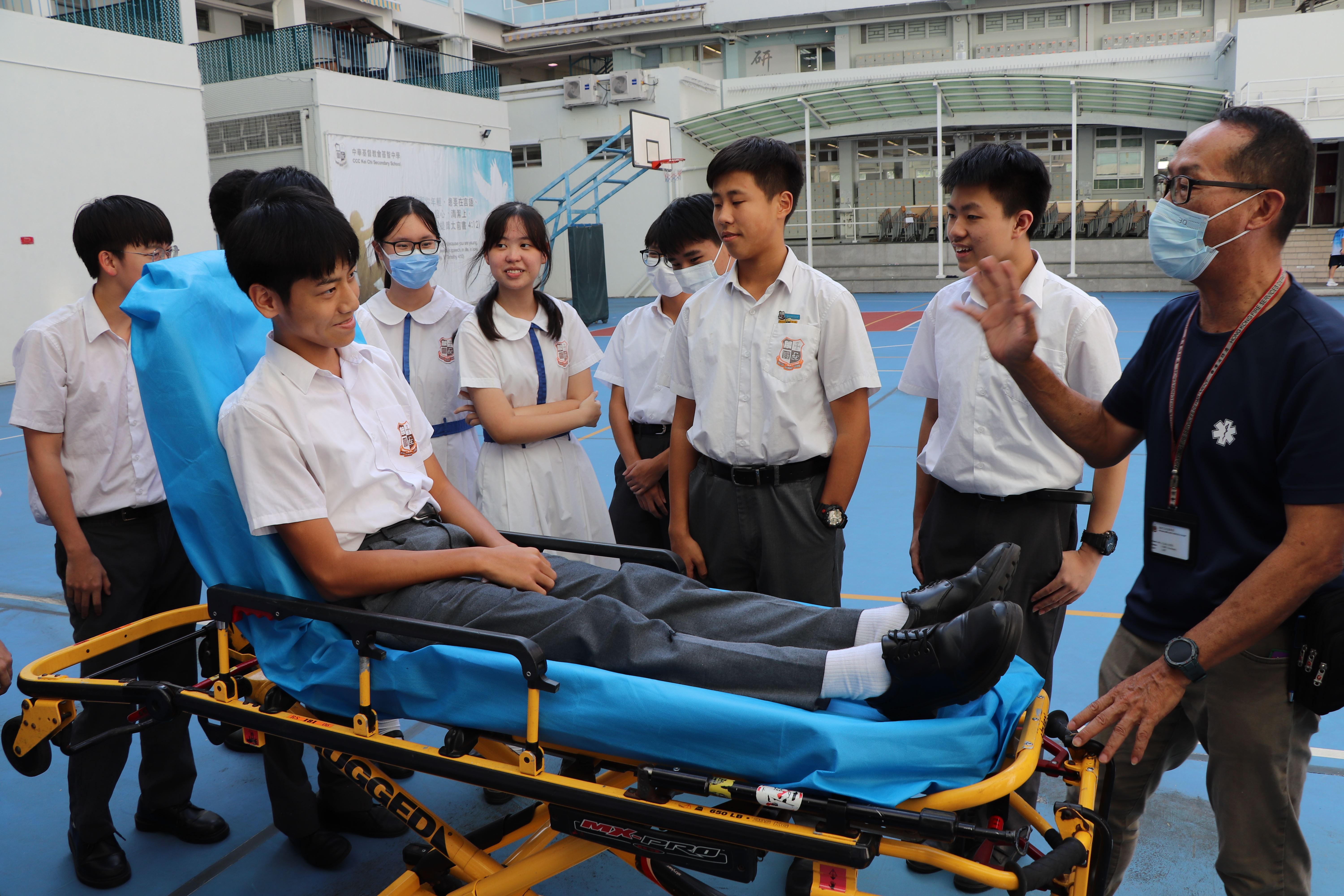 消防處派救護員為66名修讀其他學習經歷科的中四學生講解「慎用救護服務」和「讓路予救護車」的重要性並同時讓他們認識和了解多款救護裝備的功用。此外,學生更有機會體驗心肺復甦法和透過親身踏足救護車輛以更深入了解救護工作。