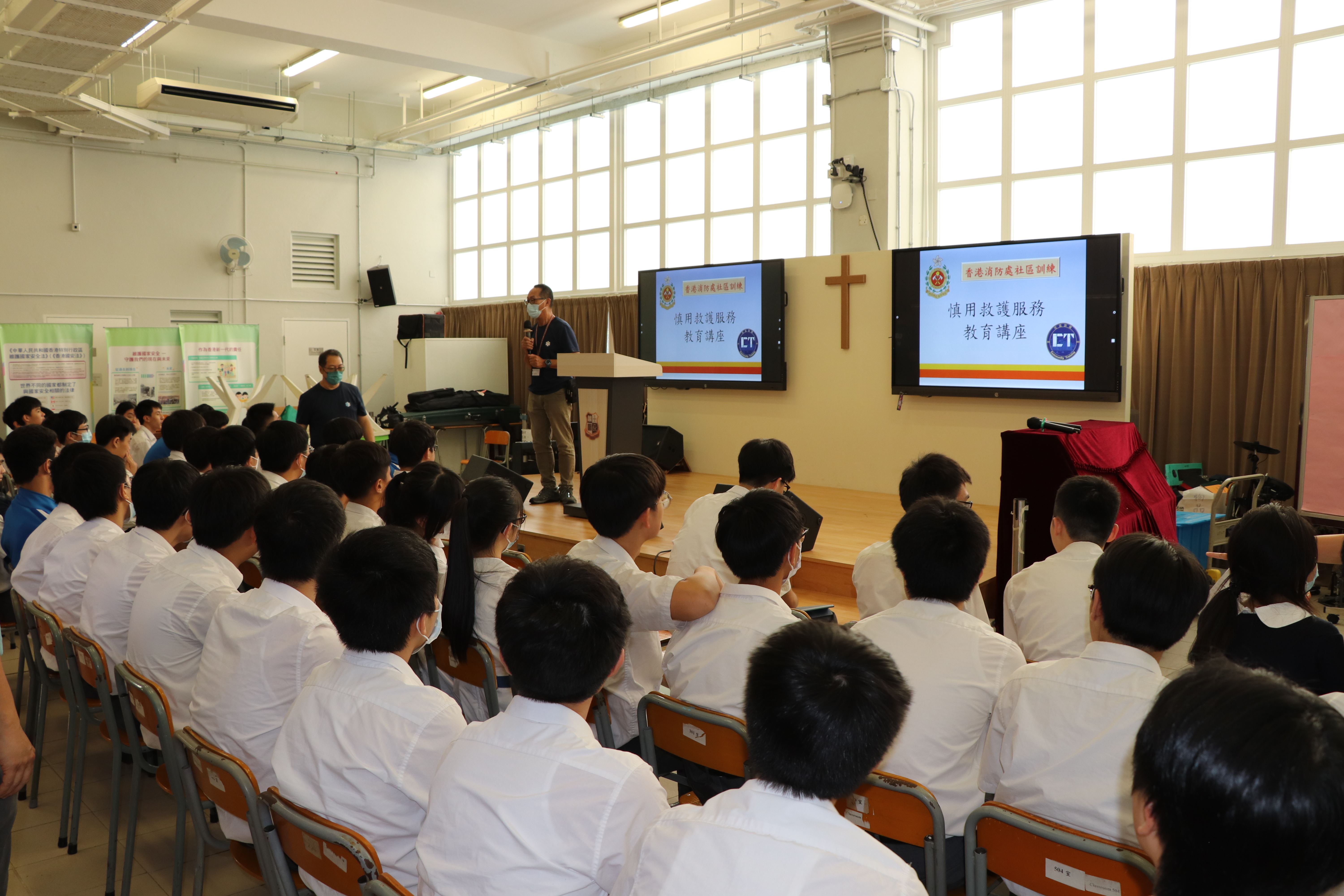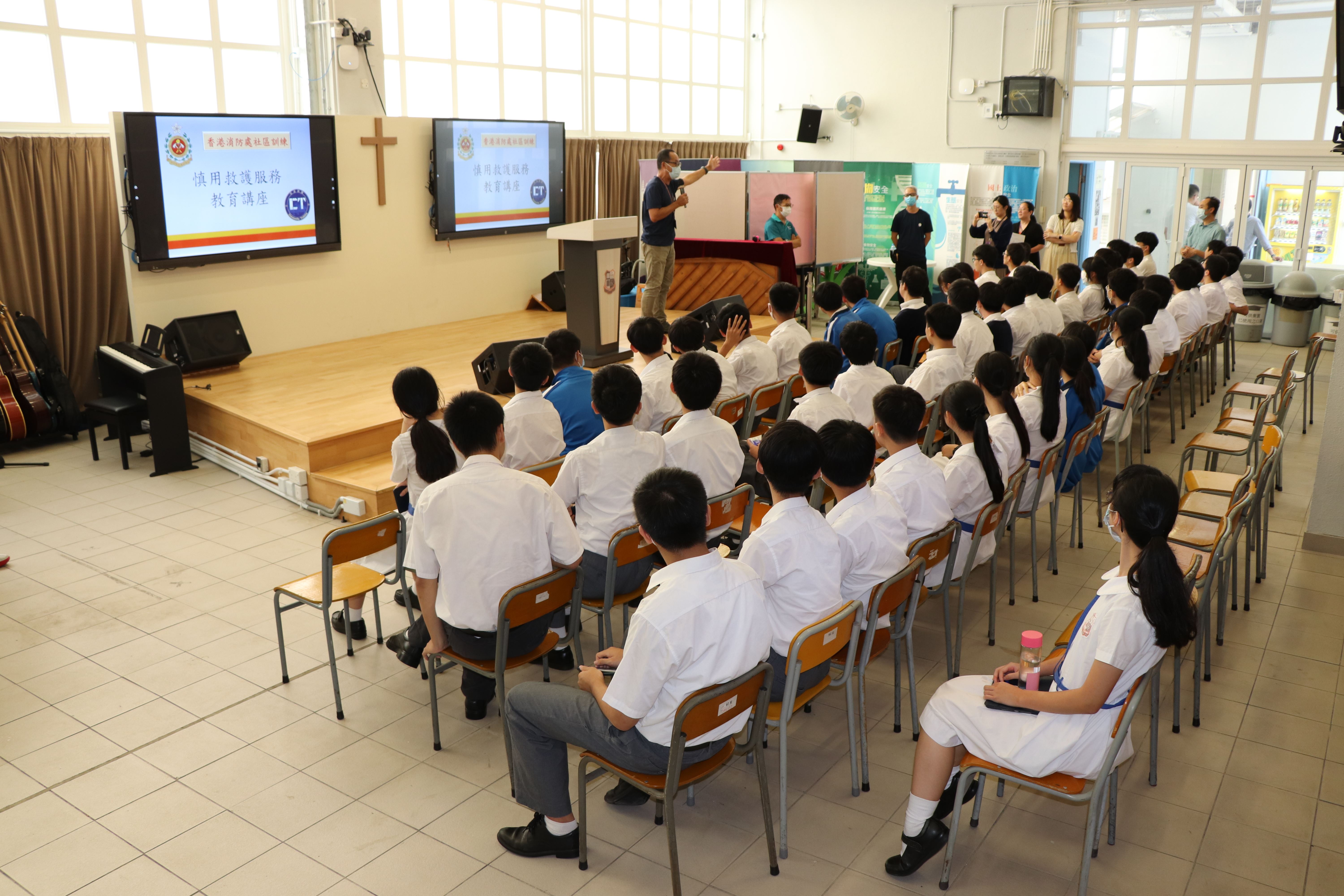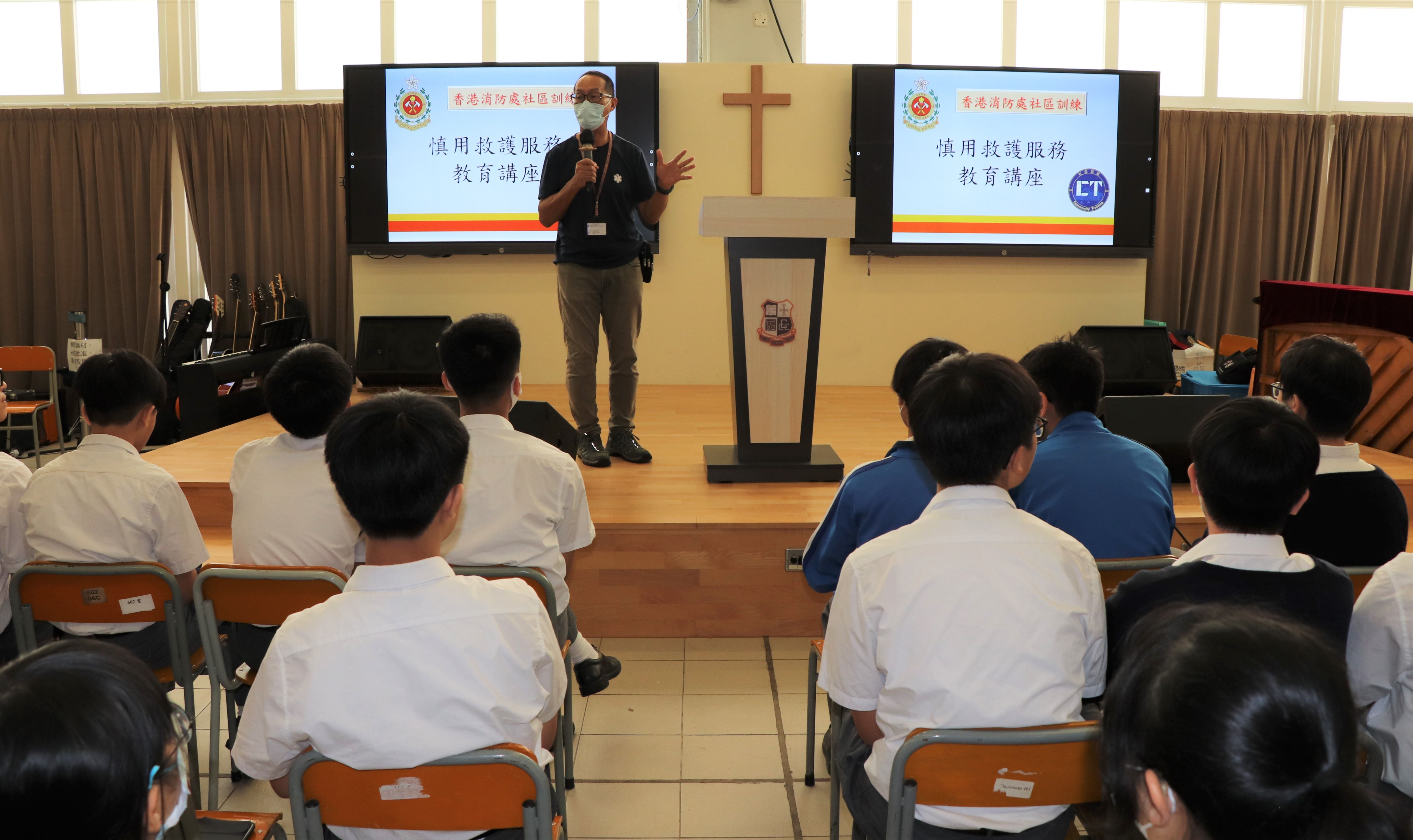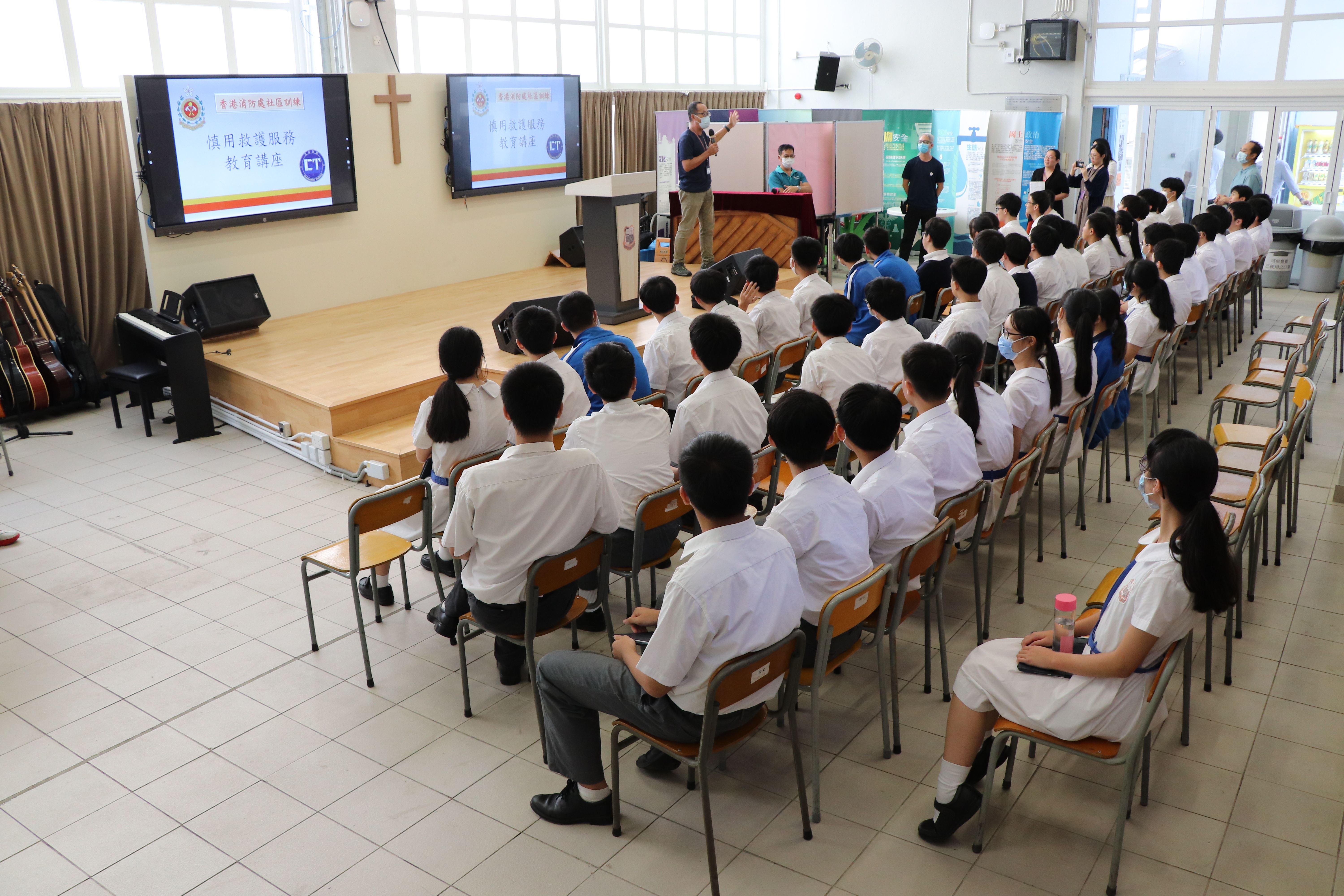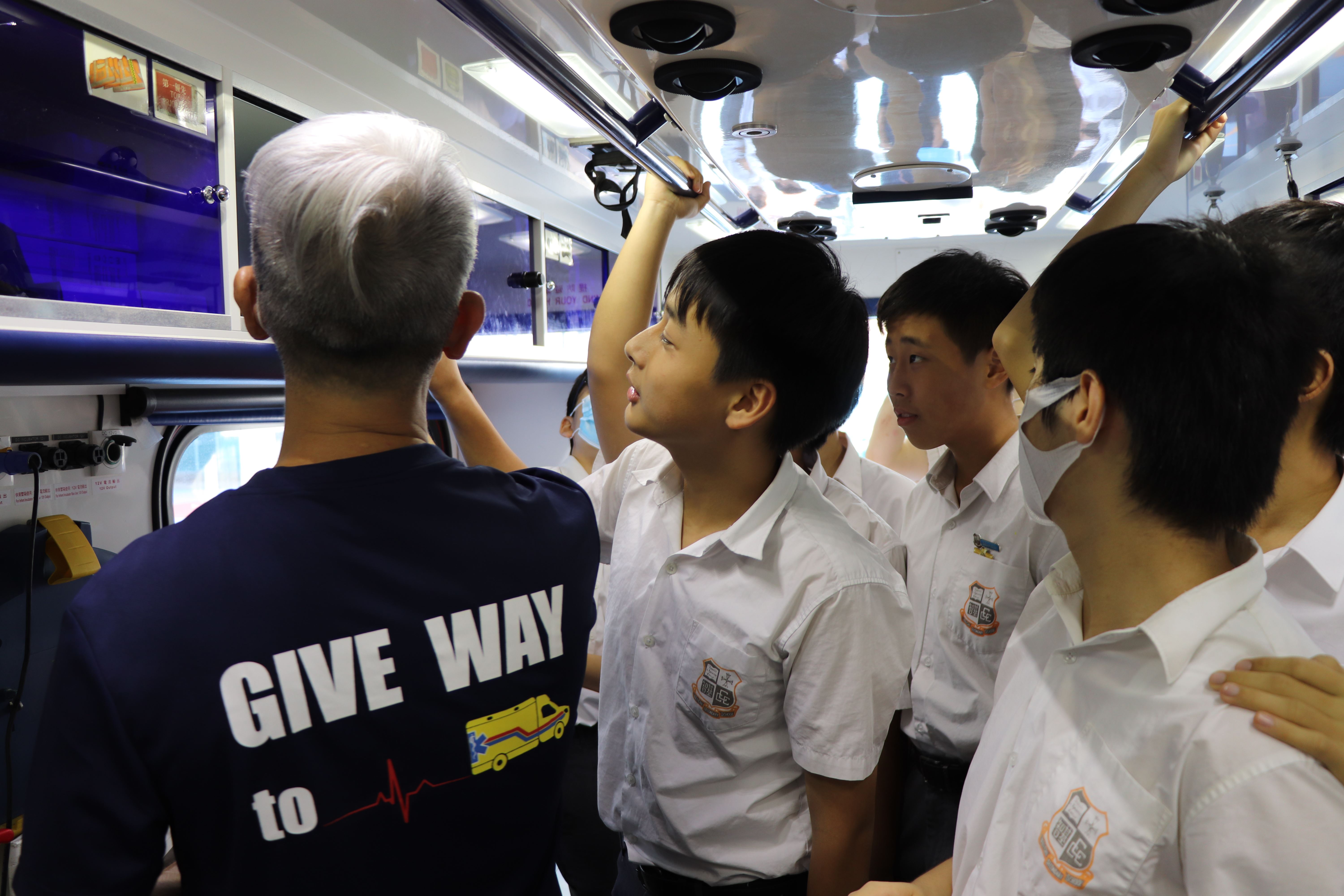 消防處派救護員為66名修讀其他學習經歷科的中四學生講解「慎用救護服務」和「讓路予救護車」的重要性並同時讓他們認識和了解多款救護裝備的功用。此外,學生更有機會體驗心肺復甦法和透過親身踏足救護車輛以更深入了解救護工作。