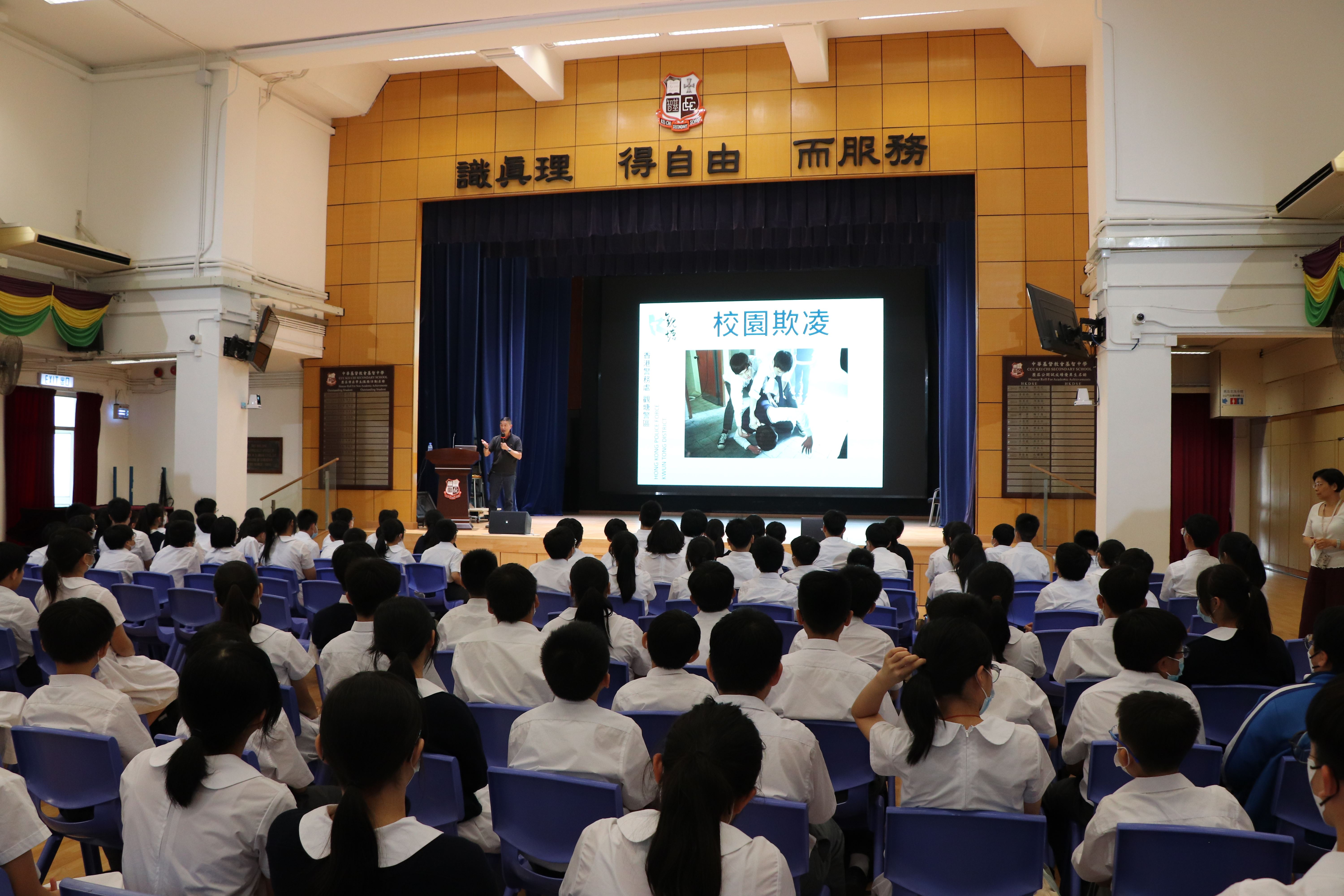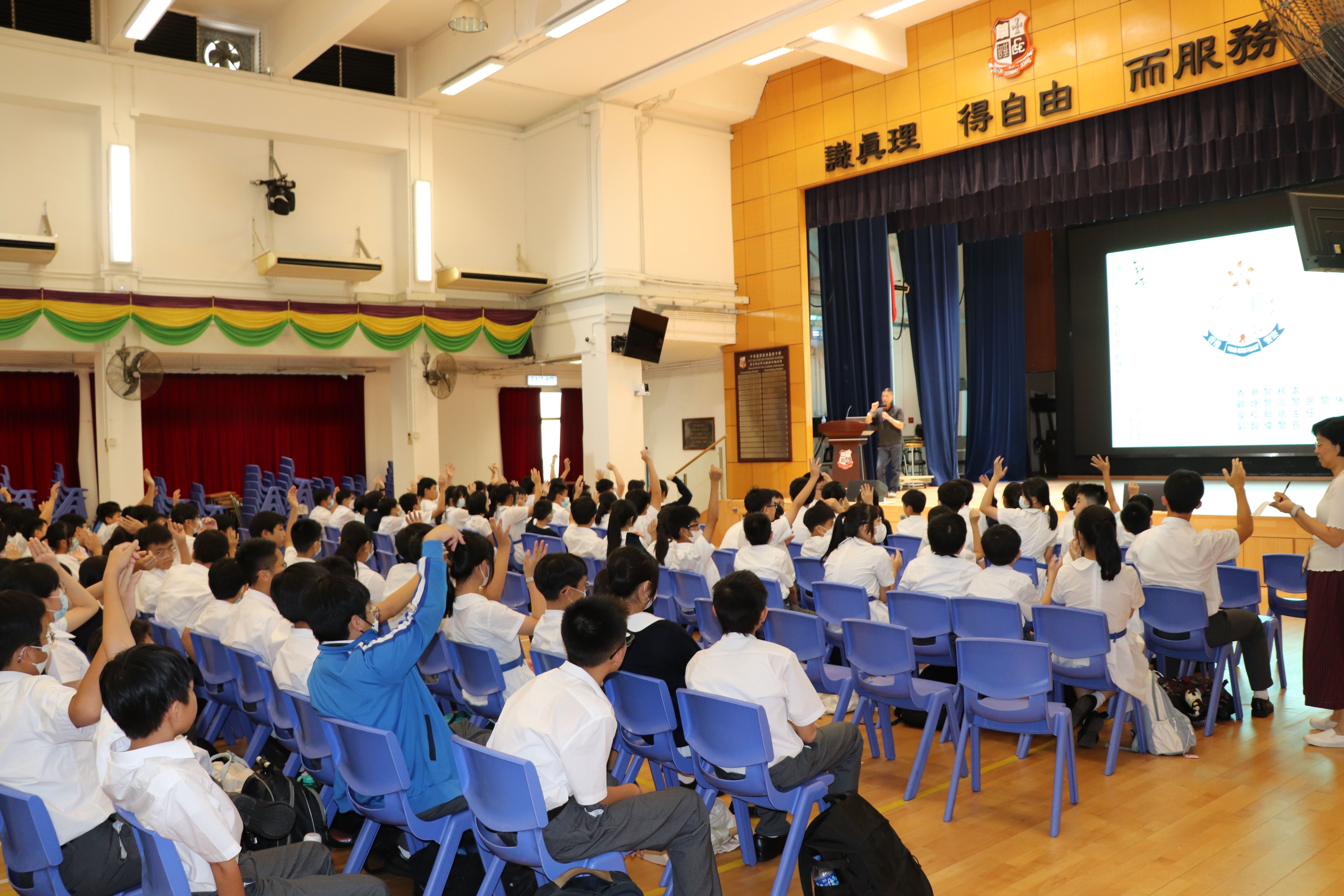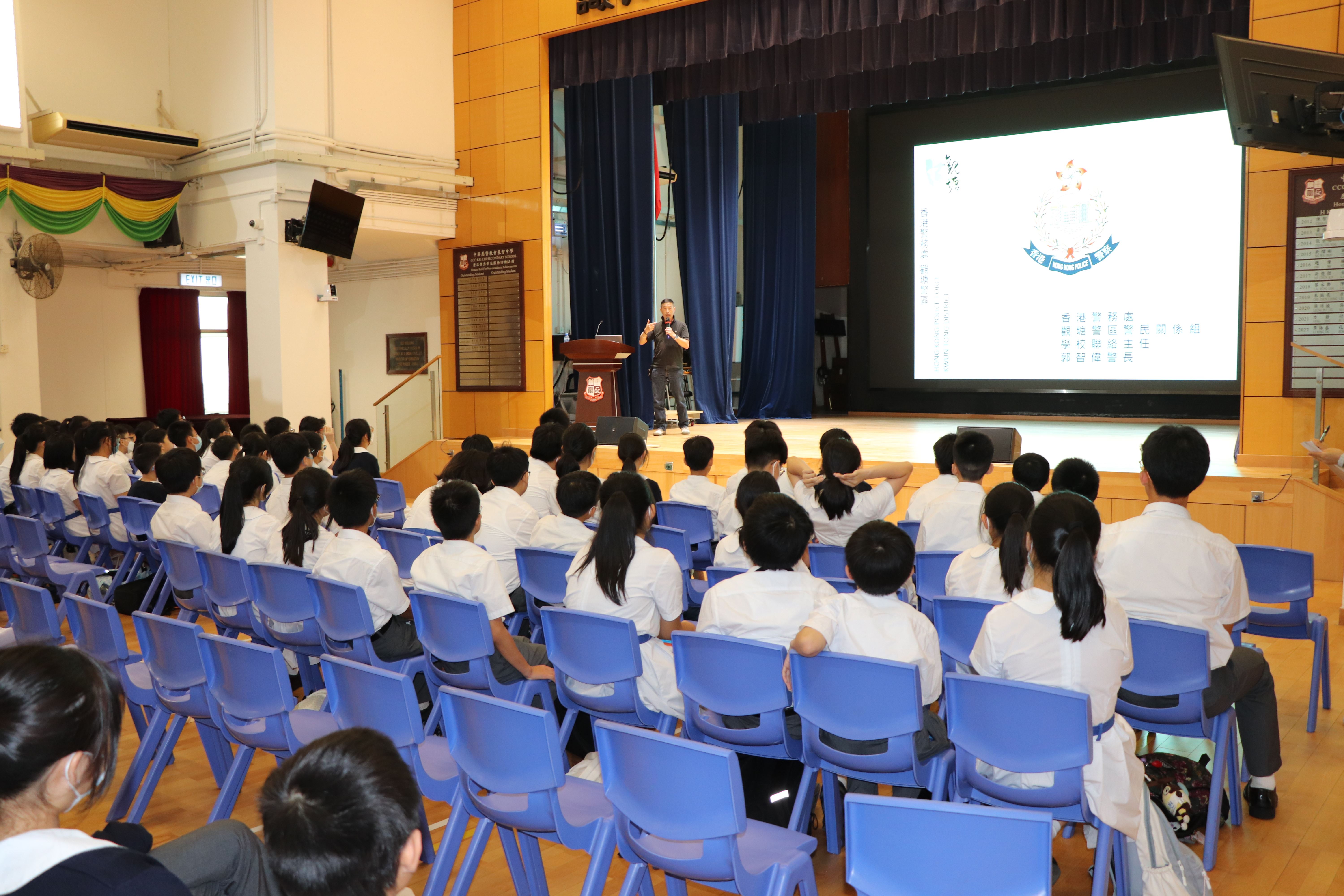 為教導學生正確及守法的價值觀,訓育委員會邀請觀塘警區警民關係主任郭智偉警長到校為中一級進行訓育講座,學生反應積極。