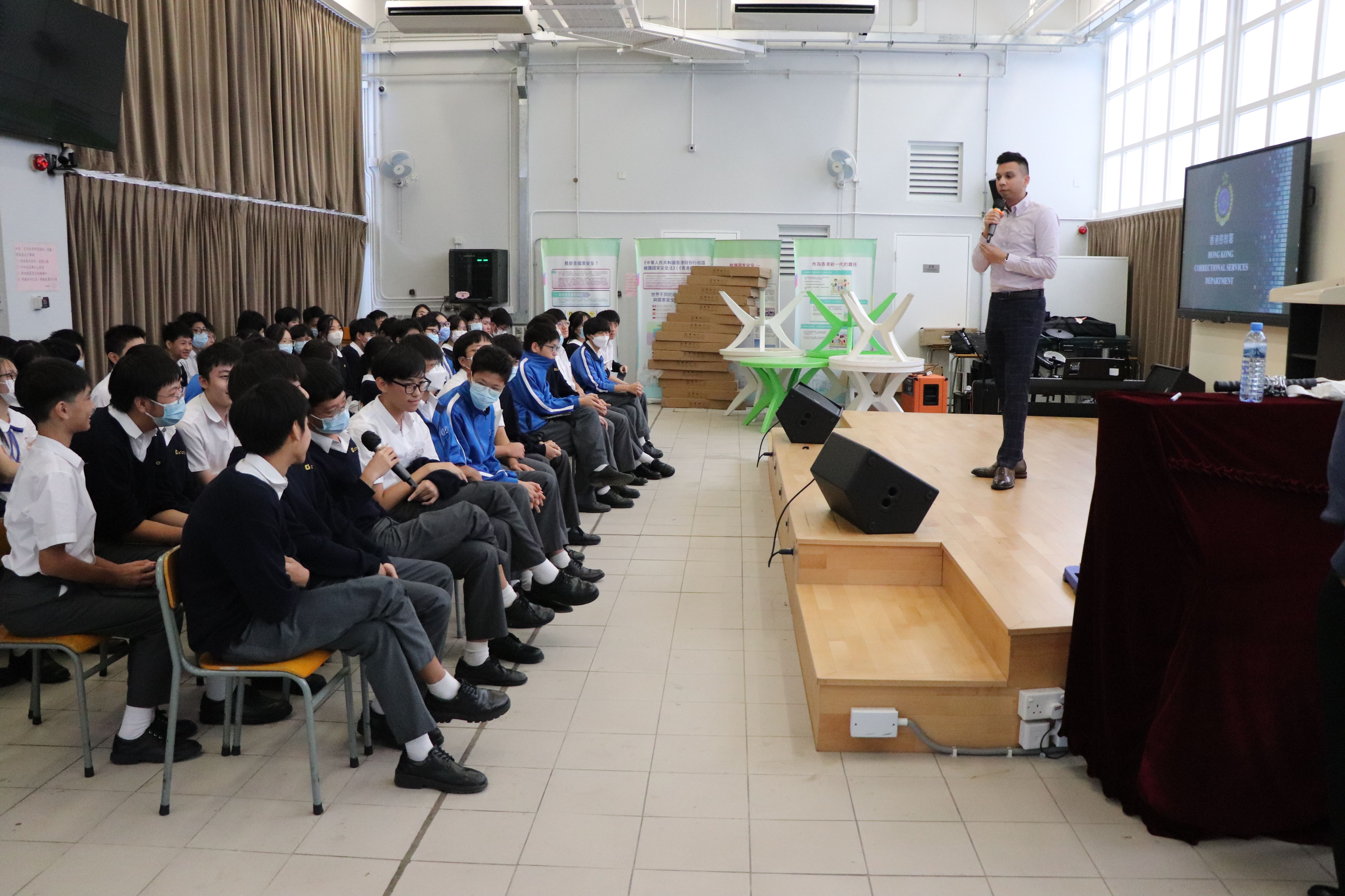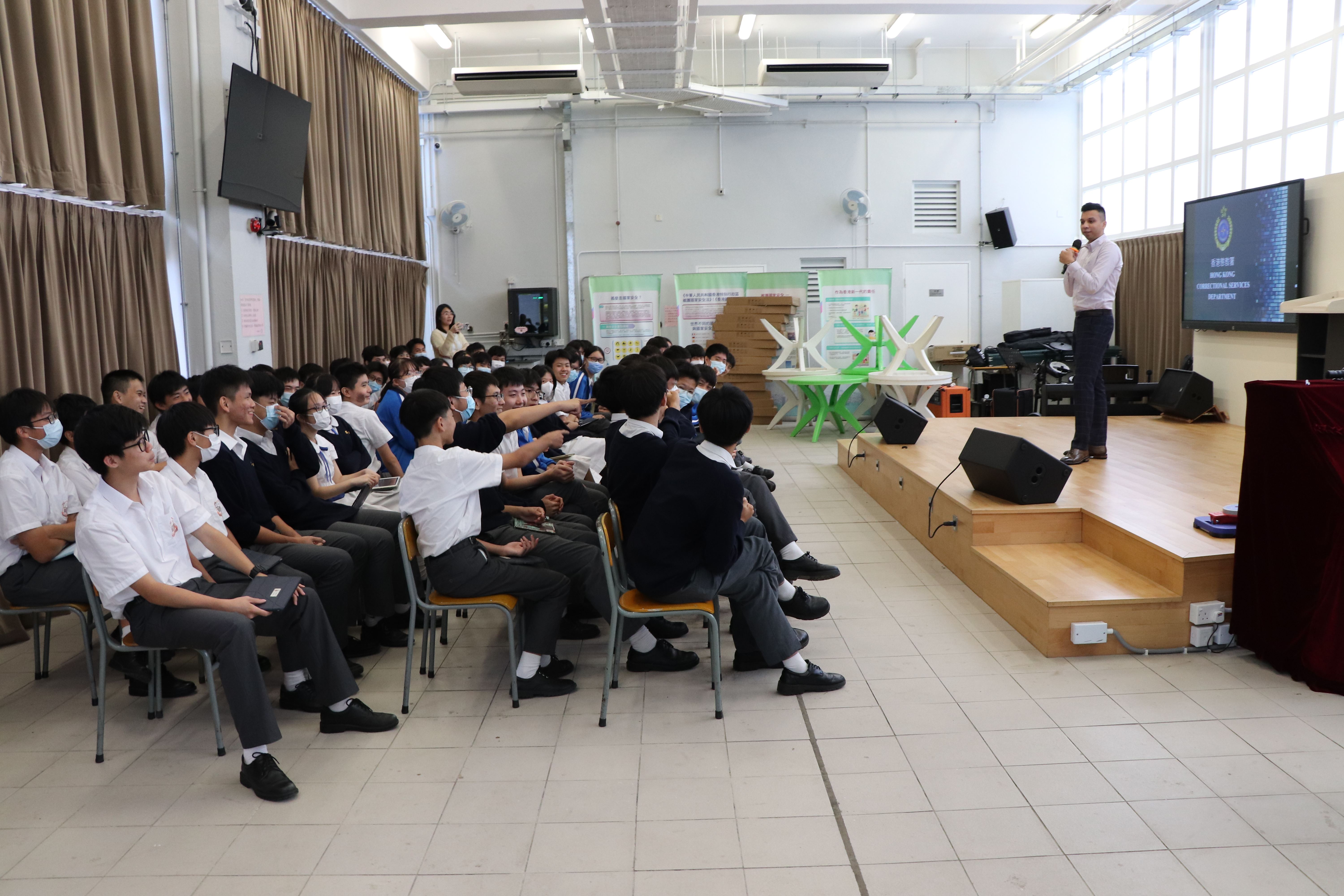 通過商校合作計劃,本校有幸於10月17日邀請了懲教署主任黃華威先生為中四修讀其他學習經歷的學生講解懲教署人員的工作性質,就業機會與入職要求。