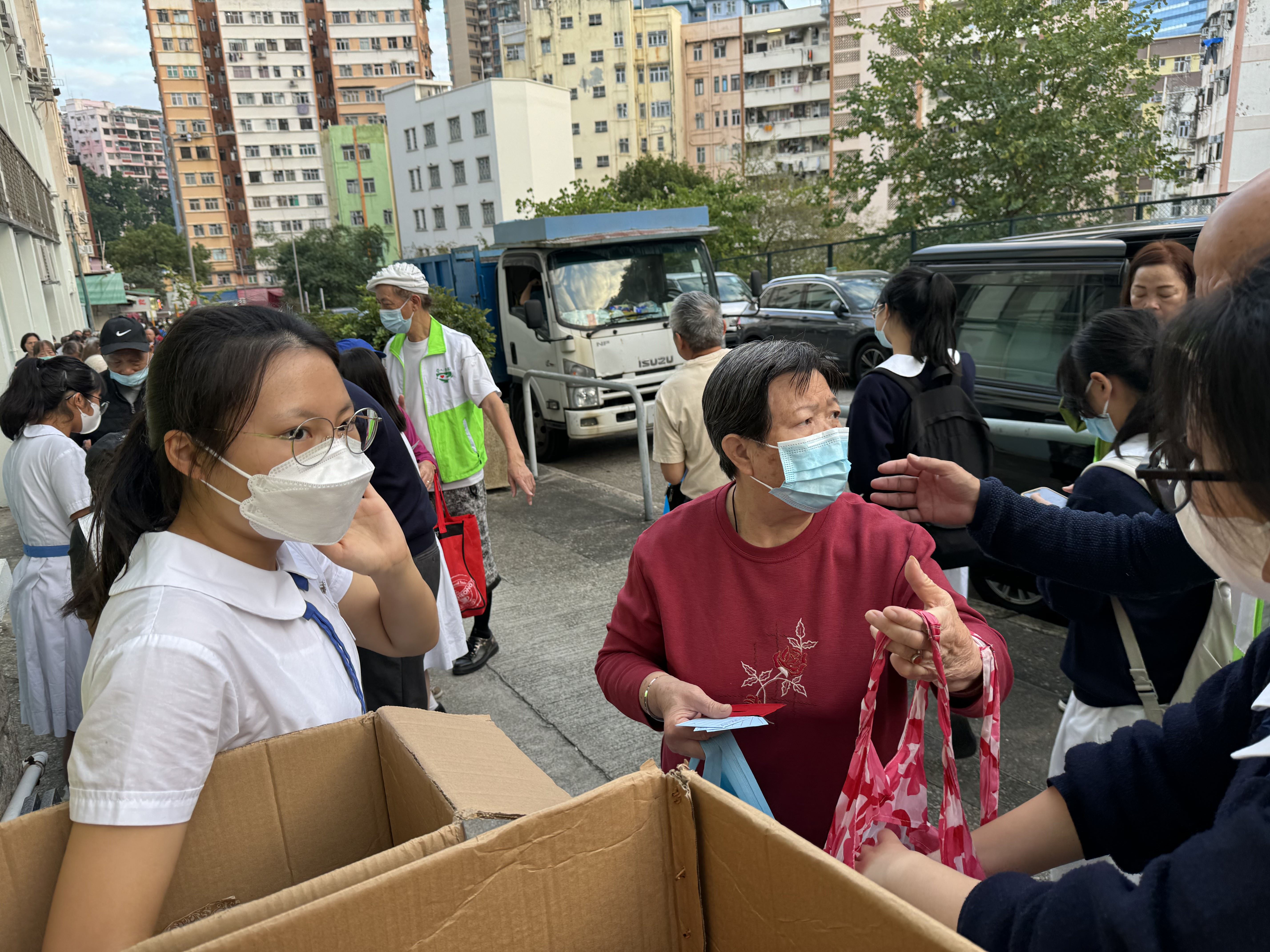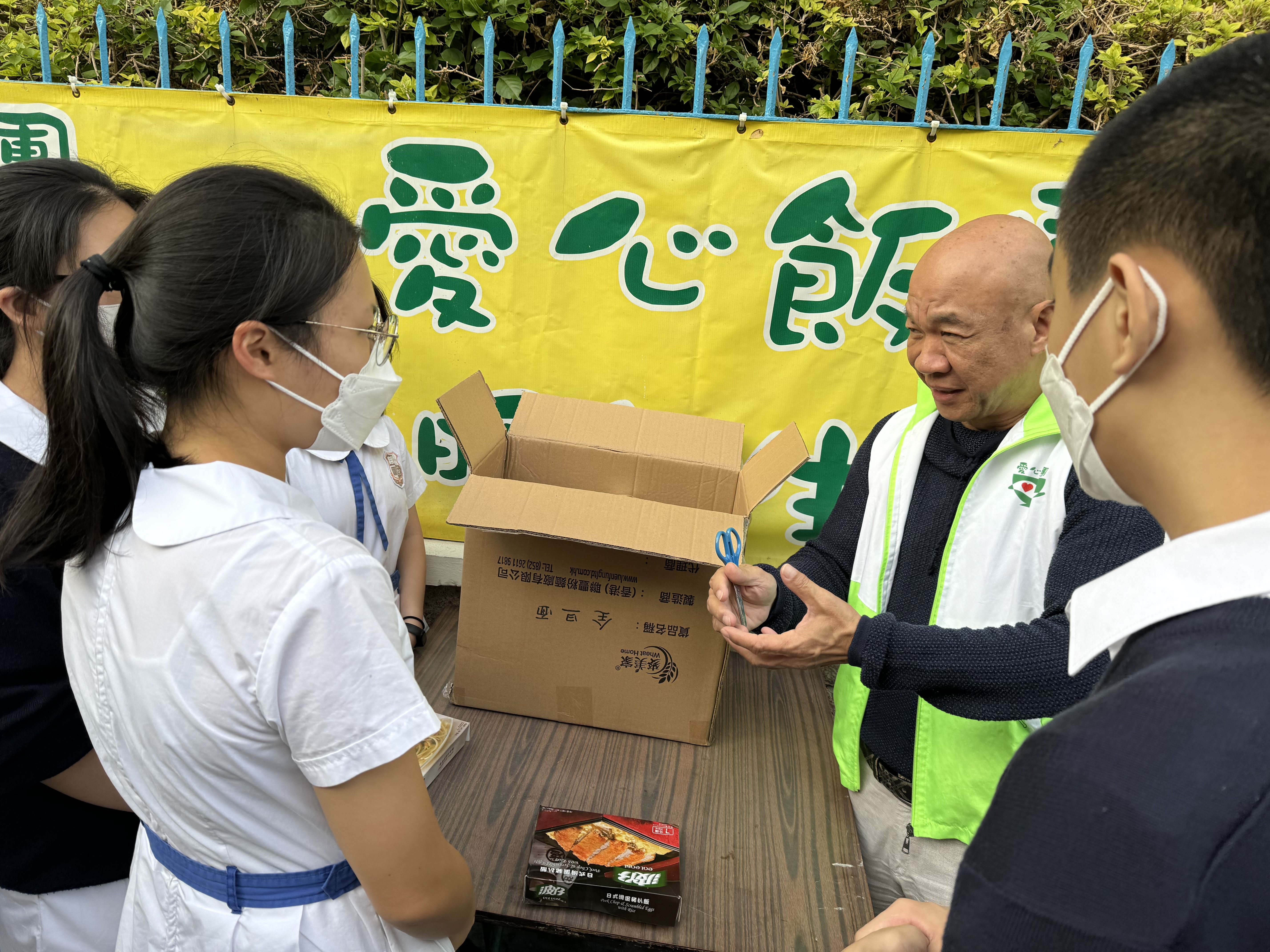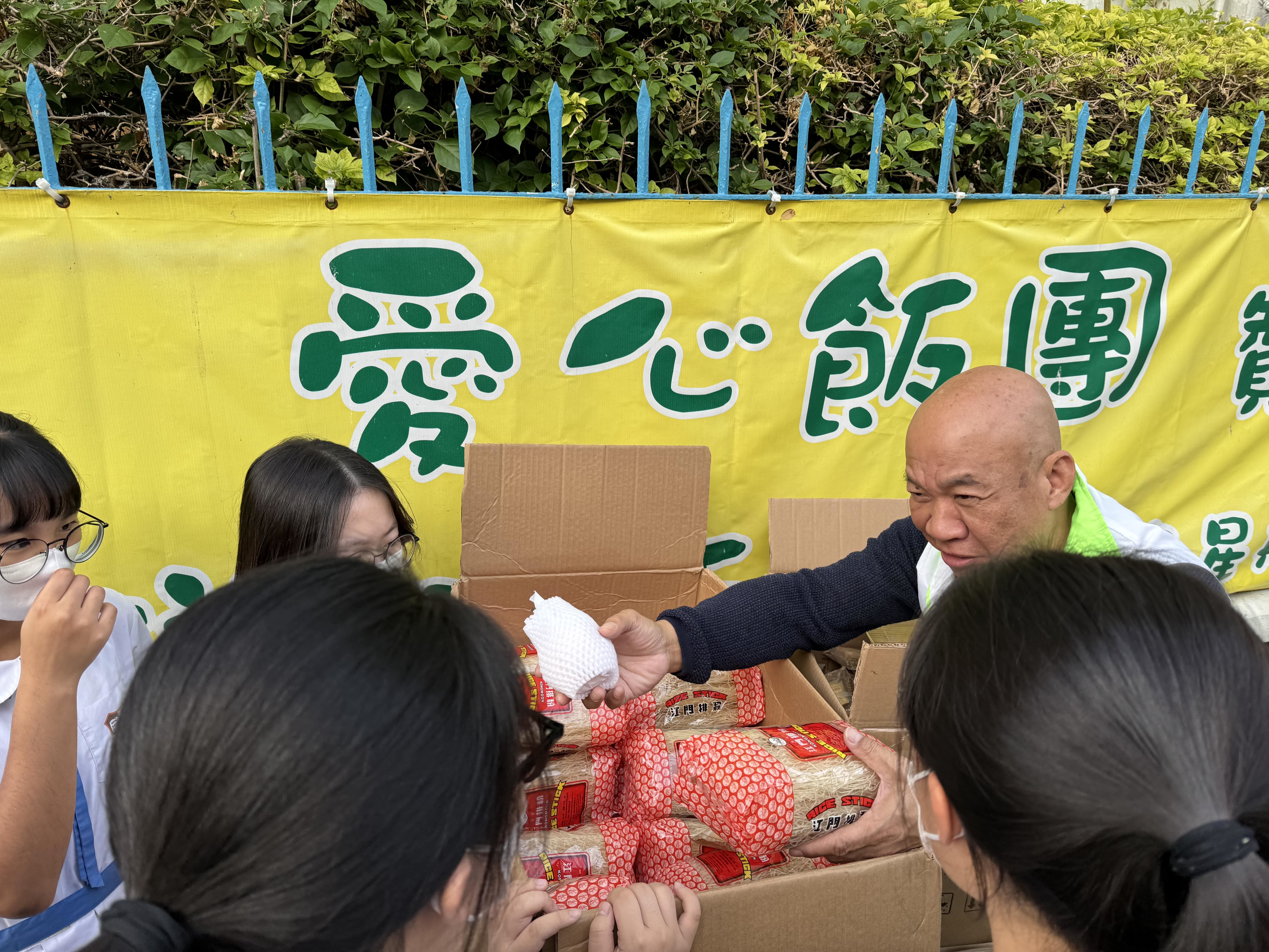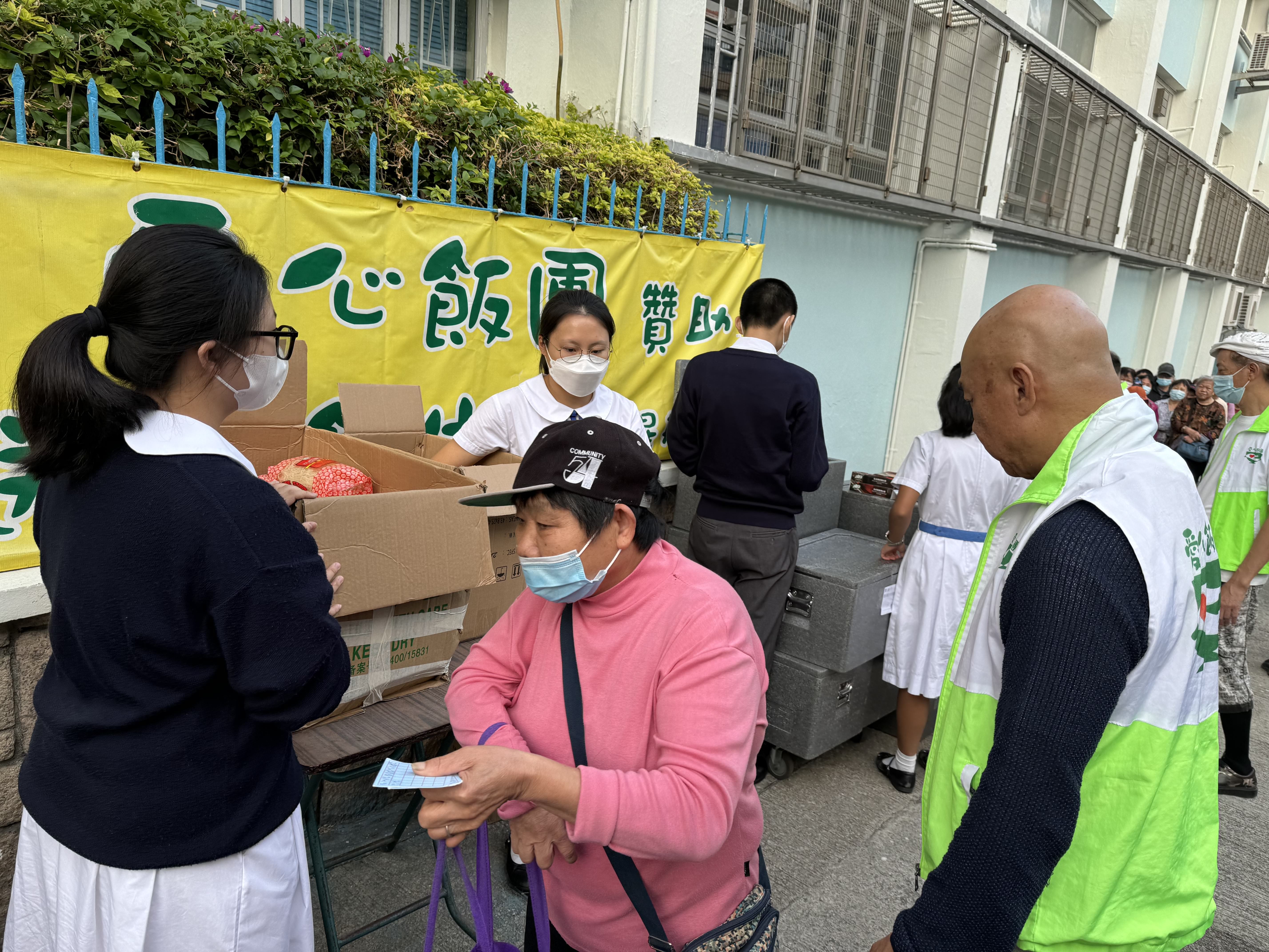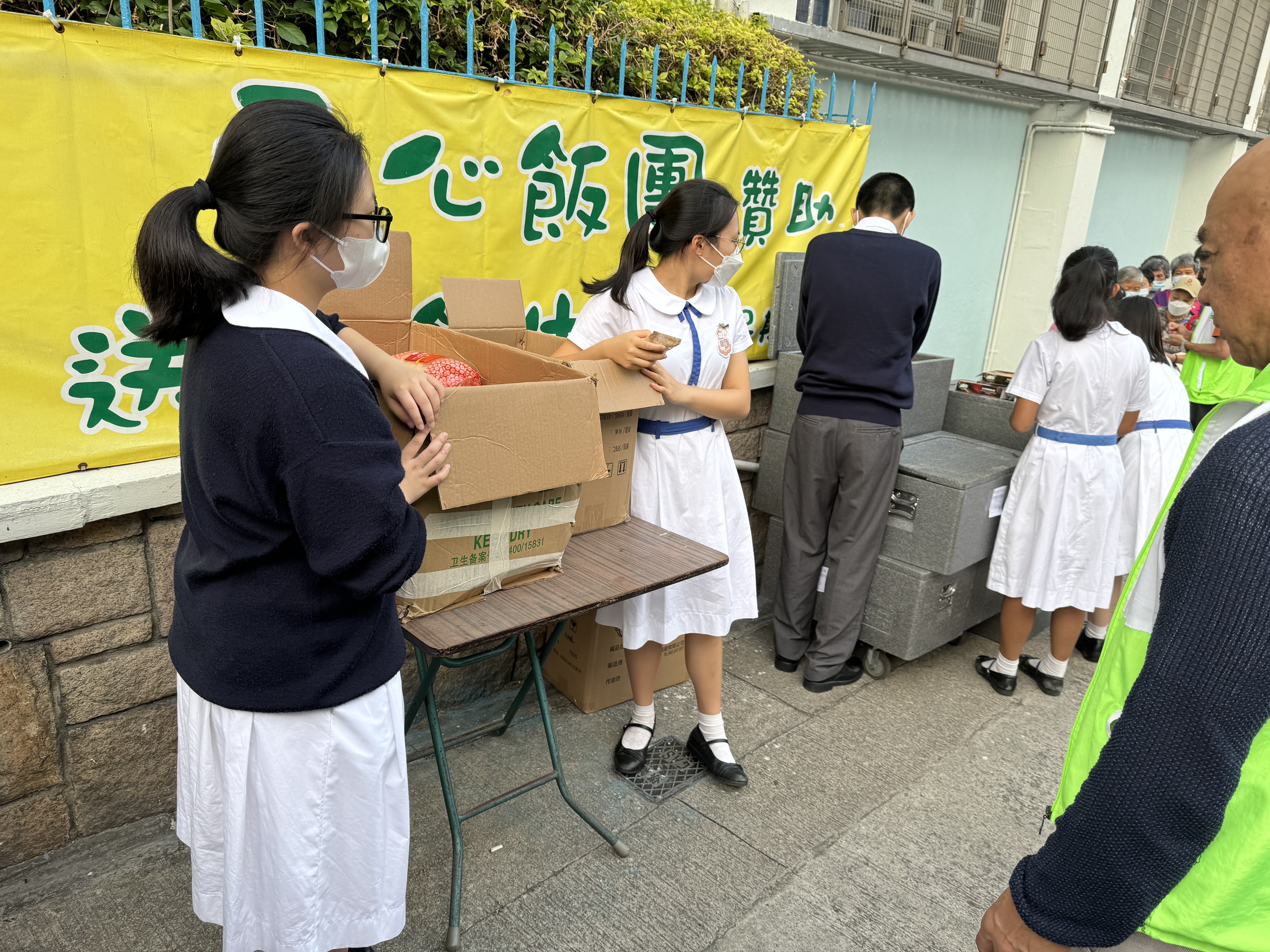 本校本着基督精神,致力扶弱助人。故社會服務委員會與愛心飯團一同合作,安排師生逢星期三下午向區內老人等弱勢社群免費派飯,為所在社區服務。一眾師生於11月派飯服務社區,冀望受助者感到溫暖及關懷。
