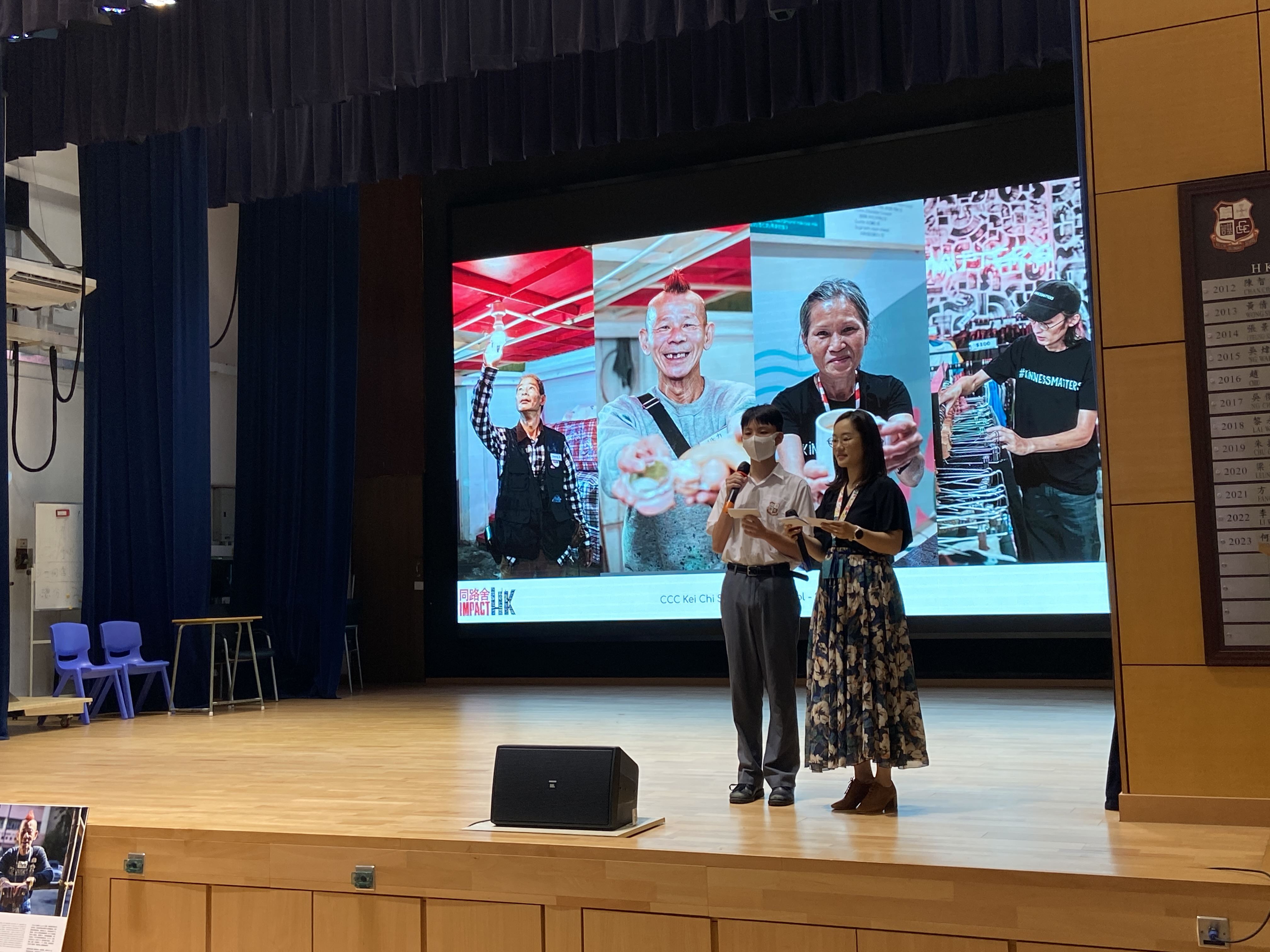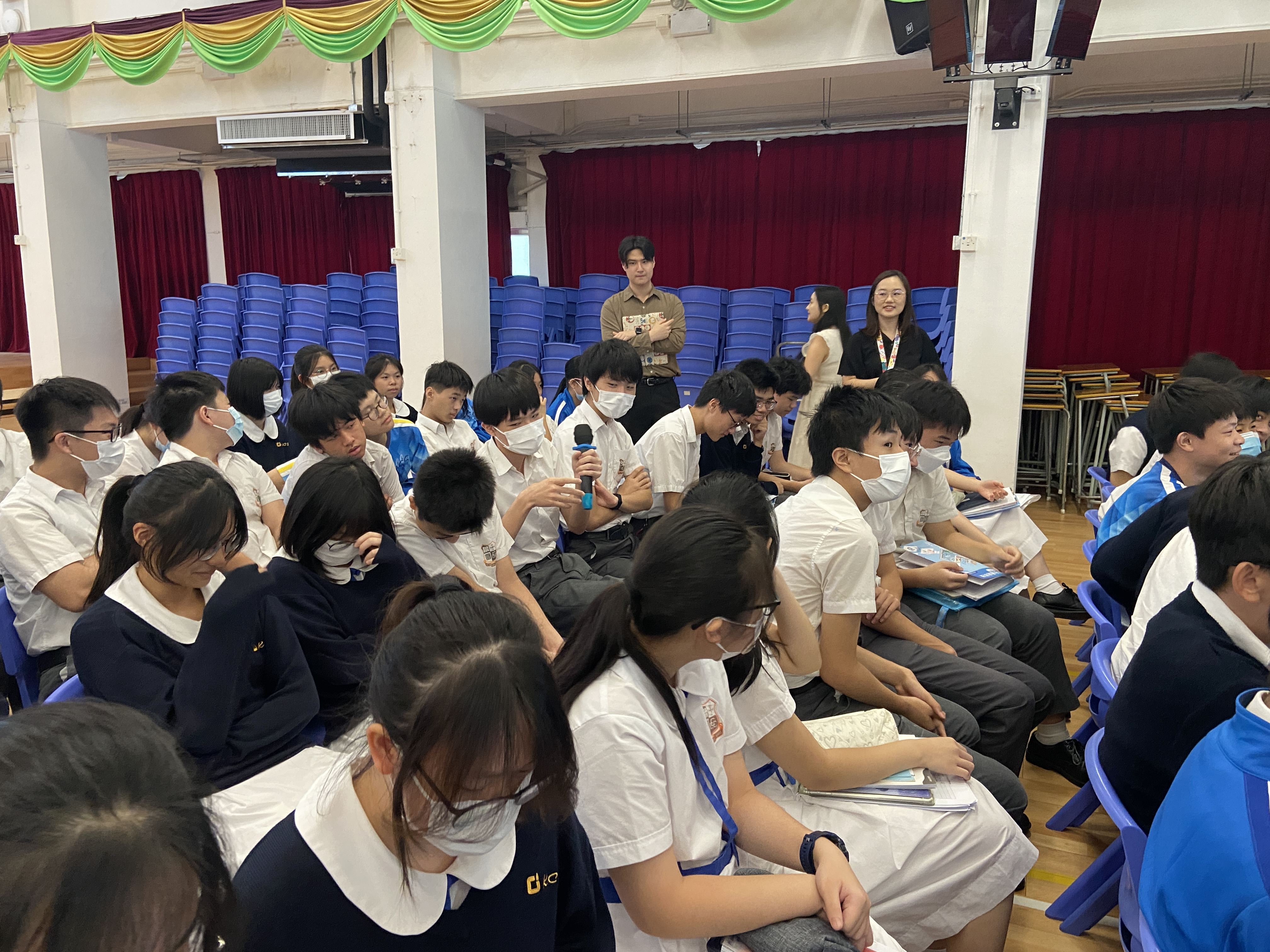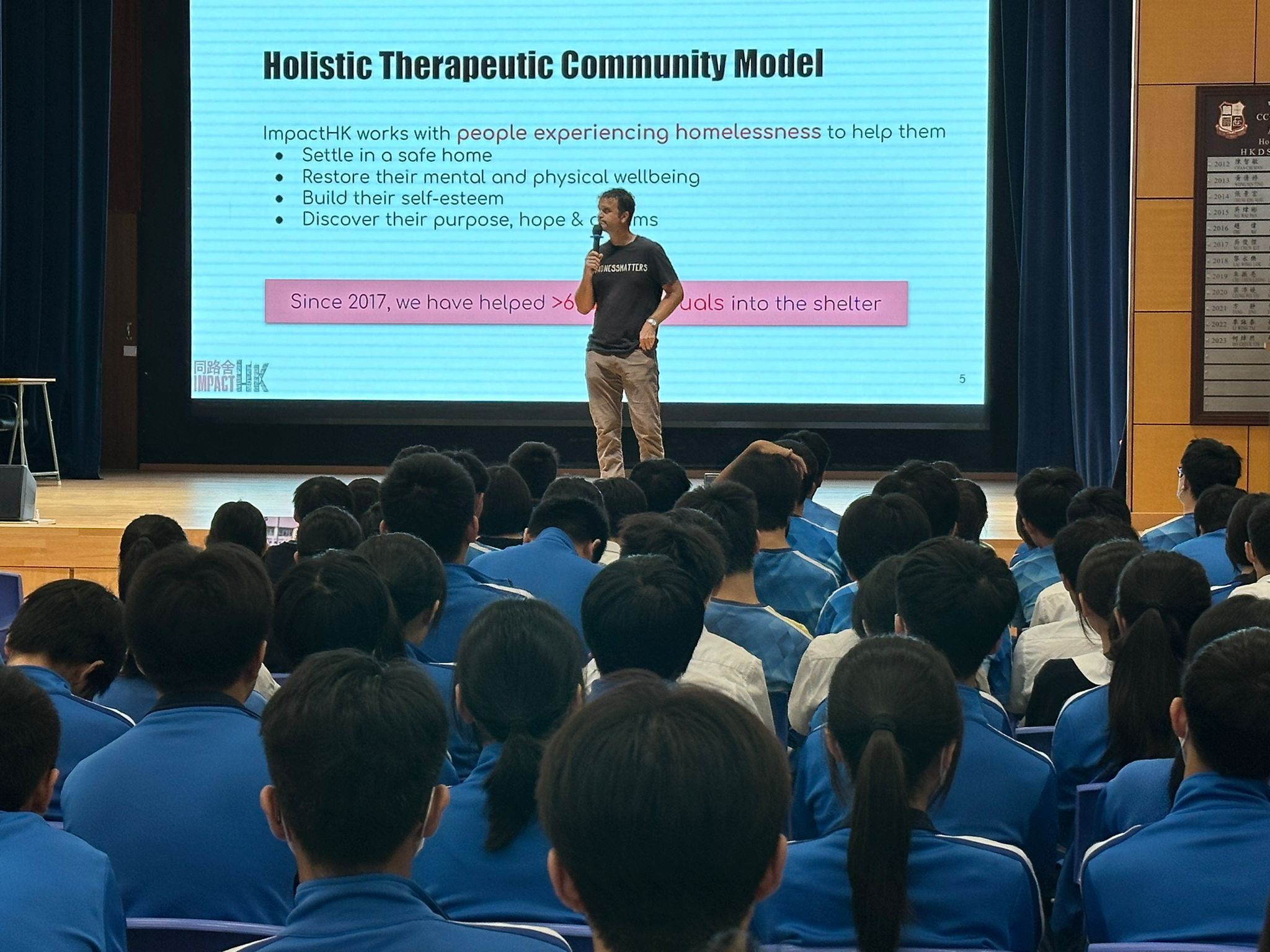 價值觀教育委員會與英文科邀請同路舍討論無家者問題。學生深入了解無家者面臨的困境及可獲得的支援,透過踴躍參與展現他們對社會責任的關注。 The Values Education Committee and the English Department invited Impact Hong Kong to discuss homelessness. Students gained insights into the struggles faced by the homeless and the available support, showcasing their concern for social responsibility through enthusiastic participation.