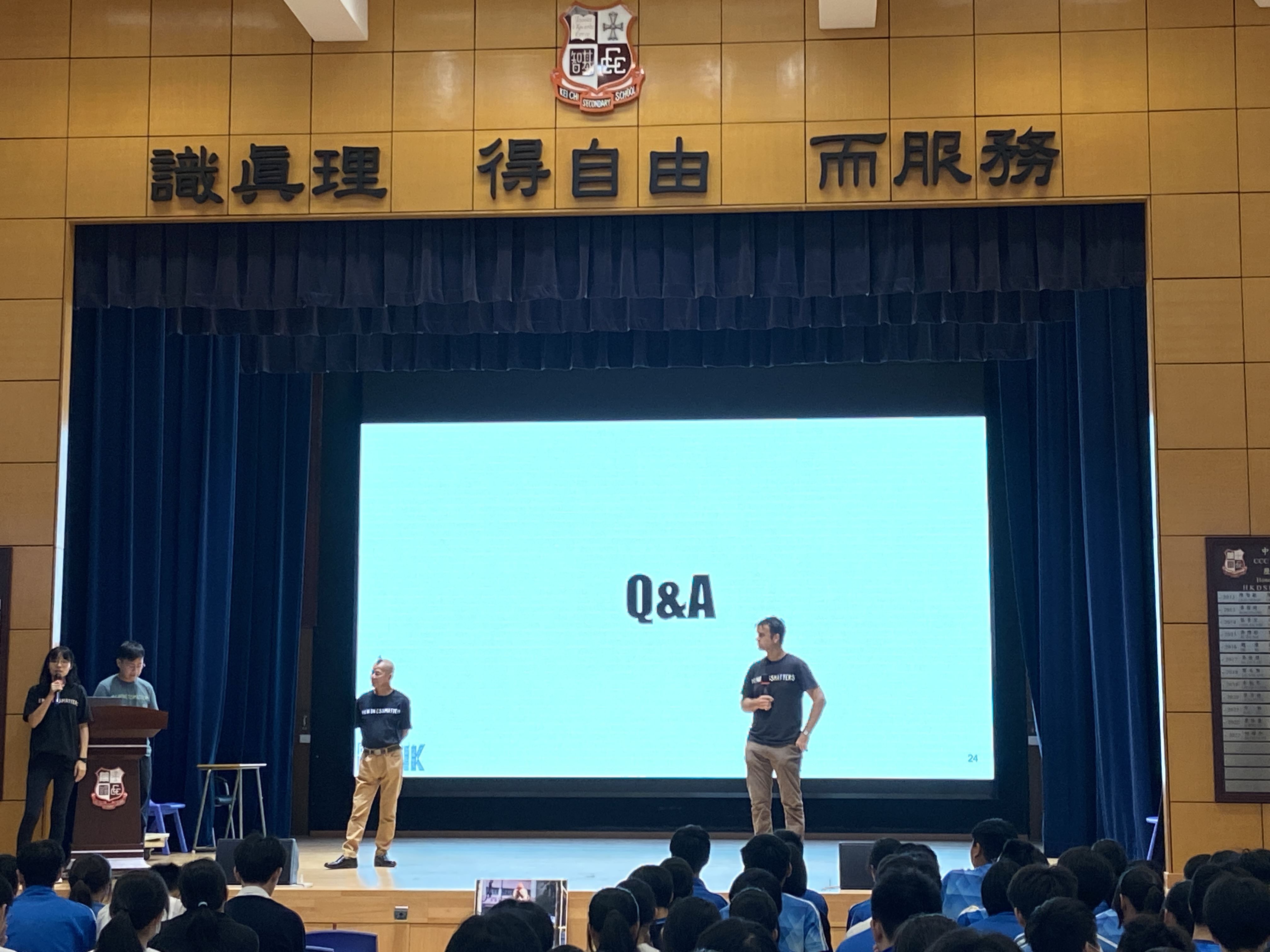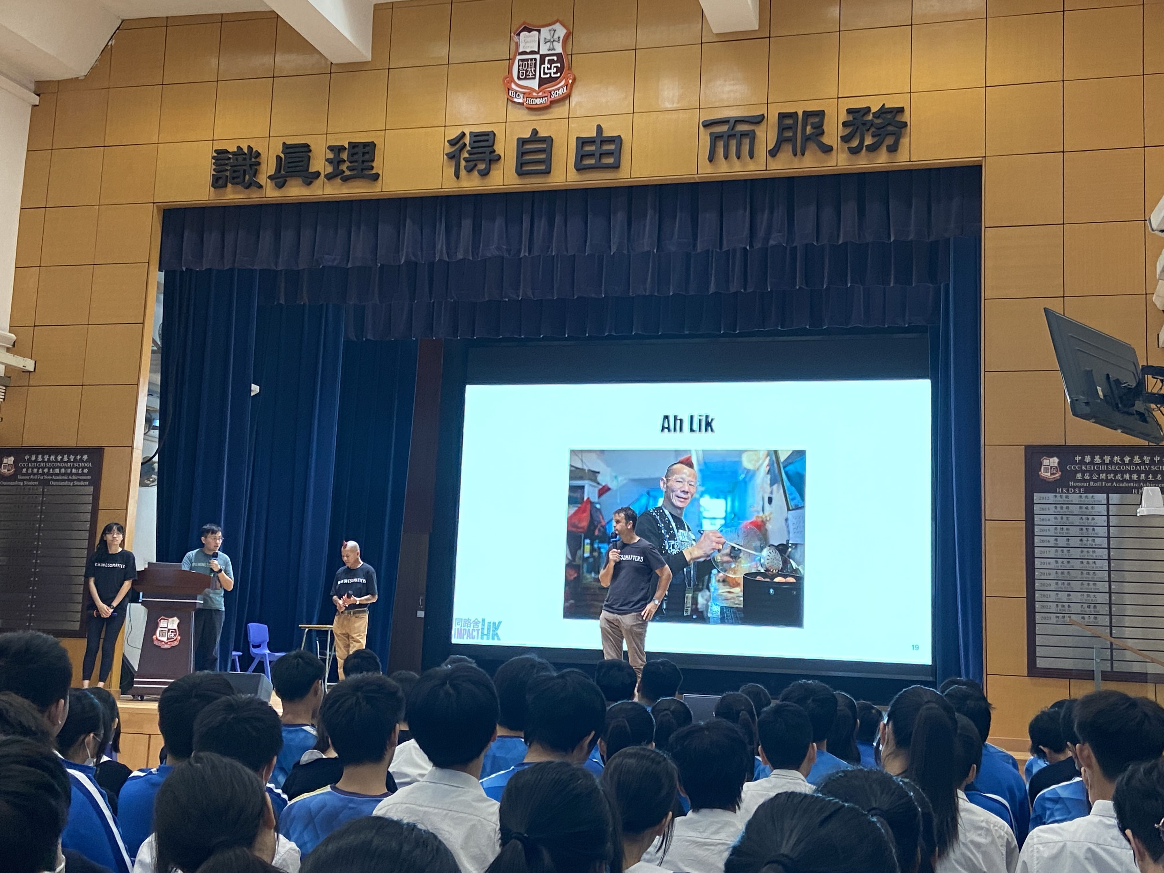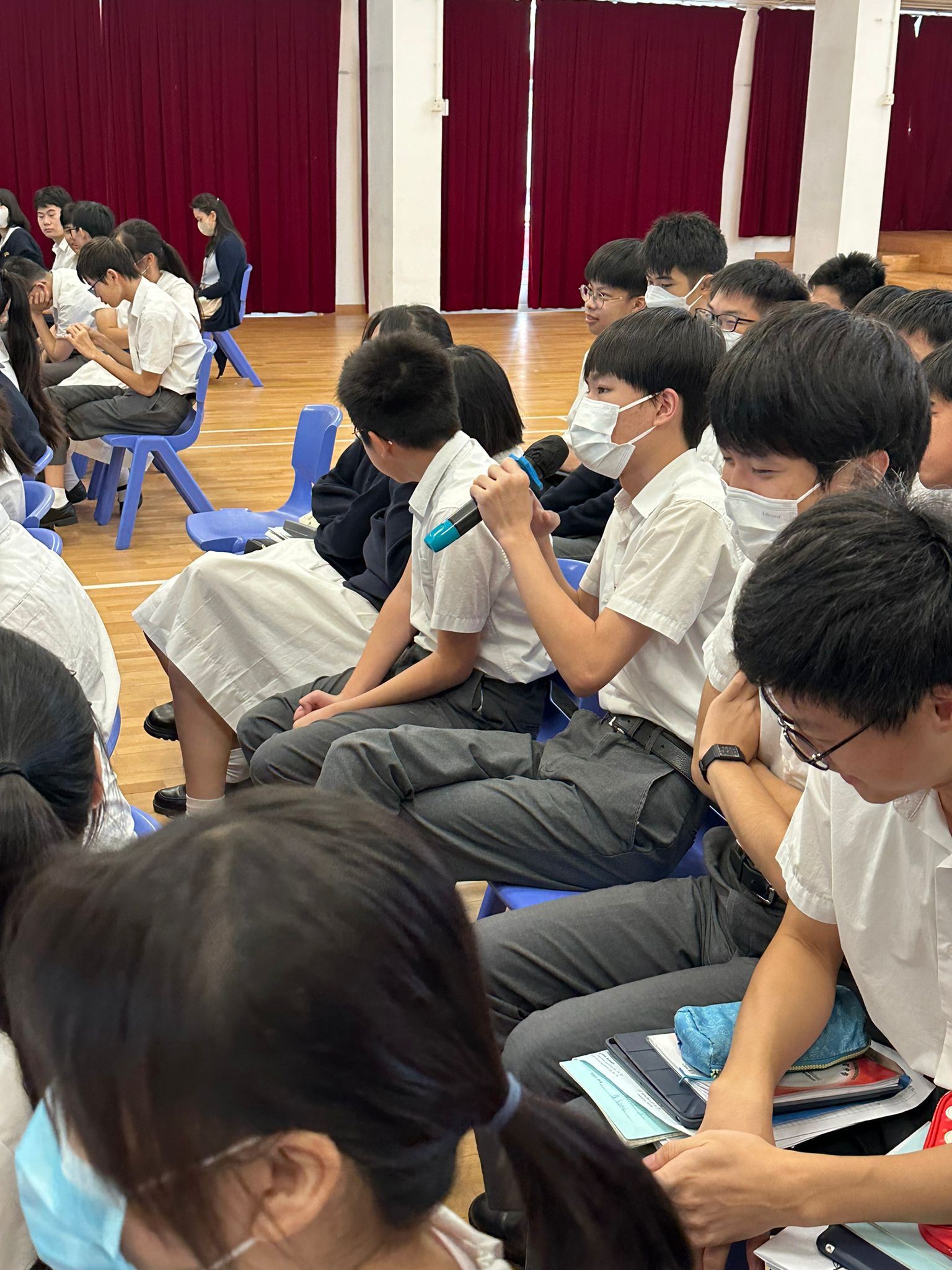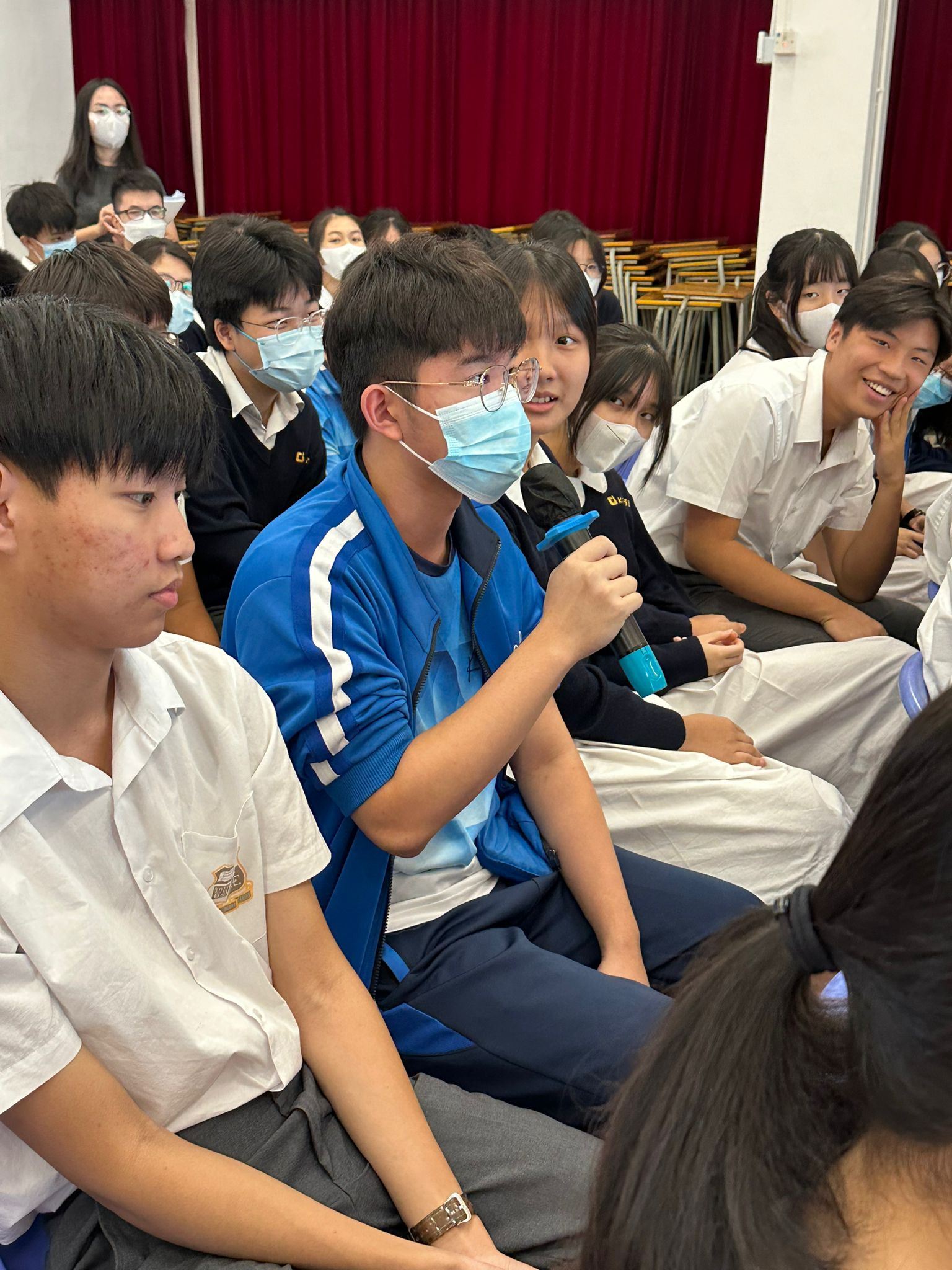 價值觀教育委員會與英文科邀請同路舍討論無家者問題。學生深入了解無家者面臨的困境及可獲得的支援,透過踴躍參與展現他們對社會責任的關注。 The Values Education Committee and the English Department invited Impact Hong Kong to discuss homelessness. Students gained insights into the struggles faced by the homeless and the available support, showcasing their concern for social responsibility through enthusiastic participation.