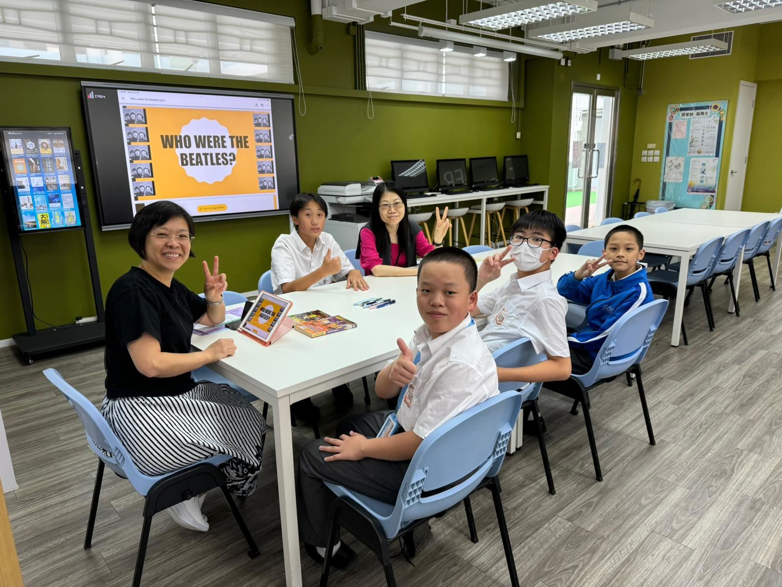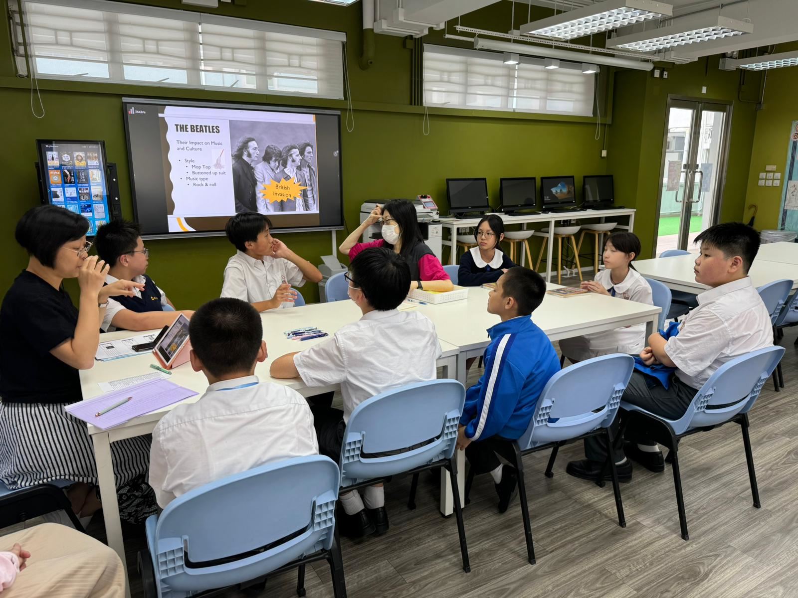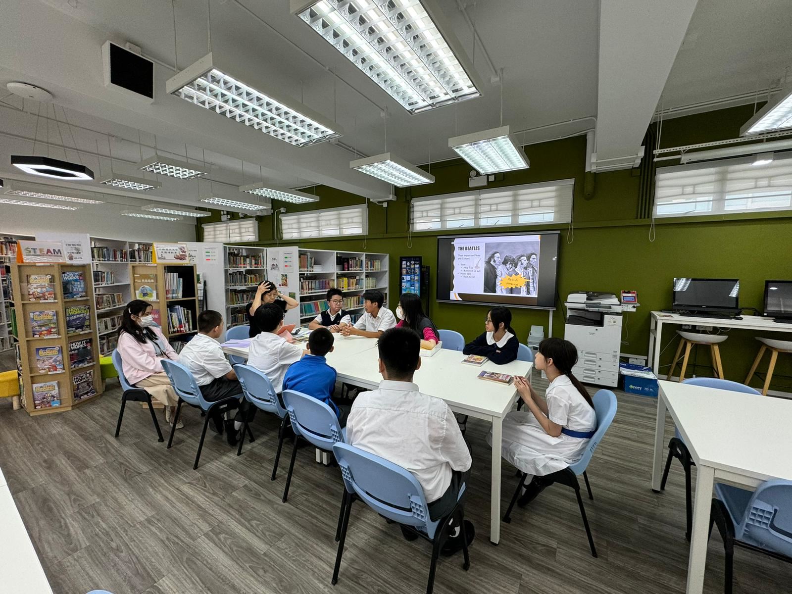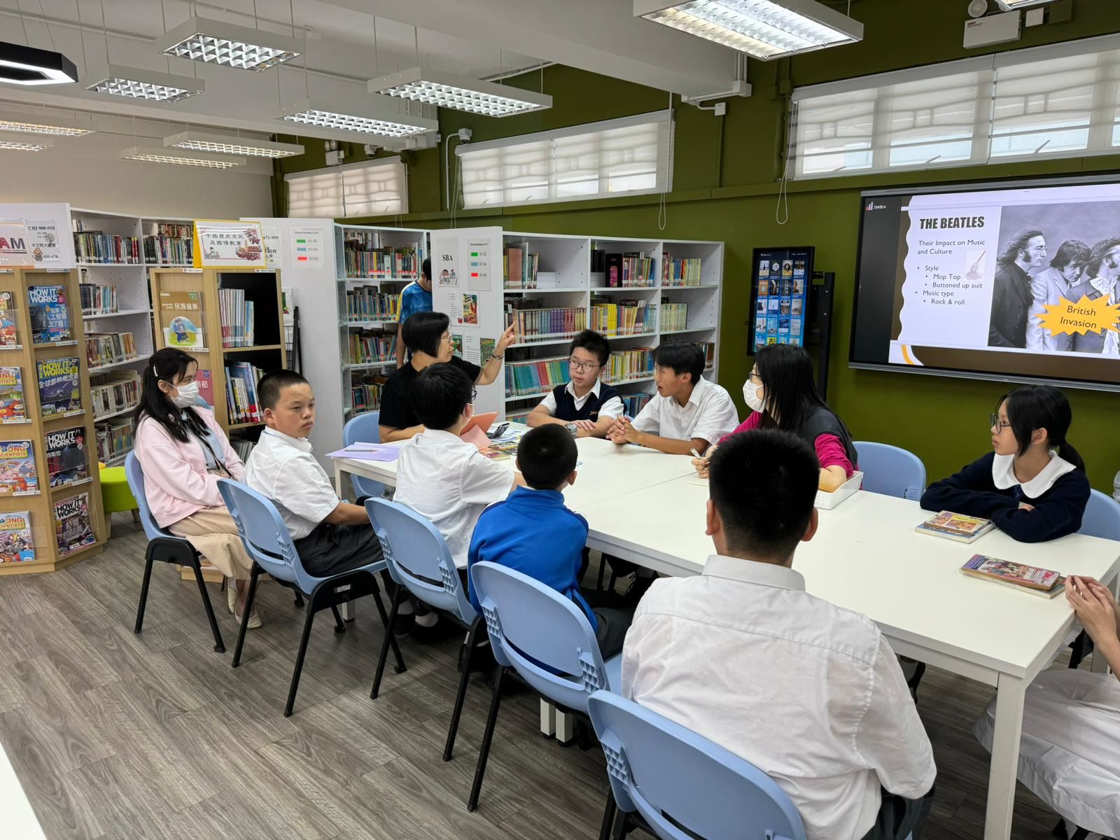 Miss Cheung and Miss Chan collaborated to share with students about the legendary band "The Beatles" and presented two literary works from our school library related to The Beatles in English. Additionally, students finished the song lyrics while tuning in to The Beatles' timeless tracks "Yesterday" and "Let It Be".
