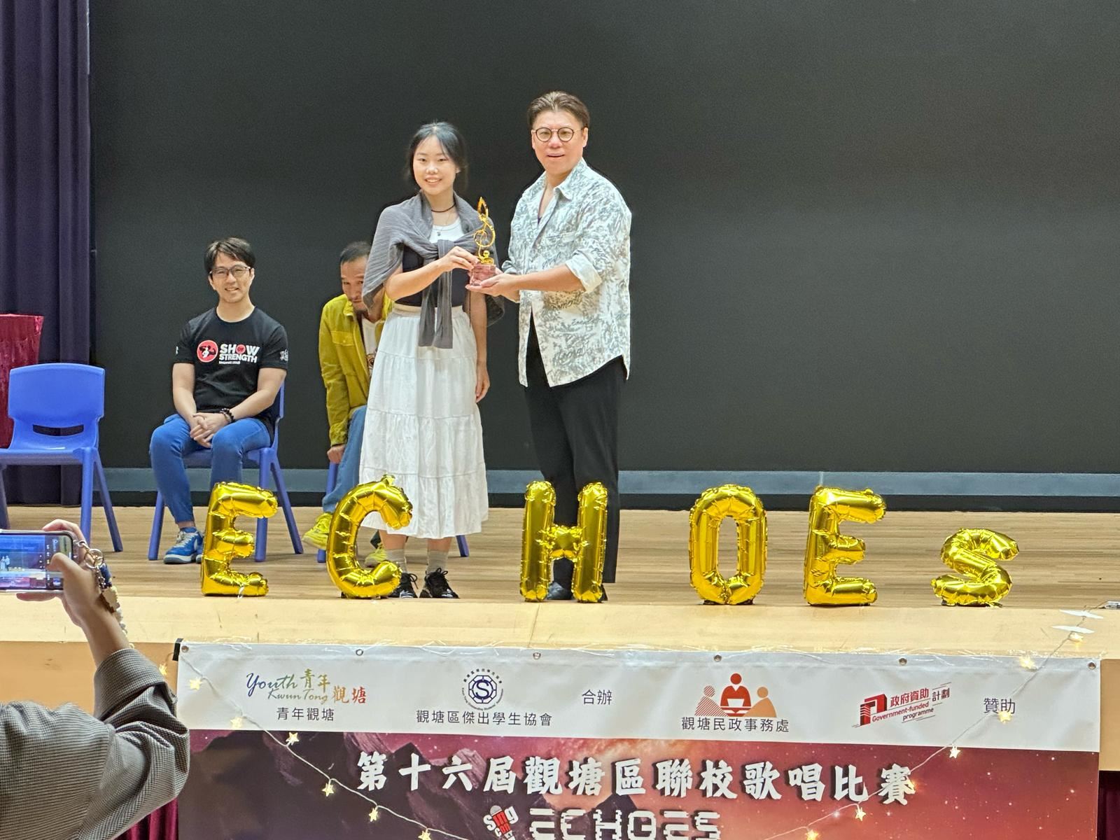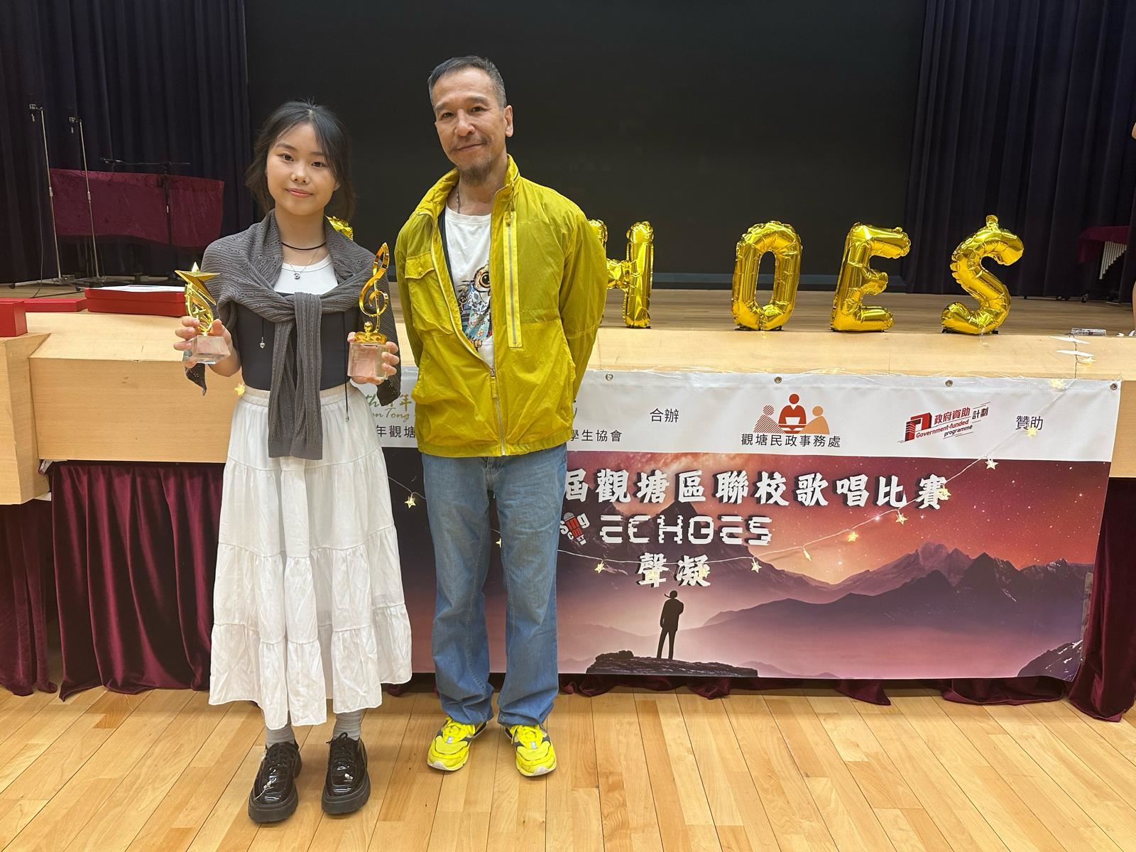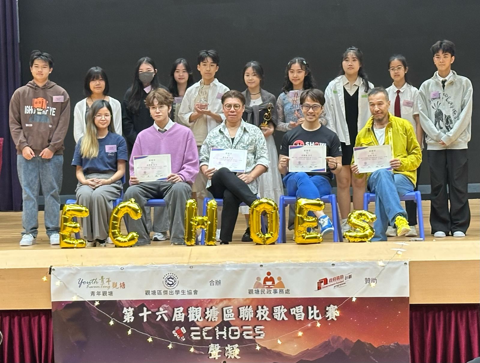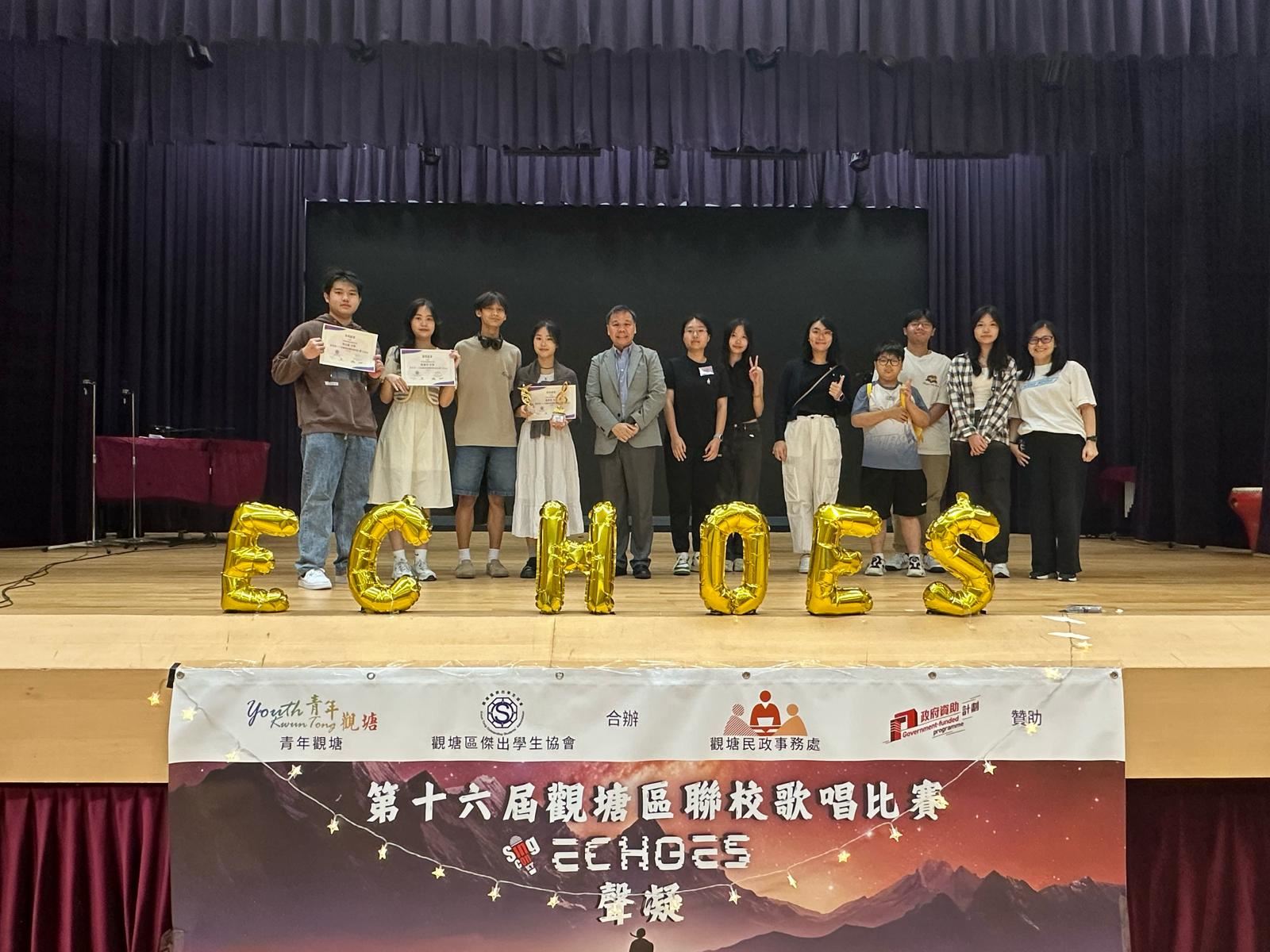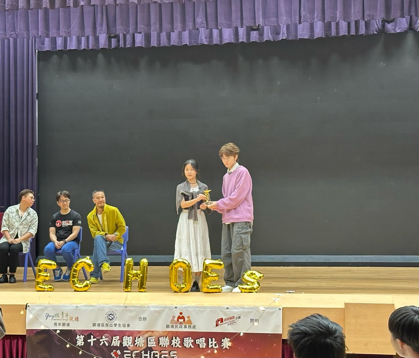 6B班盧嘉善、5C班鄭嘉琪及周志豪參加觀塘區聯校歌唱比賽2024 ECHOES - 聲凝,並入圍決賽。本次比賽共有十名觀塘區學生入圍。其中6B班盧嘉善獲得冠軍及最受觀眾歡迎獎。恭喜以上同學!