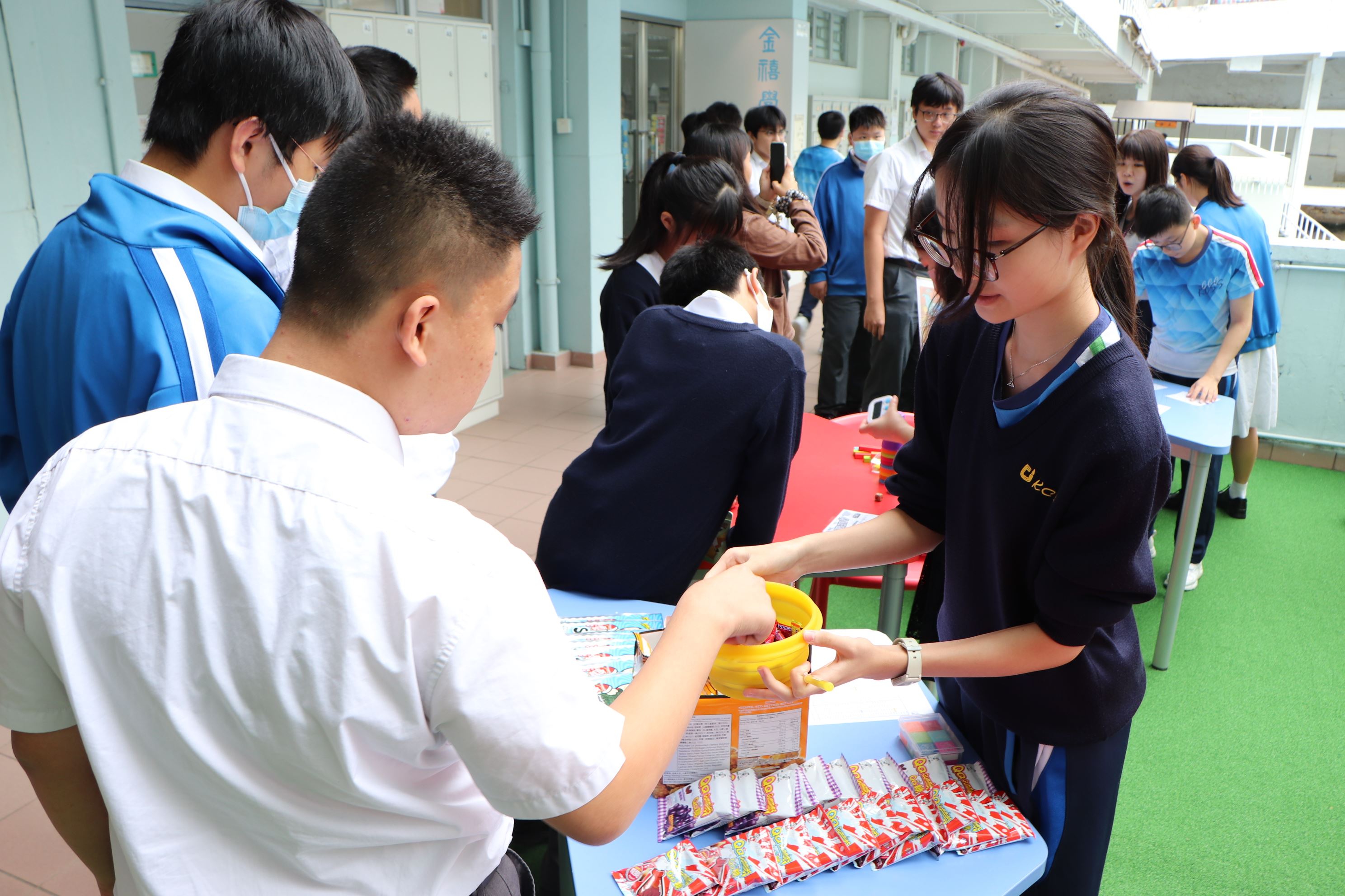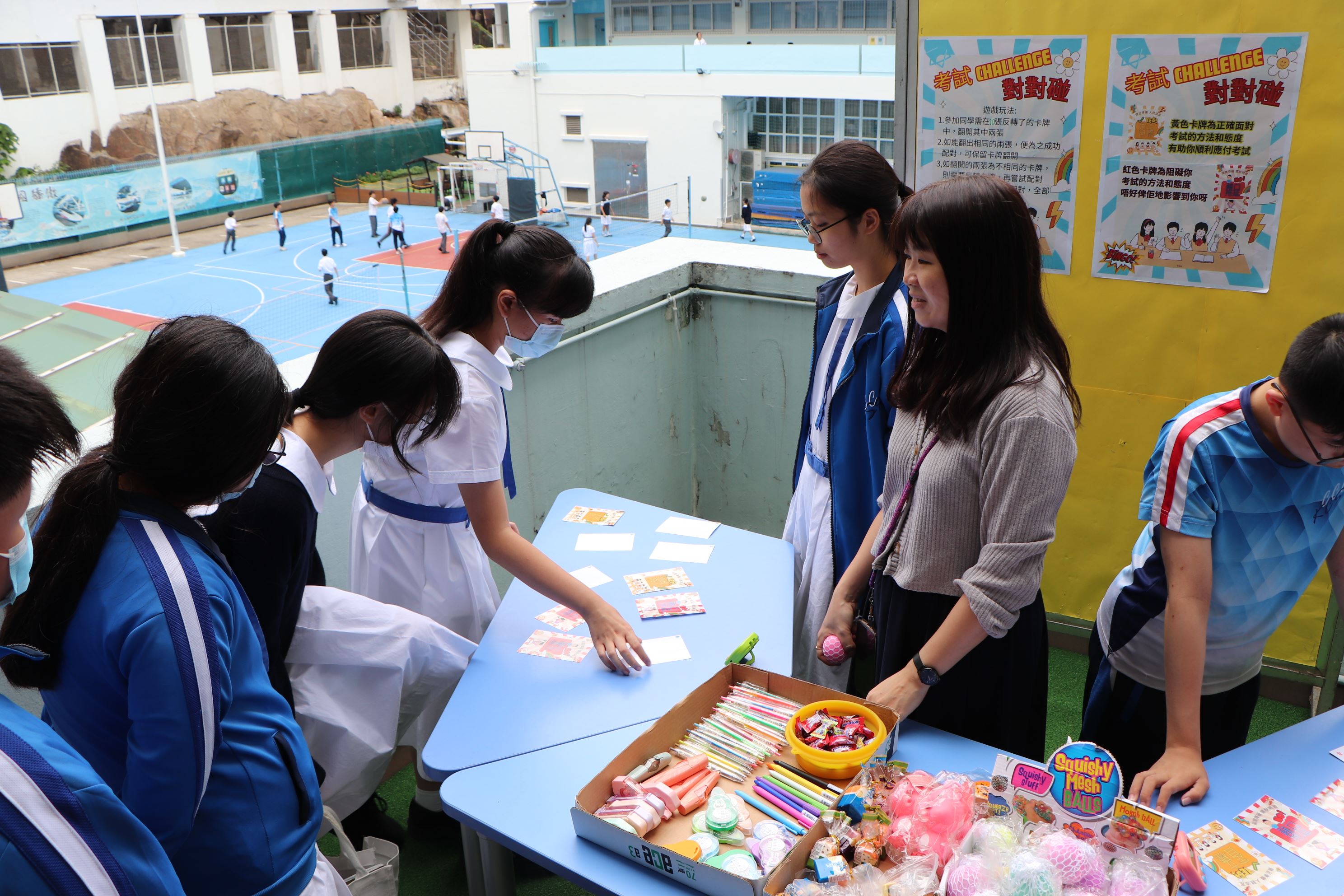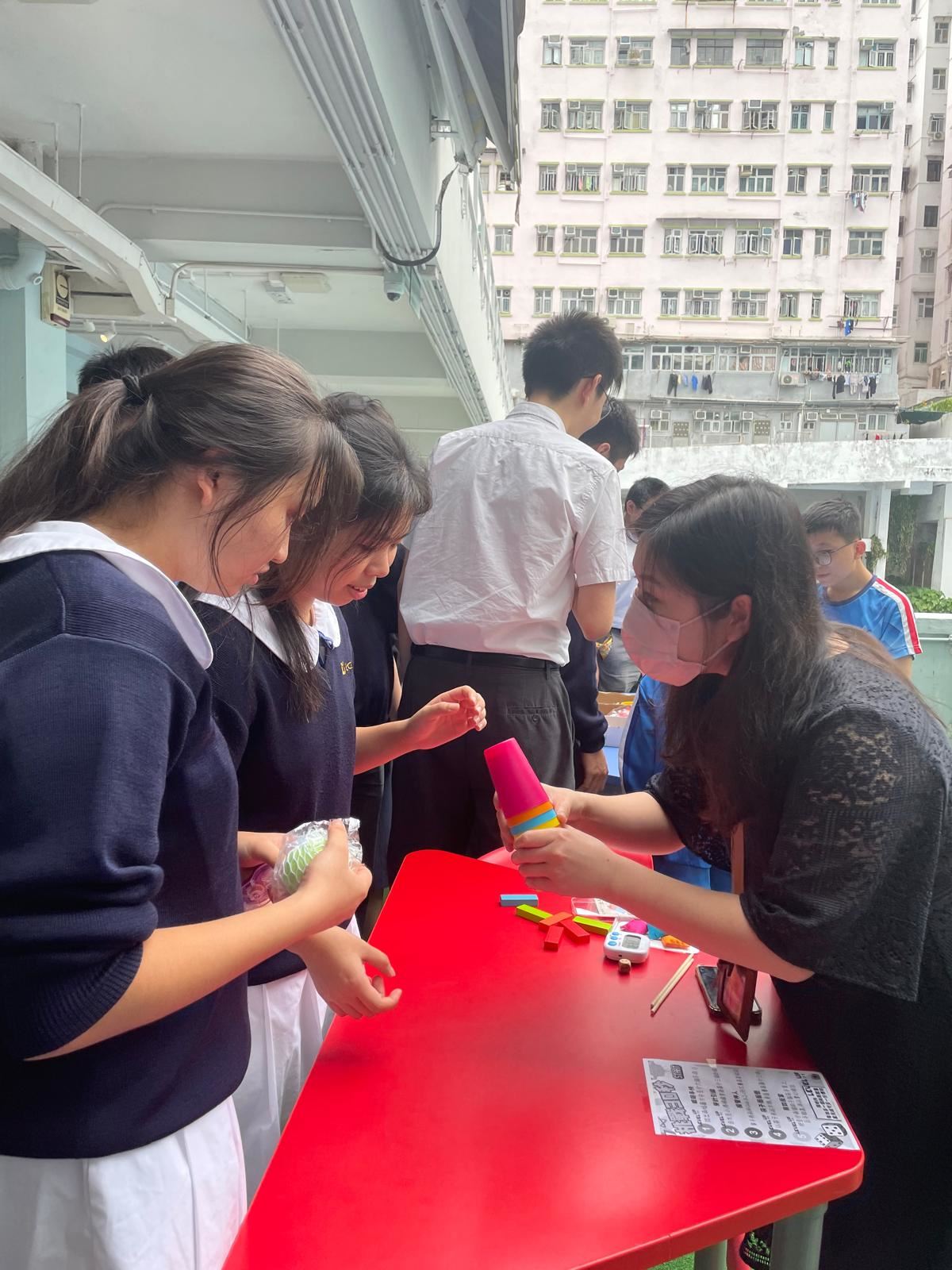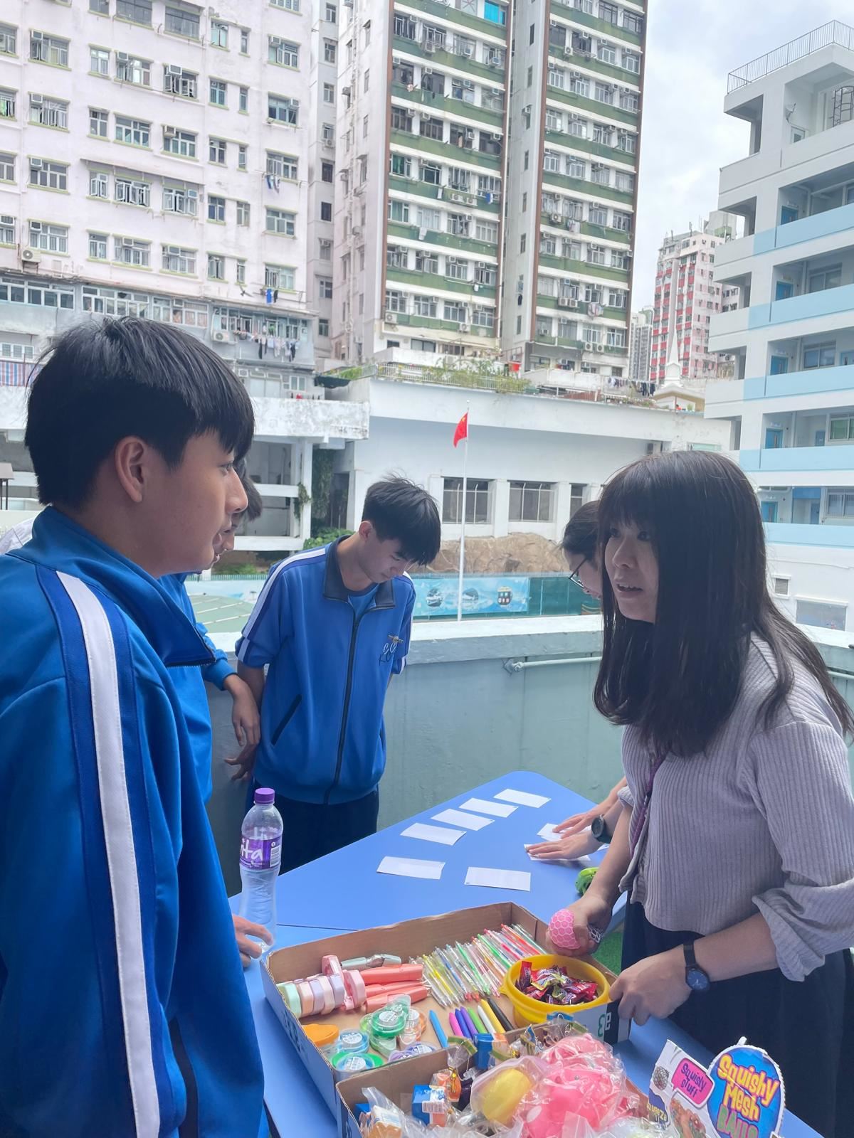 10月為精神健康月,兩位駐校社工及學生會成員分別舉辦不同的減壓攤位,旨在學習恰當的減壓方法及考試前為同學打氣。