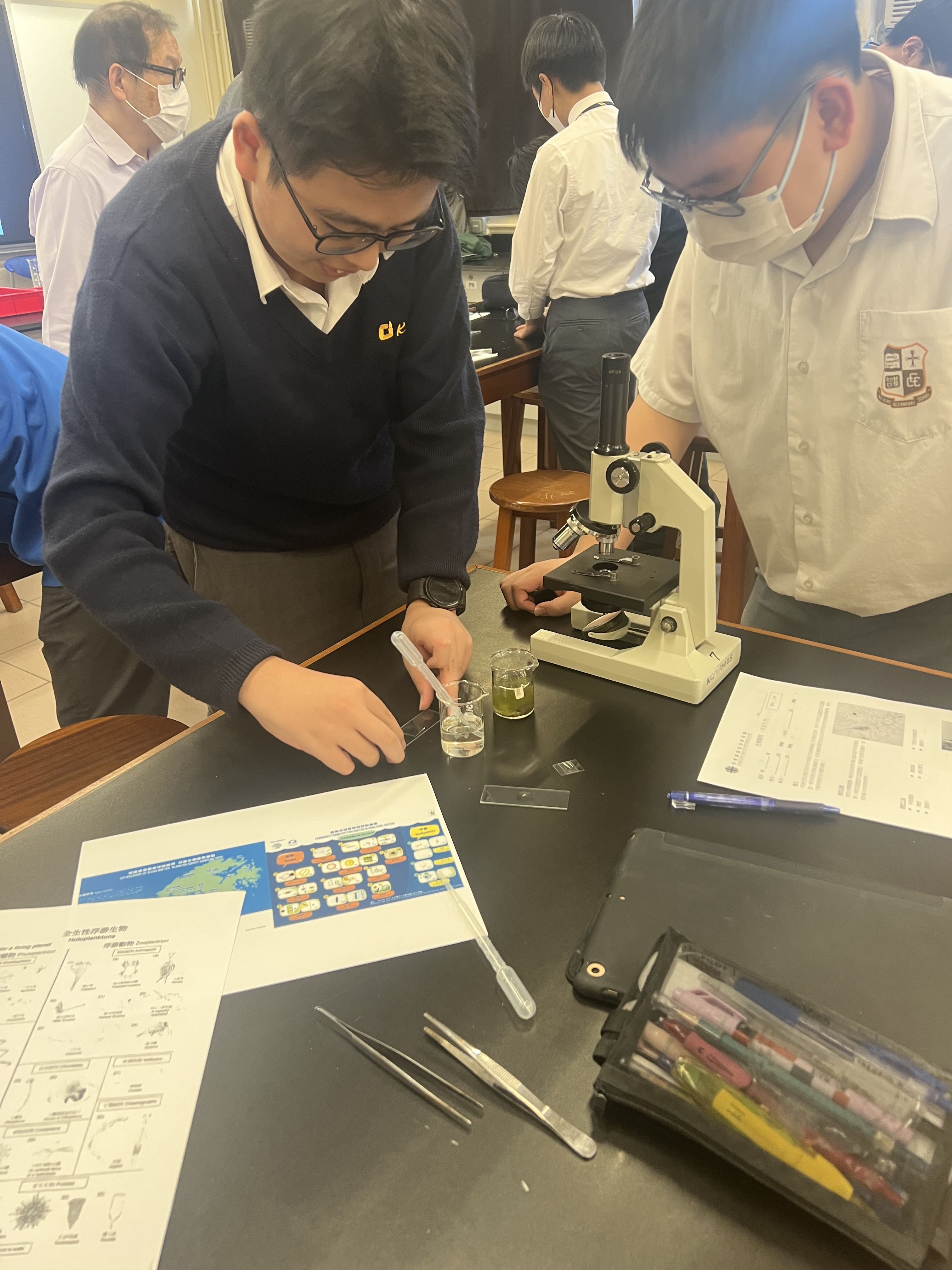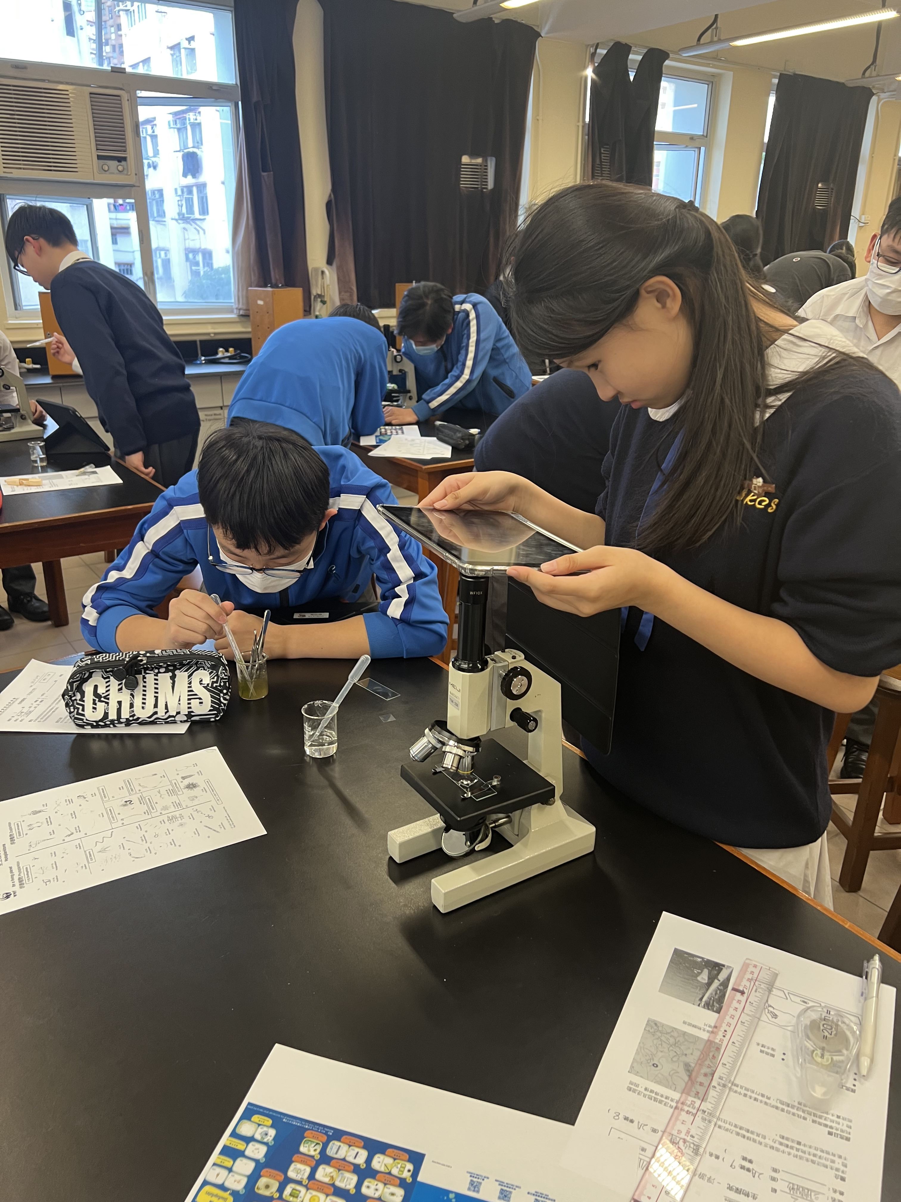 科學科為發展學生進行科學探究實驗的技能,為中二級學生舉辦「初中科學科浮游生物外展工作坊」,學生利用顯微鏡觀察浮游生物。活動中同學積極參與,找尋及拍攝不同浮游生物。