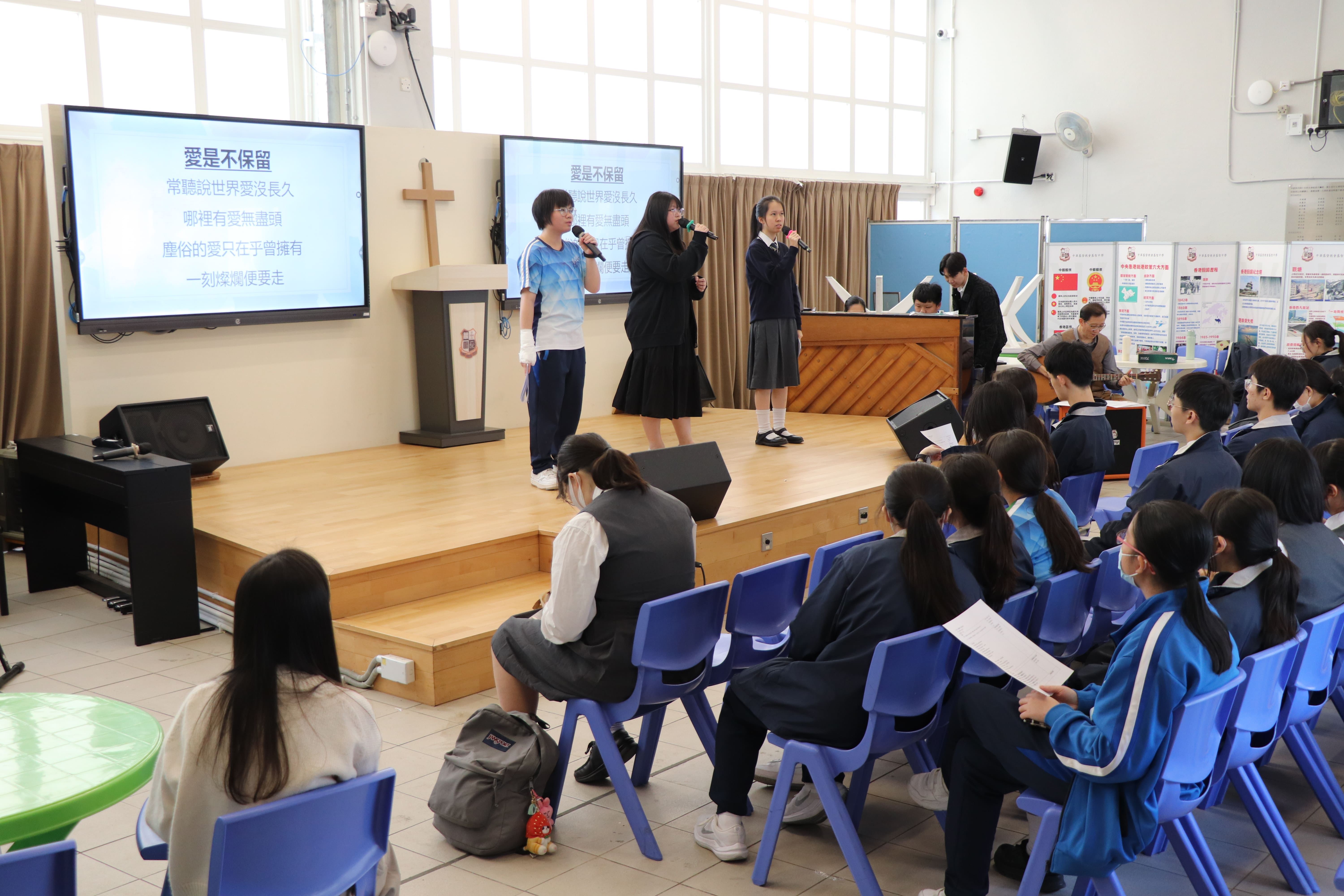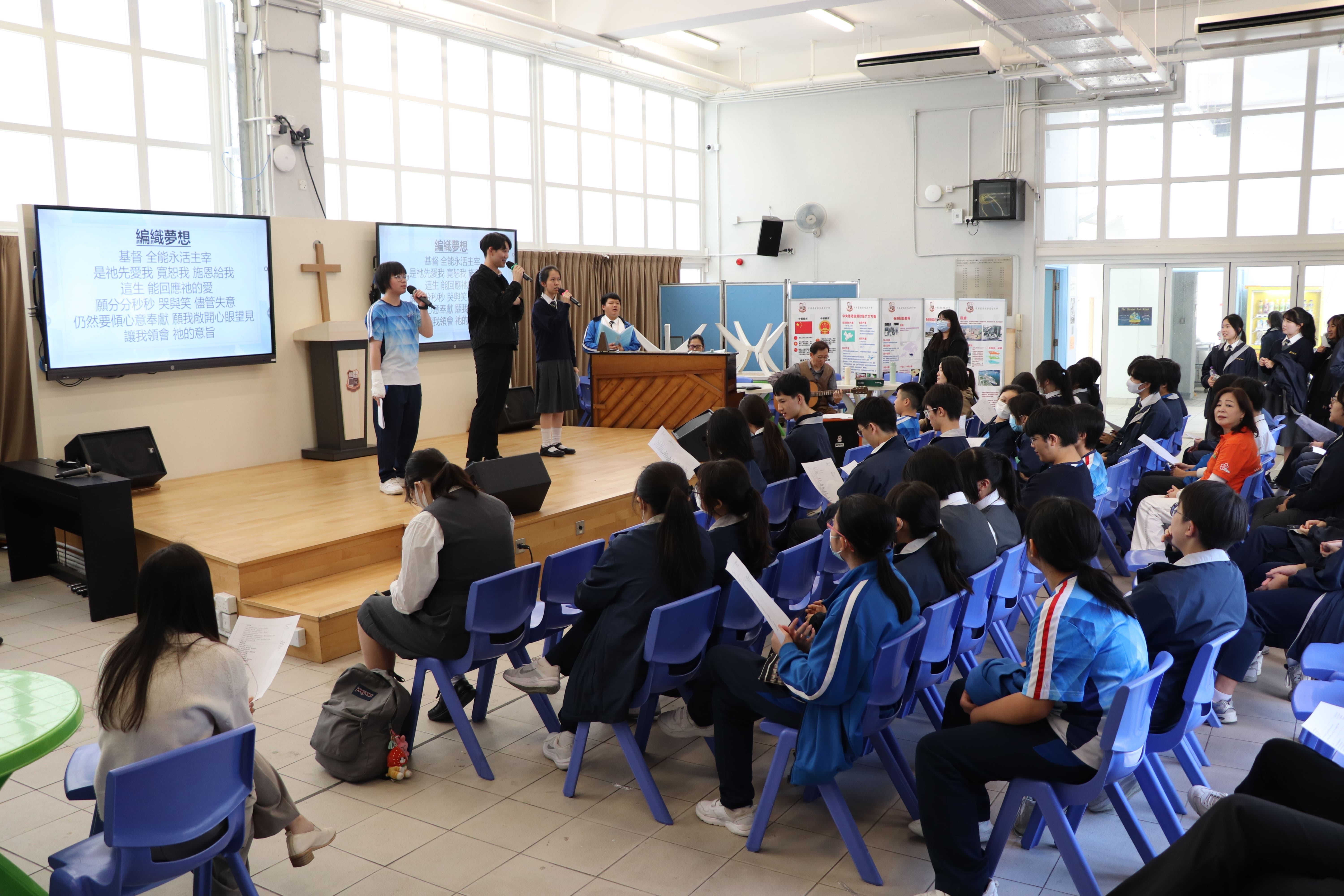 福音周的第五天,在12月13日,宗教委員會和英才計劃同學舉行了「共唱夢想」的活動。活動中,老師們和同學透過詩歌向同學分享神的恩典,幾位基督精兵和英才計劃的同學也在活動中分享了他們的見證。
