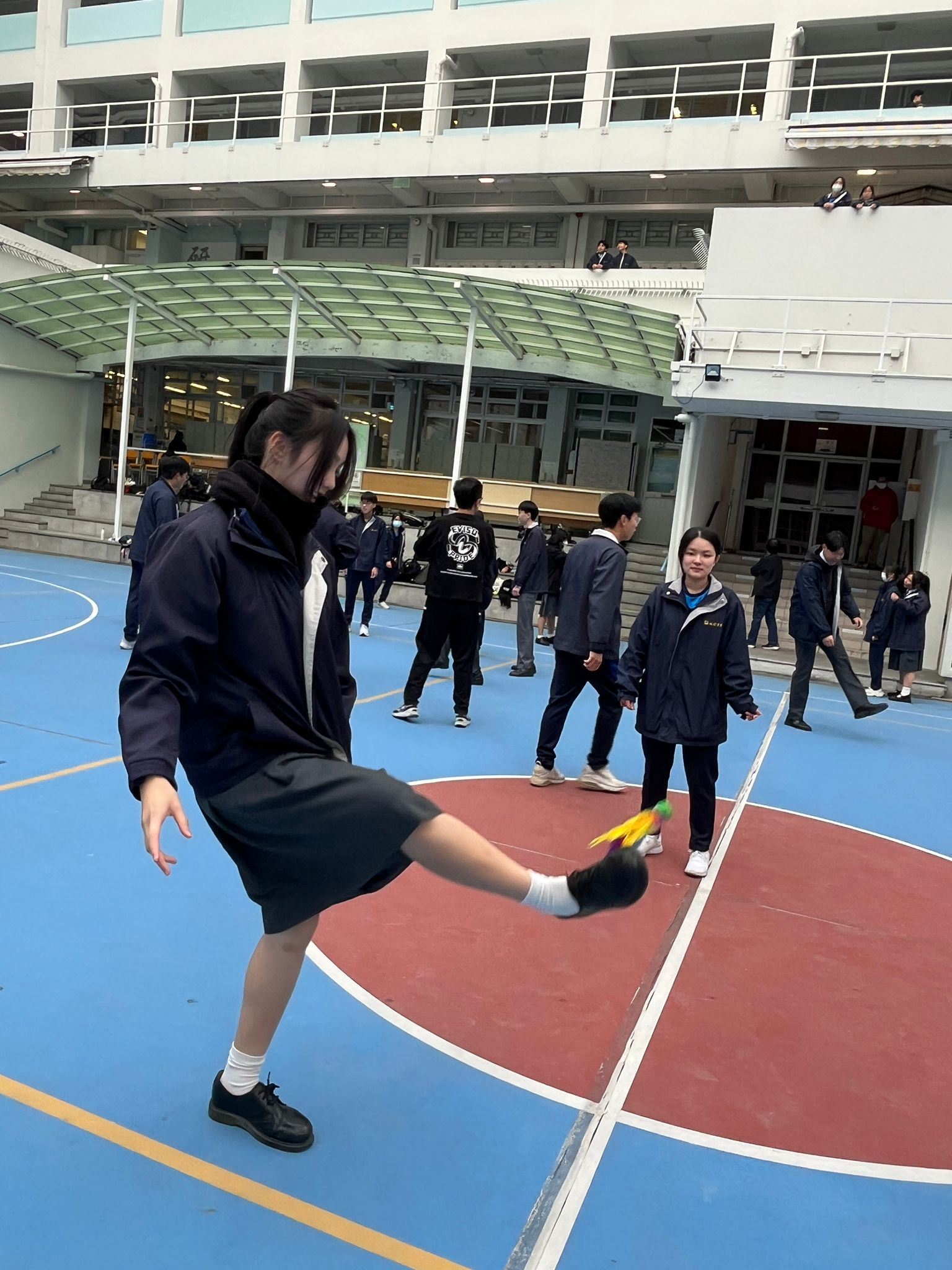 為鼓勵學生多運動,建立健康生活,於2024年12月26日早會向中六級全級同學及老師介紹了這項中國的傳統運動,並一起於於操場踢毽,最後還進行了班際比試,最後由6C班勝出。
