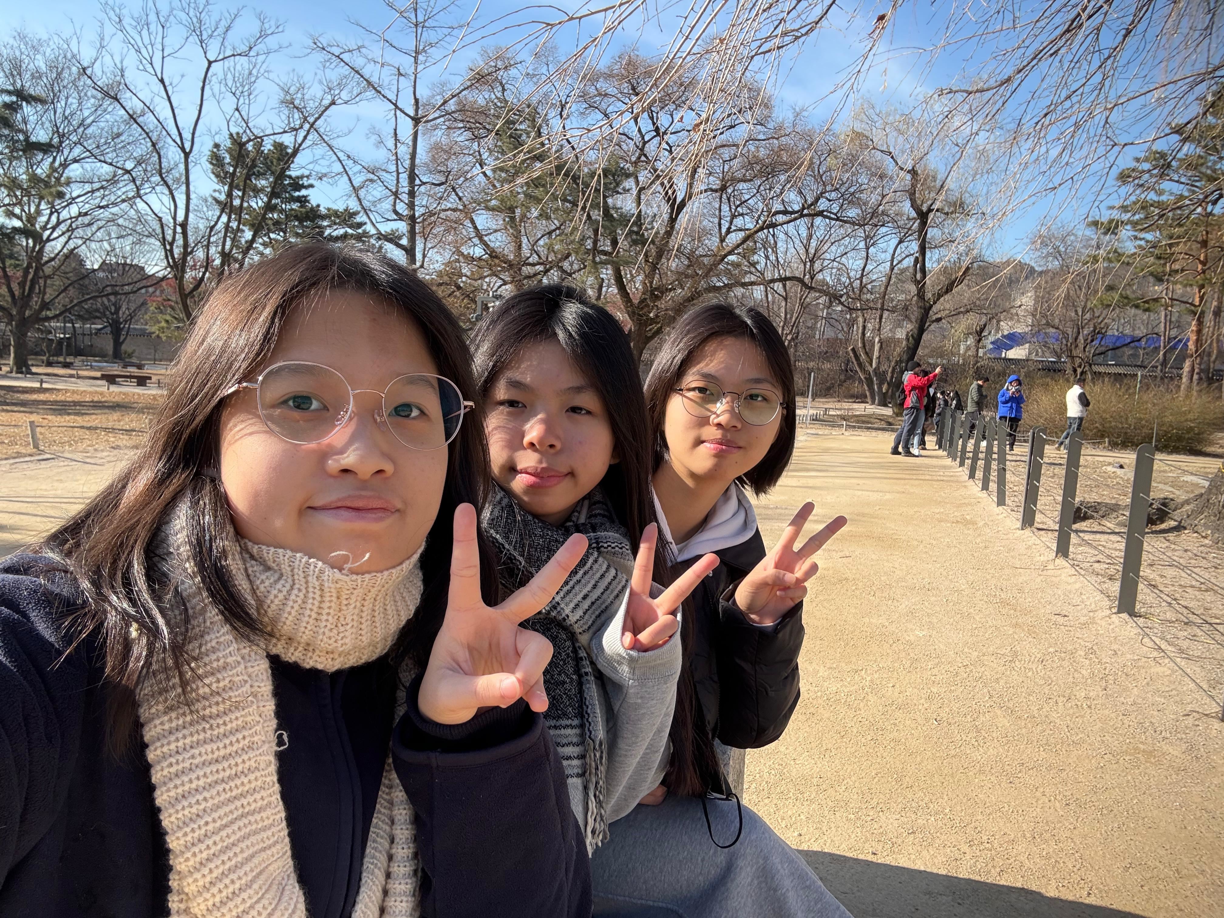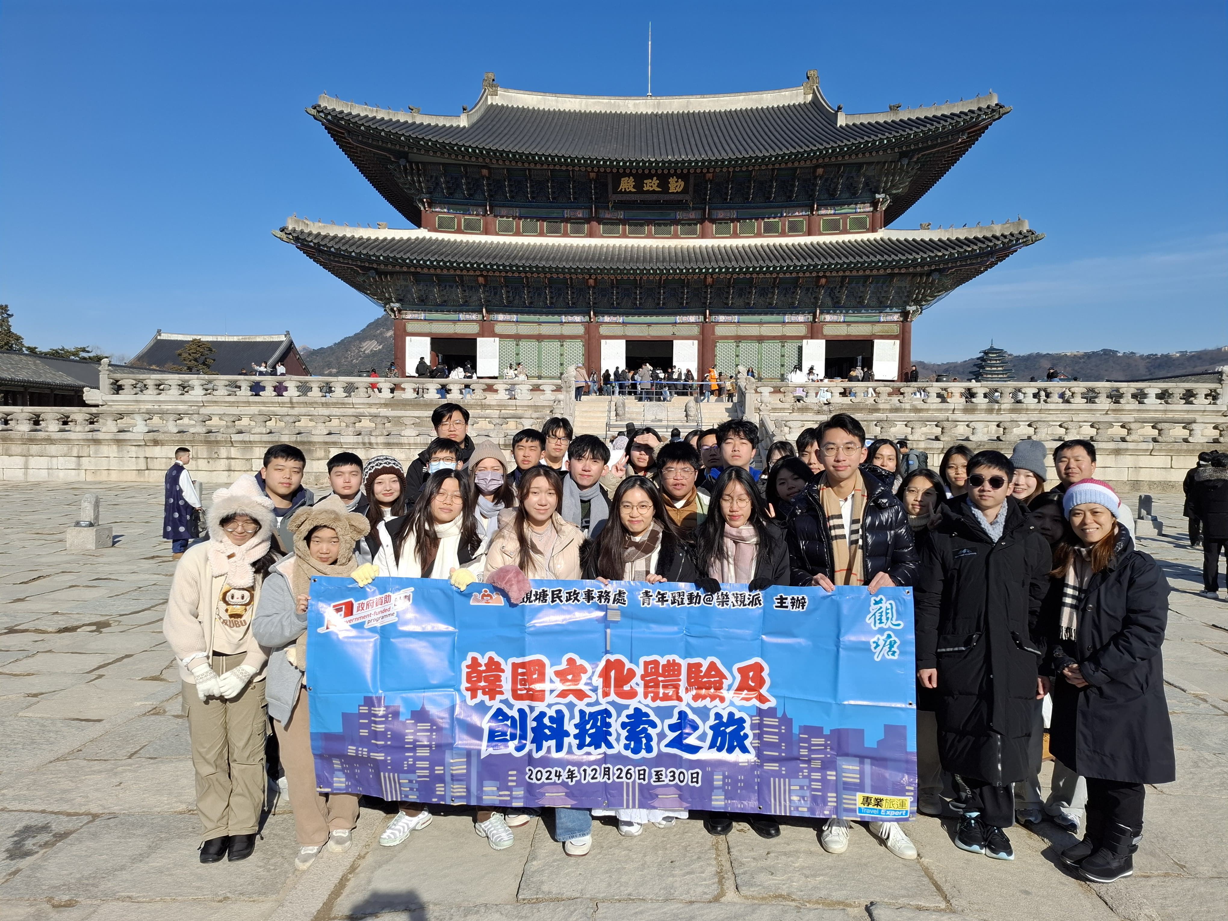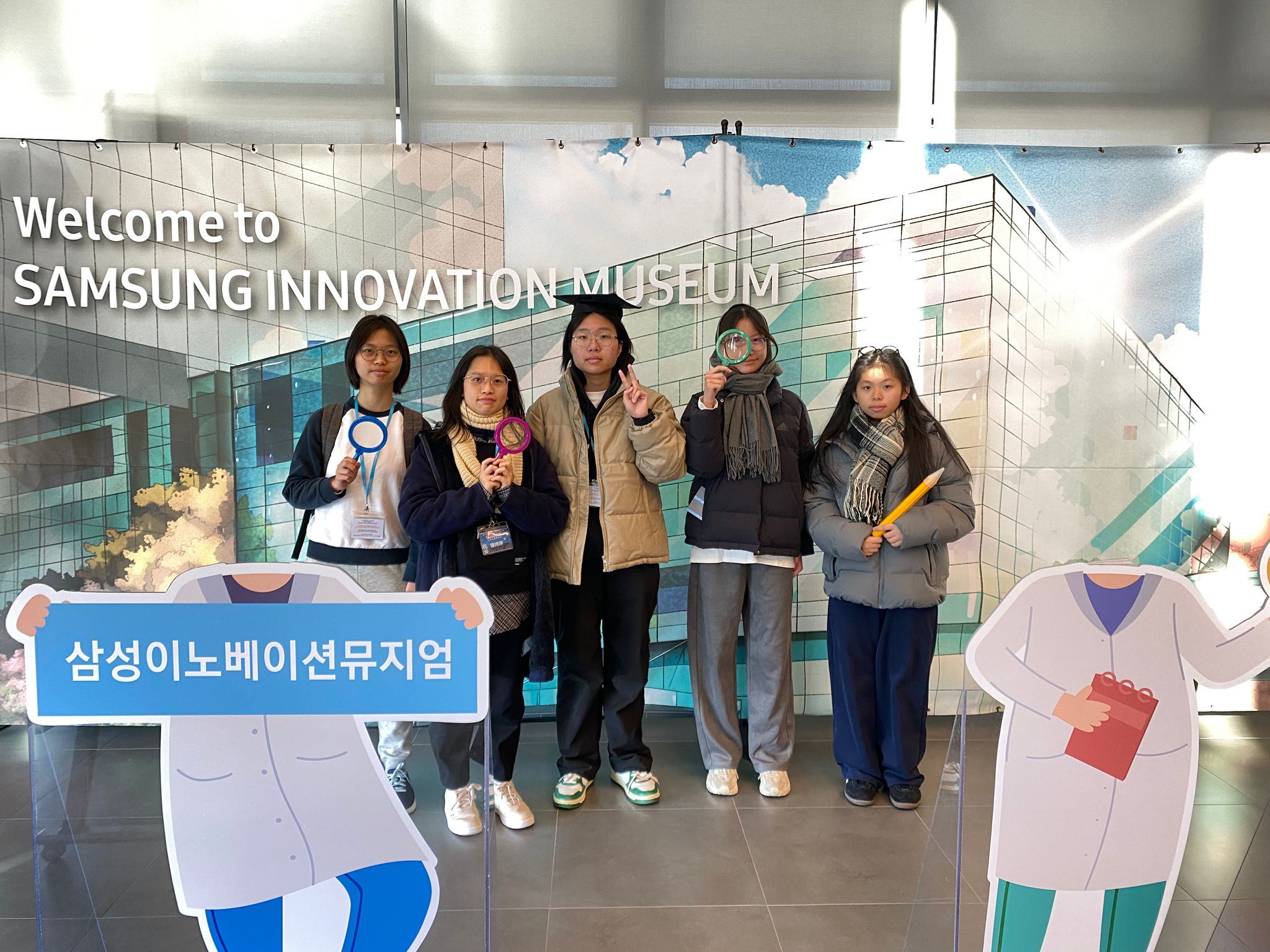 4D林錦香、5C林子妍、葉心悅、5D劉健麗、姚竹虹及6C鍾娉婷參加由觀塘民政事務處主辦的「青年躍動@樂觀派」之「韓國文化體驗及創科探索之旅」,學生進行5日4夜(26/12/2024-30/12/2024)之考察,學習內容有三方面,包括科技學習、韓國歷史、韓流文化及青年交流。科技學習行程包括到訪現代汽車、富川機械人公國、三星創新博物館、國立果川科學館。韓國歷史行程包括遊訪景福宮、青瓦台、國立民俗博物館、仁寺洞傳統文化大道、北村韓屋村、國立中央博物館。韓流文化及青年交流行程包括參訪好客空間HiKR Ground、K-Pop舞蹈體驗、製作紫菜包飯、韓服體驗、與韓國青年交流。學生在交流期間表現積極投入,準時守紀,獲主辦機構讚賞。活動期間,她們更獲安排參觀中國駐韓大使館及與大使館代表交流,獲益良多。