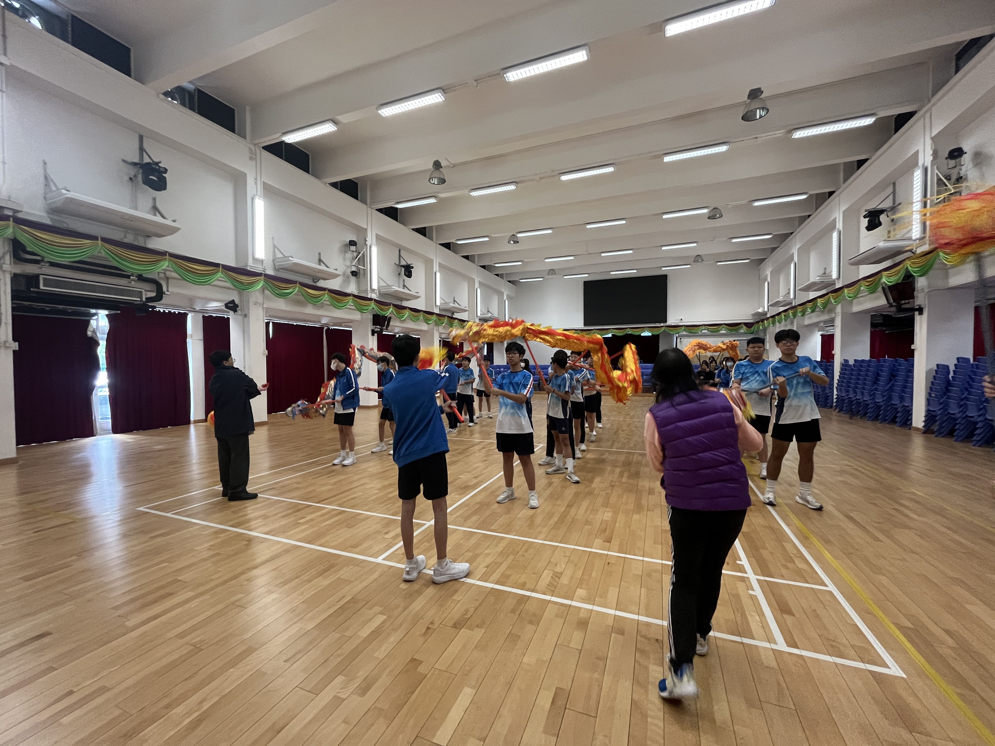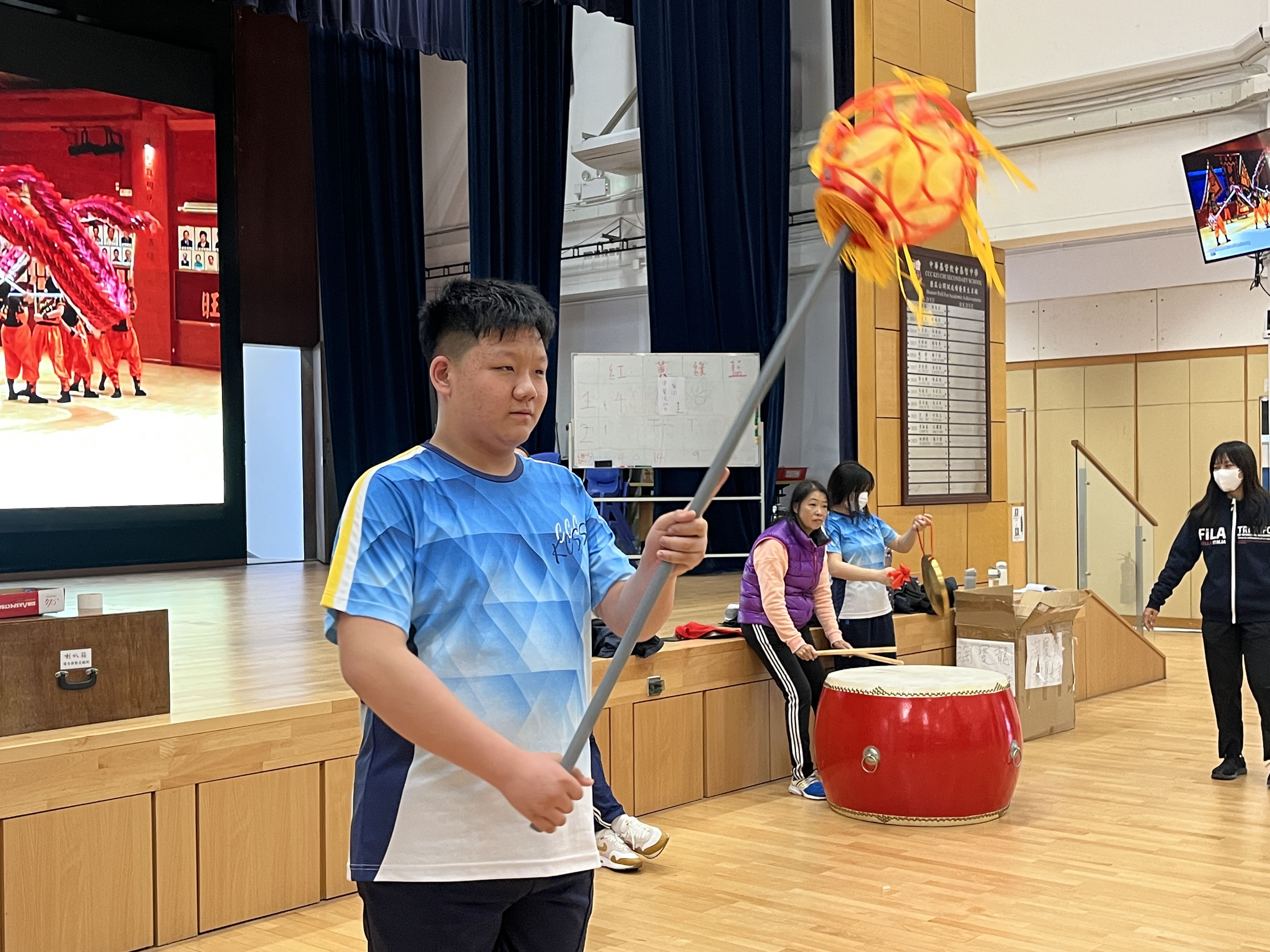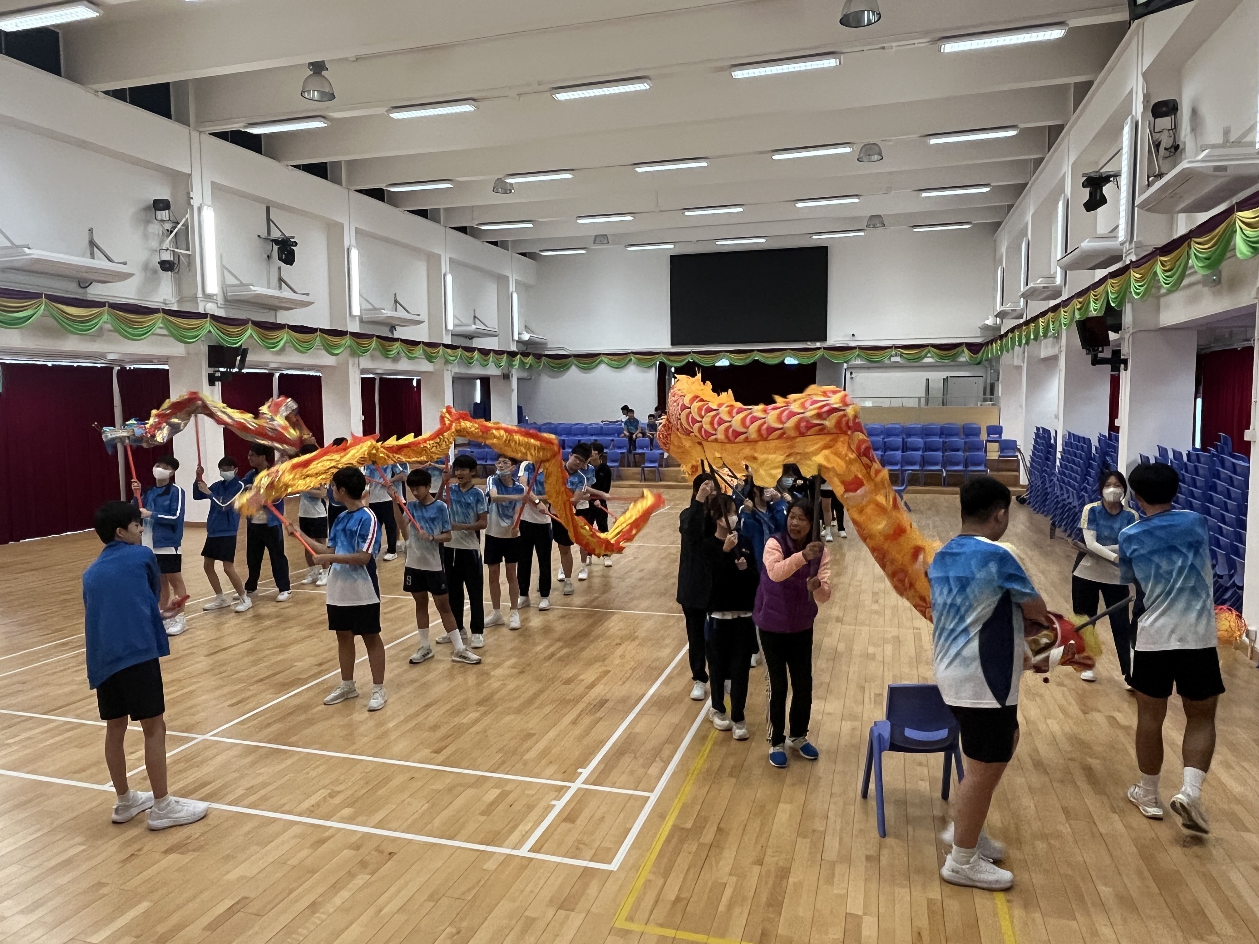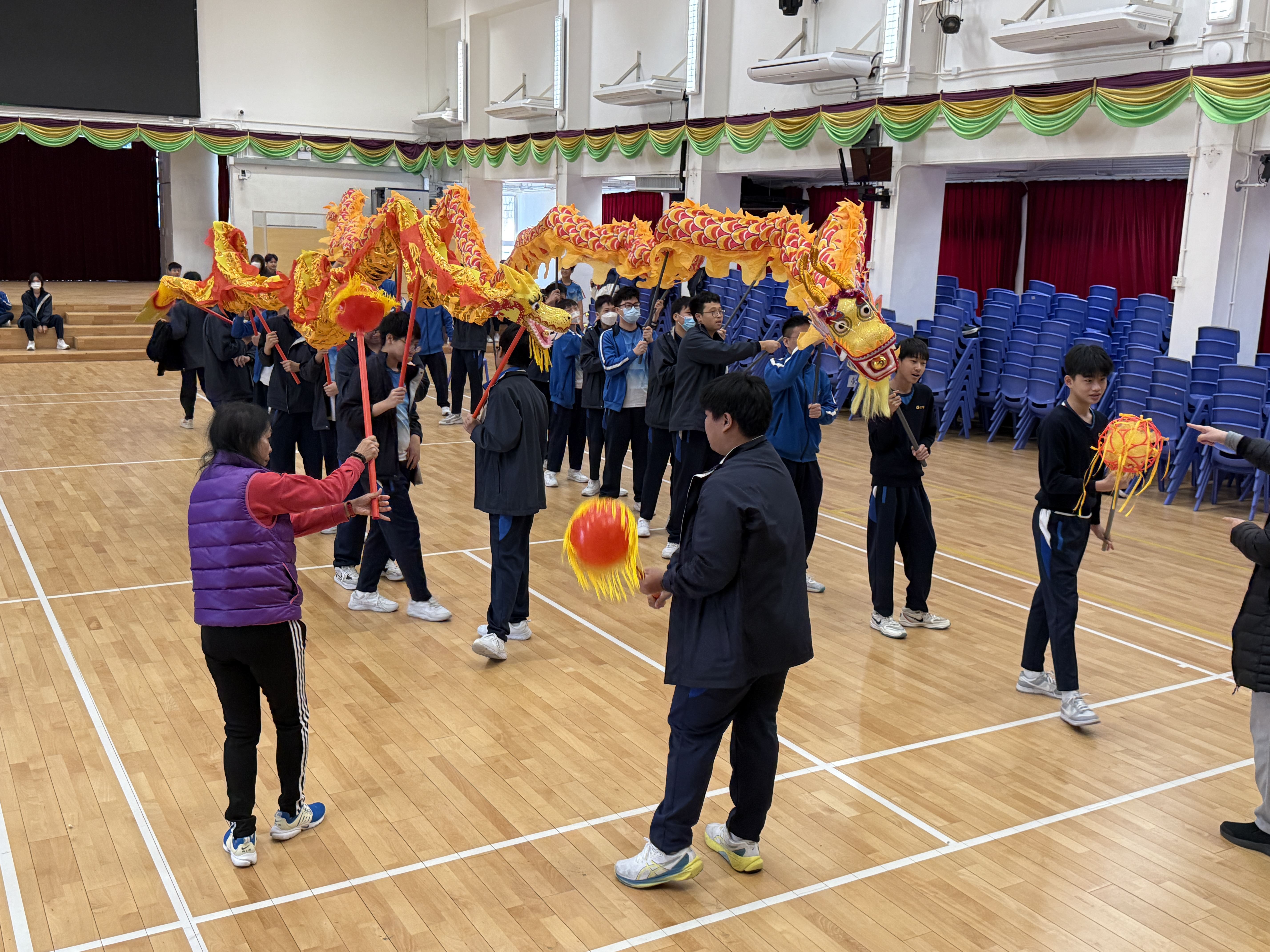 中文科與體育科合辦中華文化日—舞龍課體驗,中三級同學於中文課堂上先認識中國舞龍文化,並於體育課上親身體驗舞龍,同學也非常愉快,龍騰虎躍,師生同迎新春。