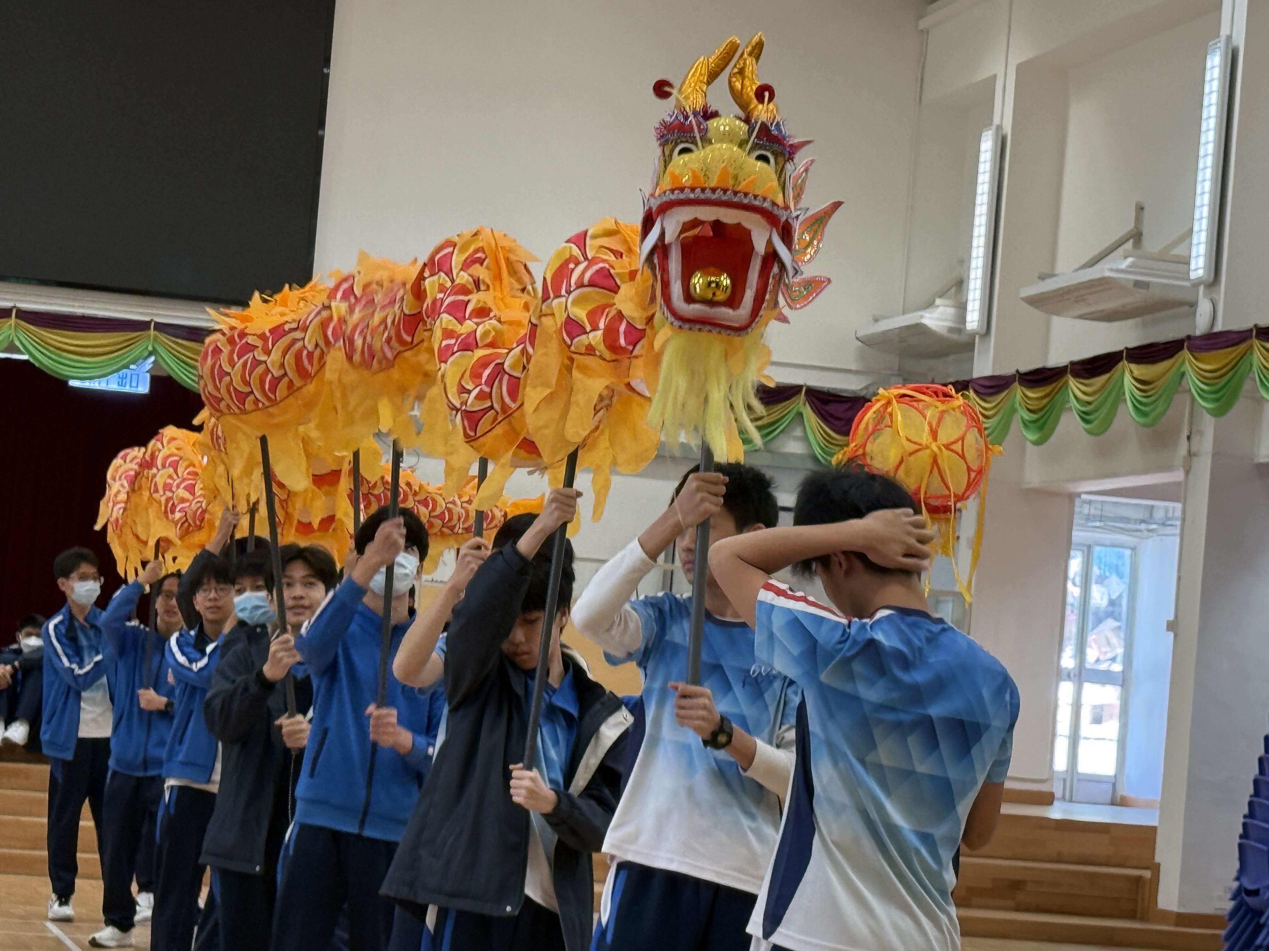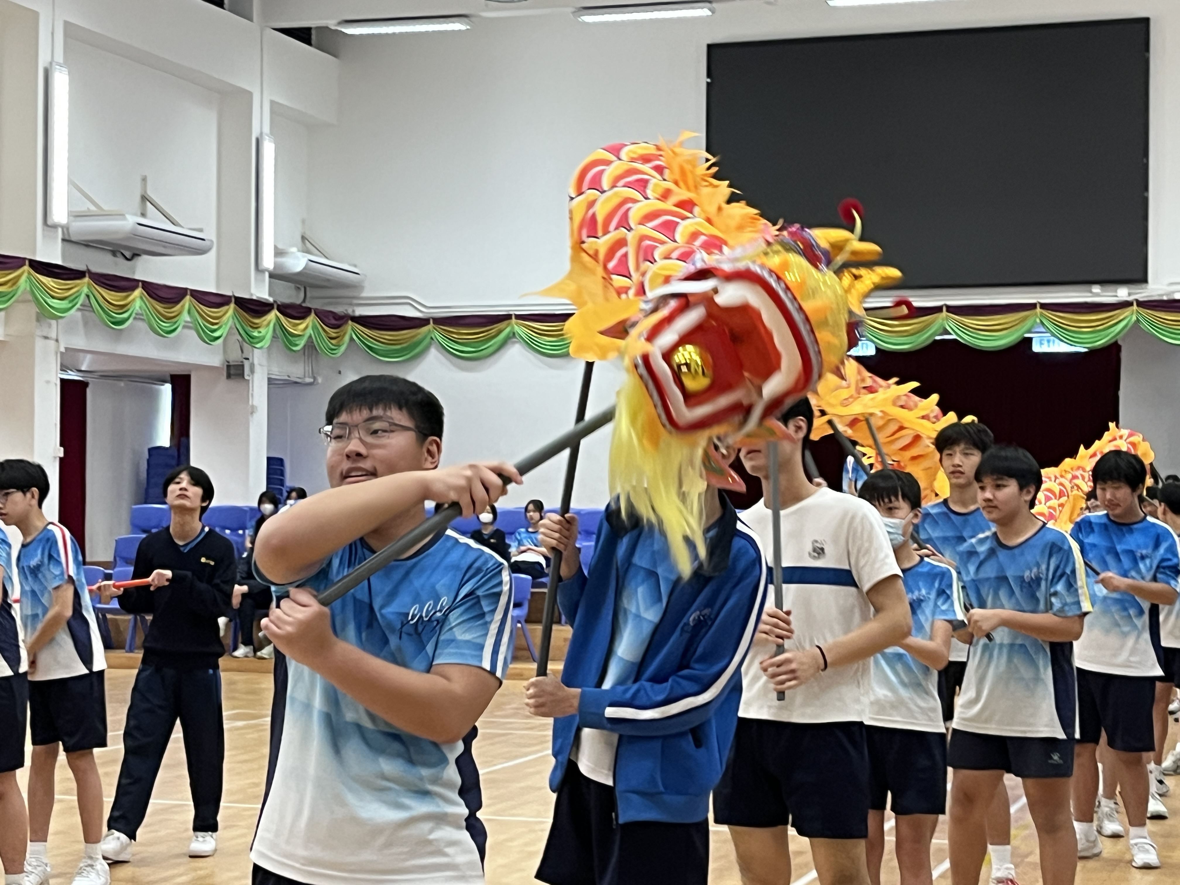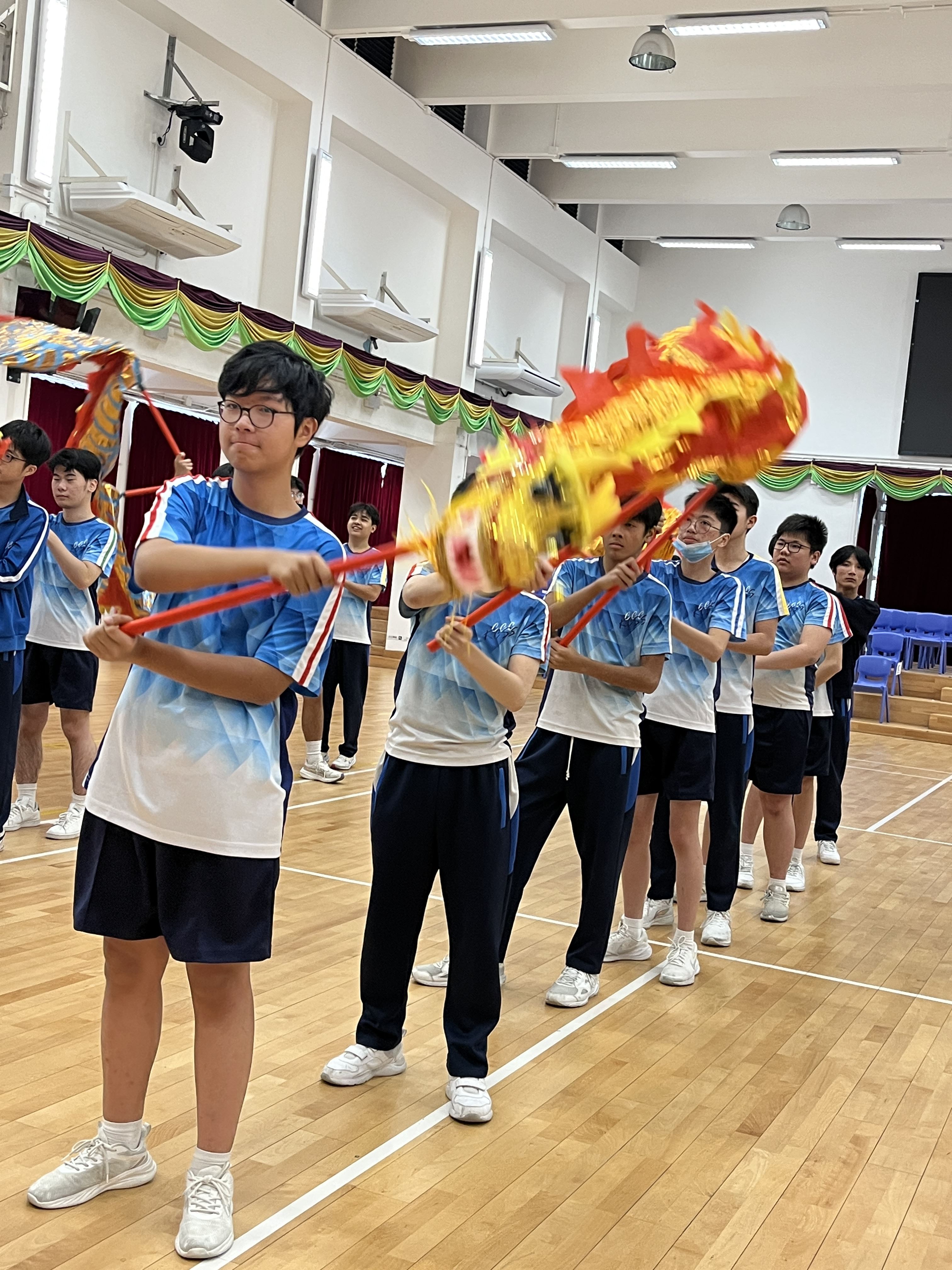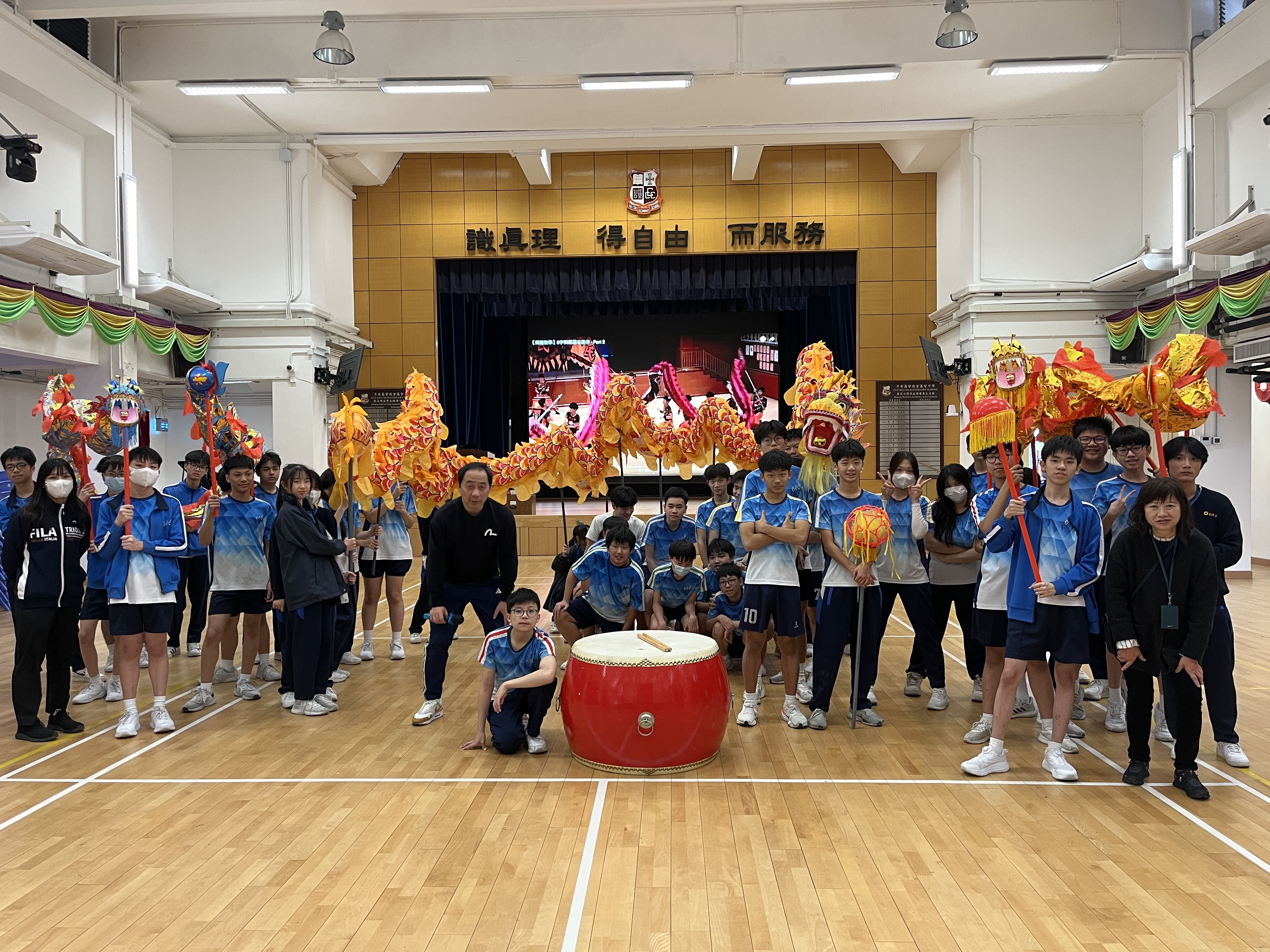 中文科與體育科合辦中華文化日—舞龍課體驗,中三級同學於中文課堂上先認識中國舞龍文化,並於體育課上親身體驗舞龍,同學也非常愉快,龍騰虎躍,師生同迎新春。