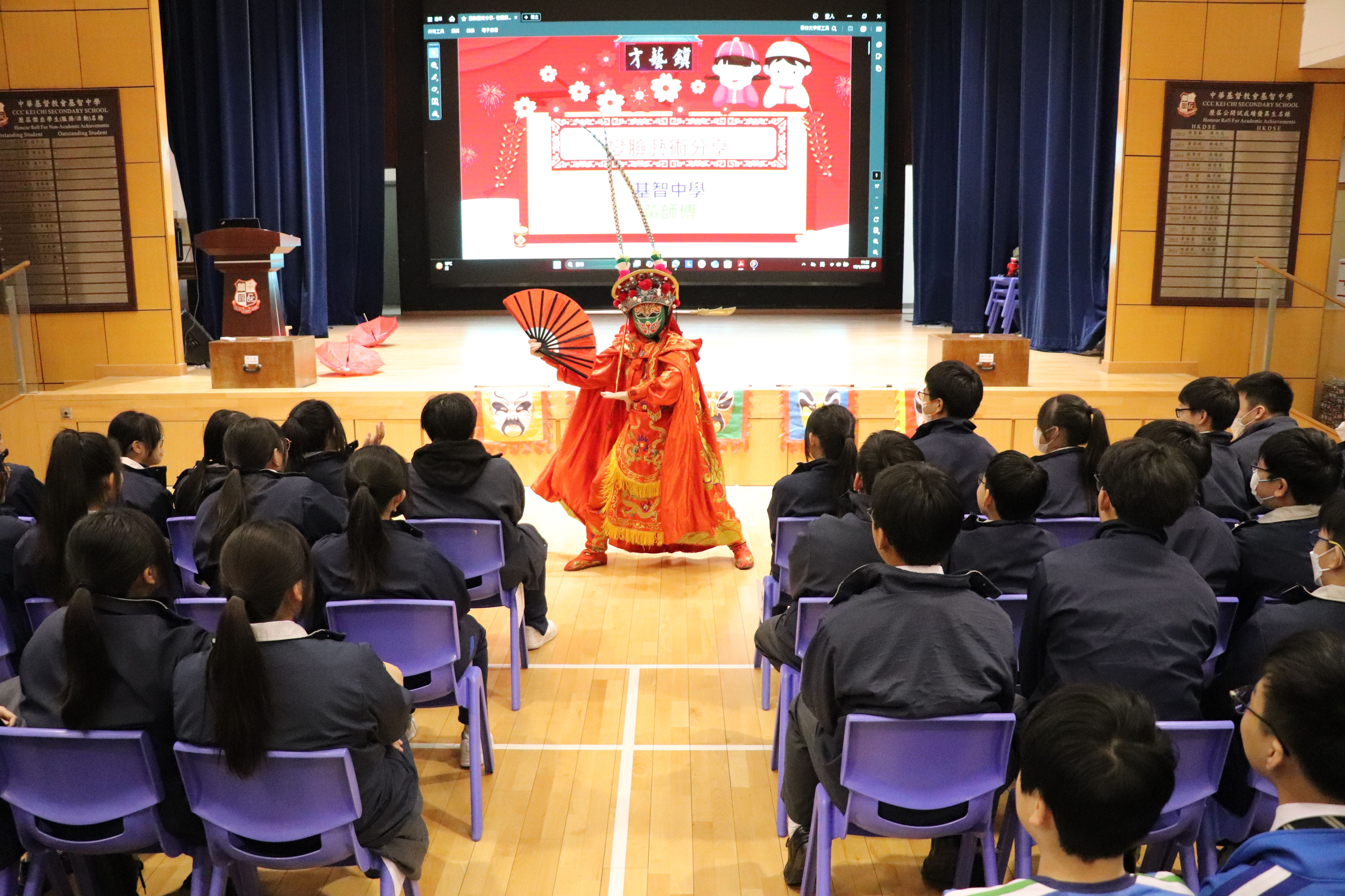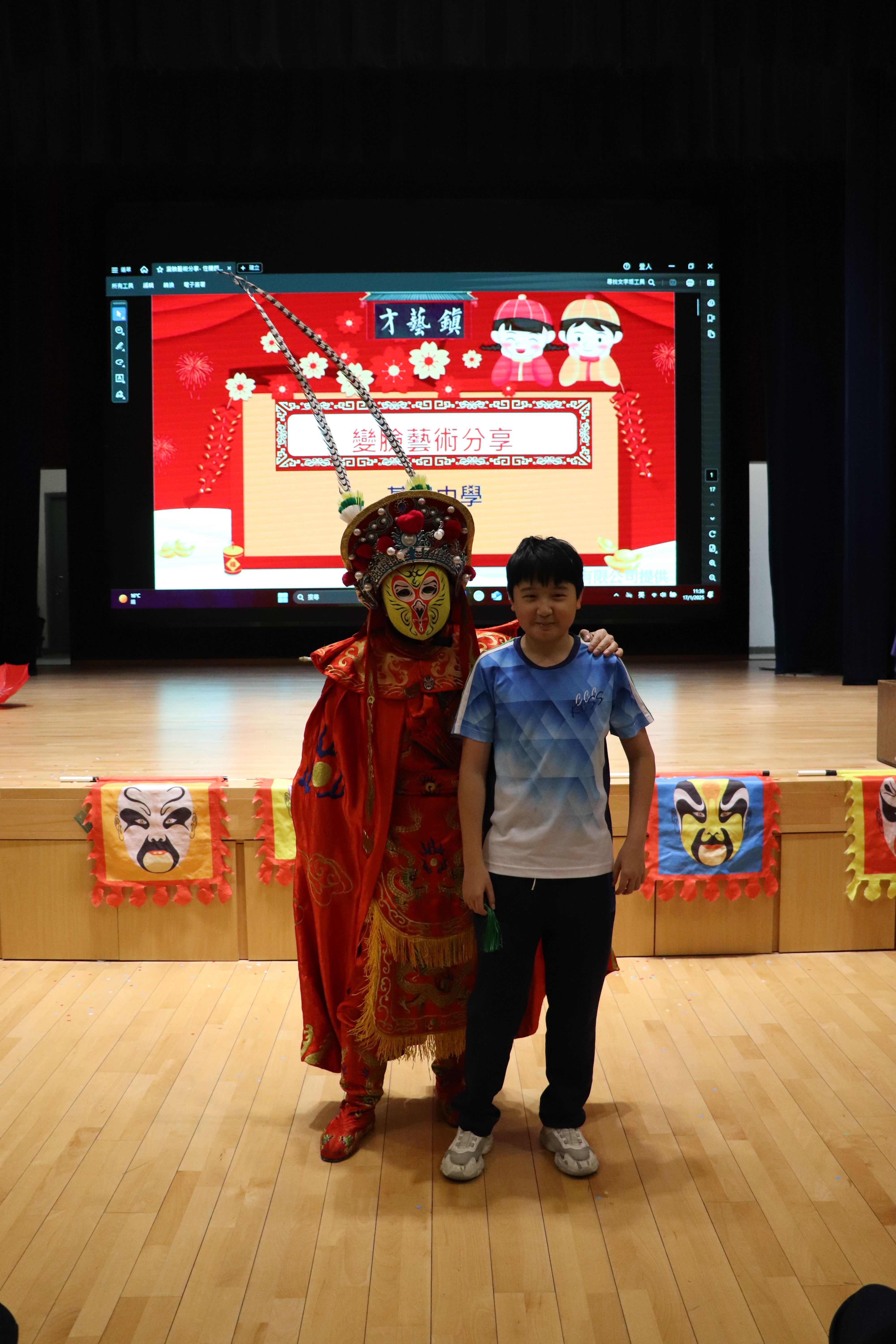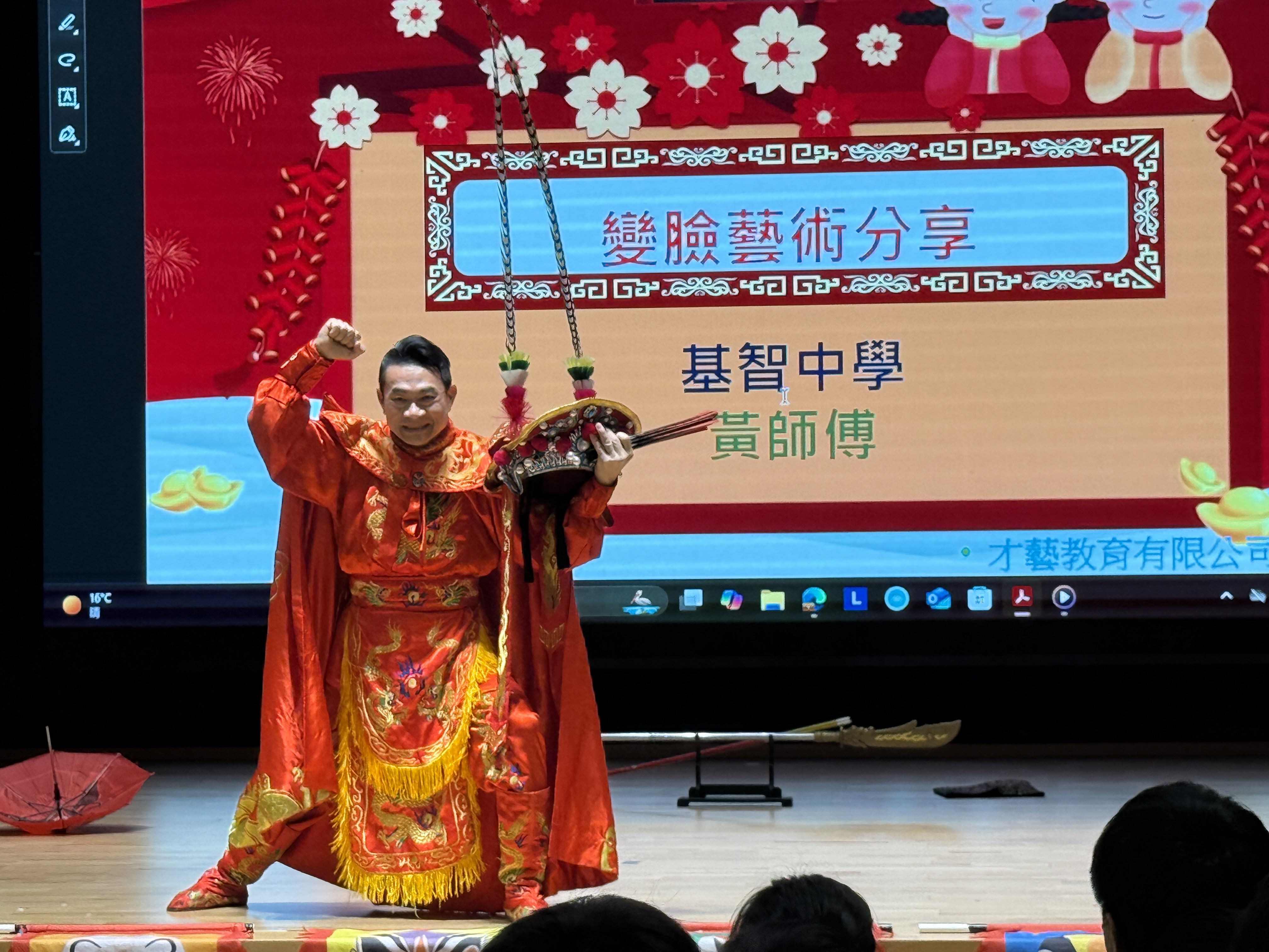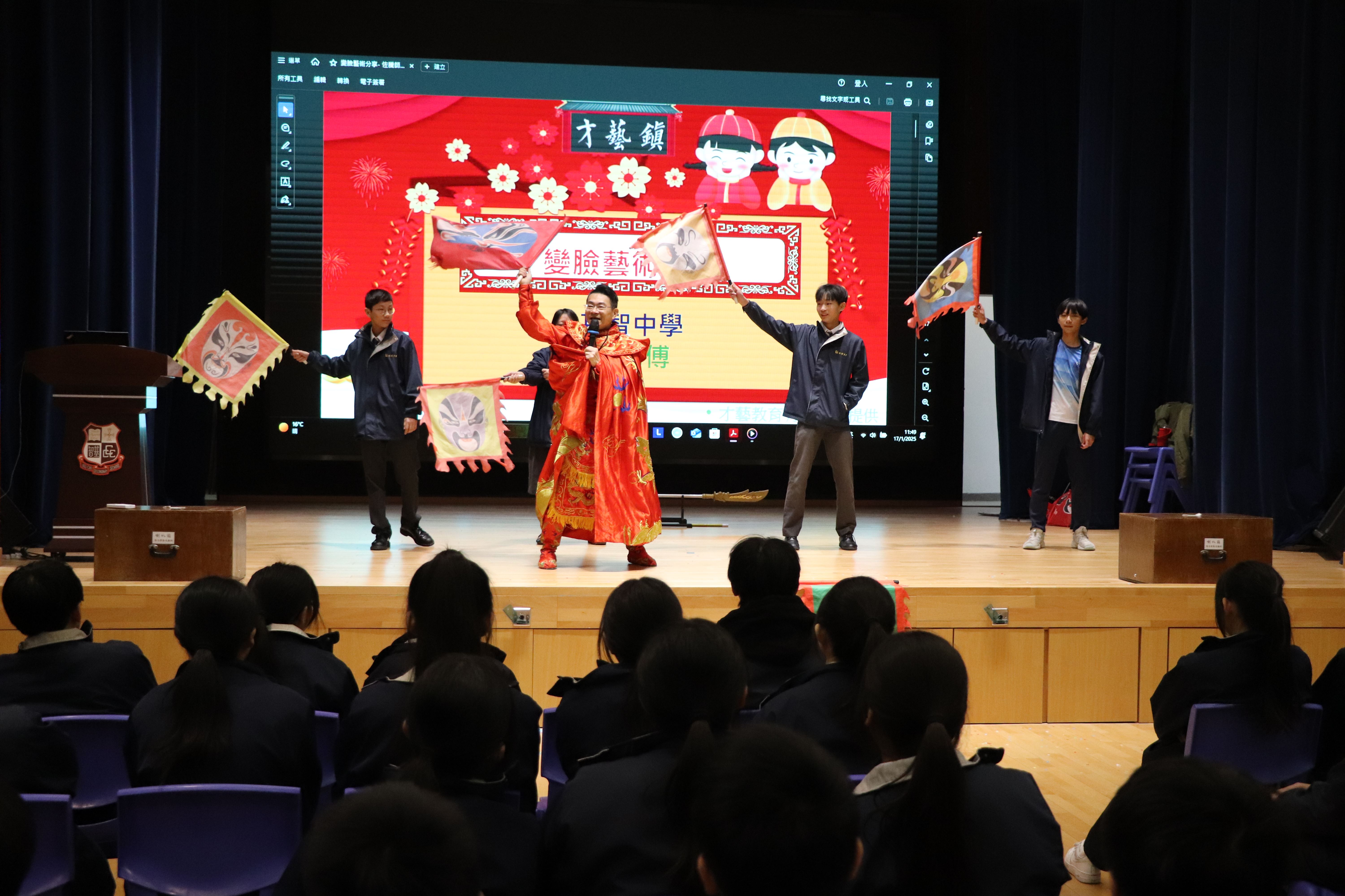 中二級同學於17/1/2025中華文化日欣賞變臉表演,認識傳統川劇變臉文化。同學更有機會上台參與互動。