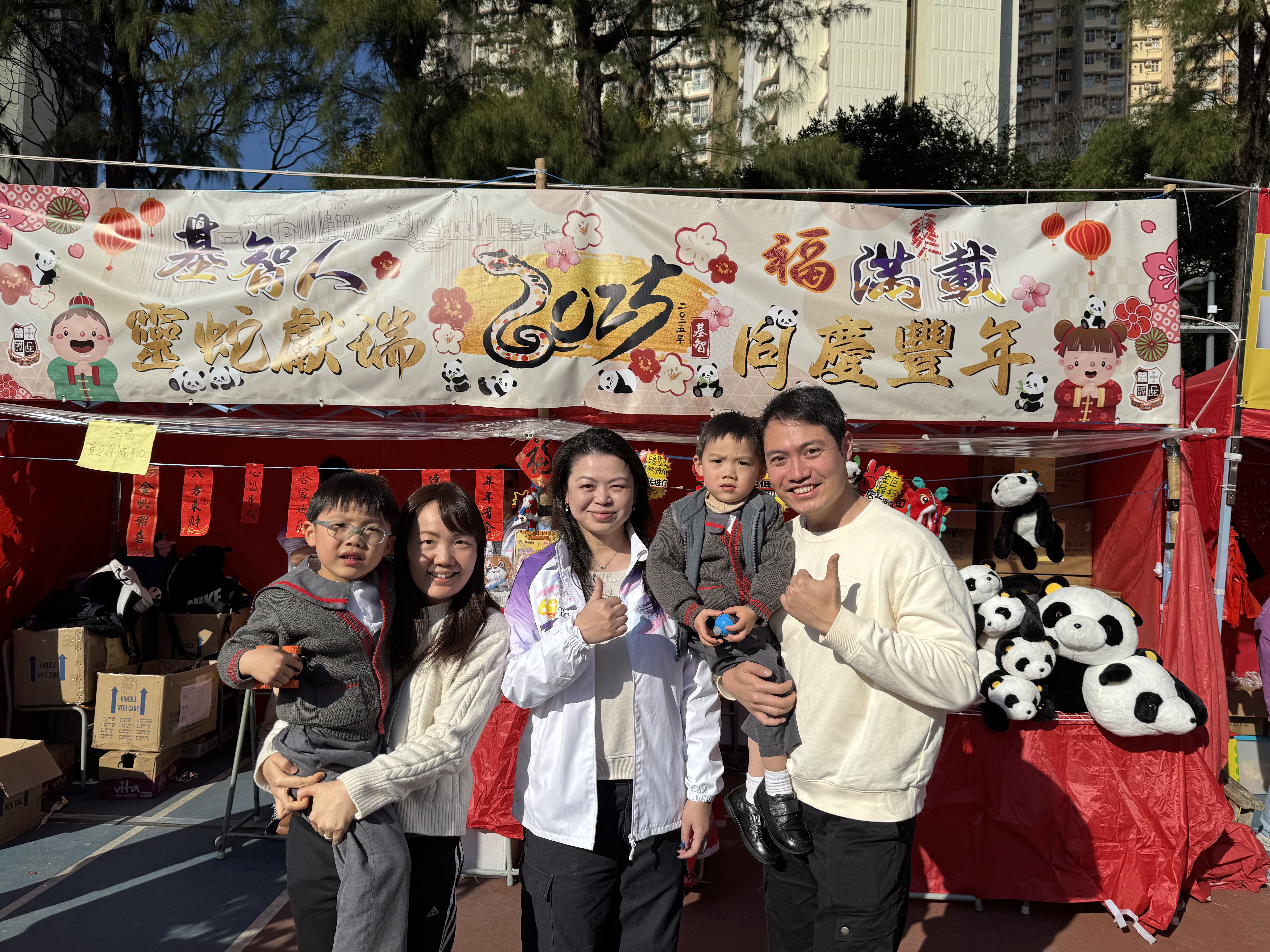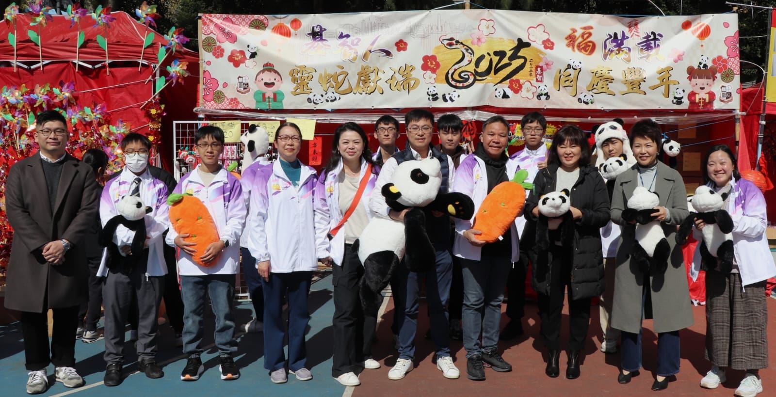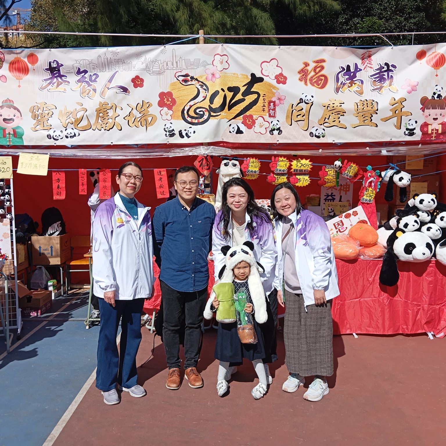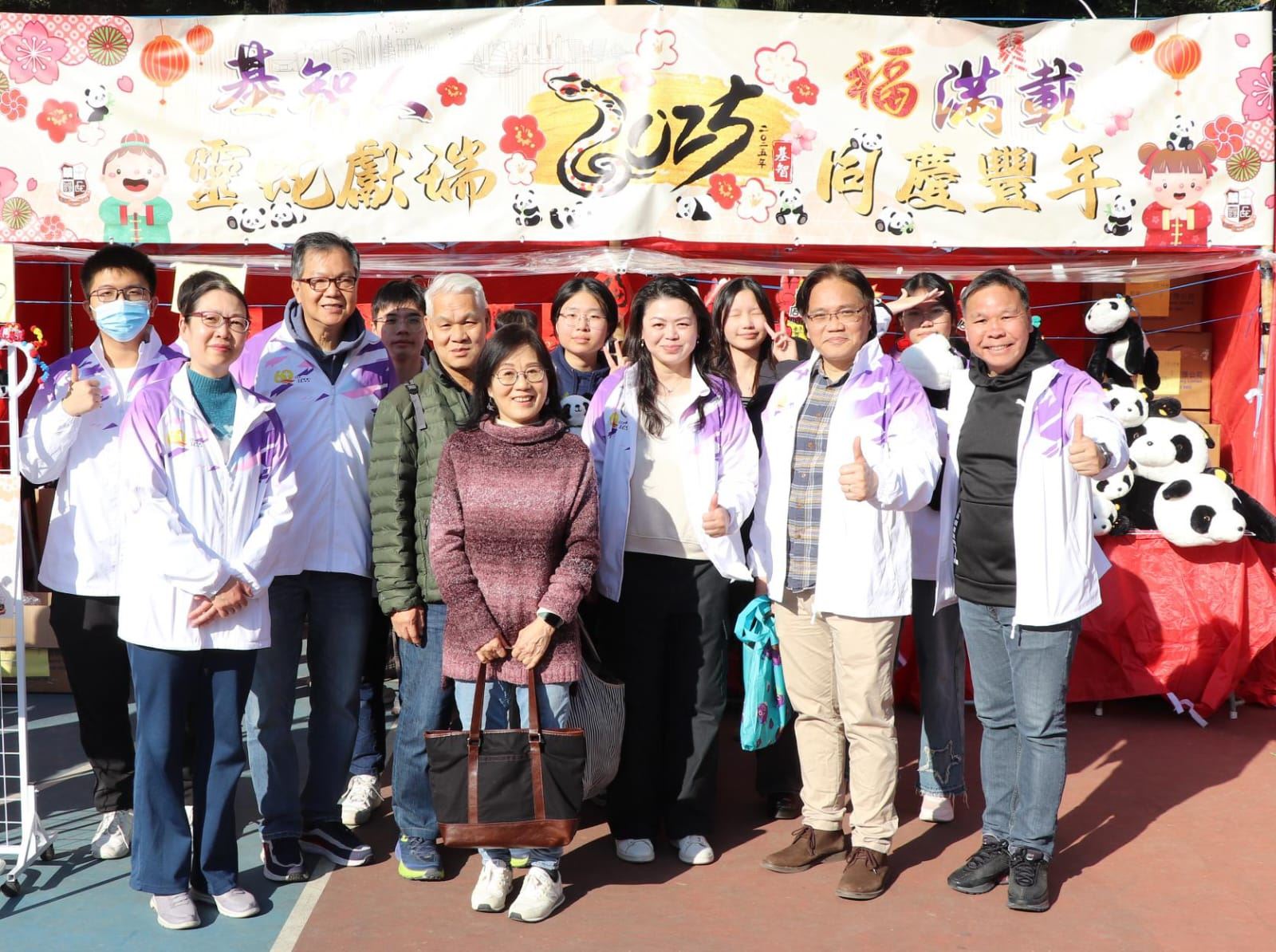 校監盧厚敏博士、校長李淦章博士、校友會主席周克翰博士、家教會主席鄧月嫦女士為我們基智年宵攤位開幕。當日除了一向愛護基智的校友們鼎力支持外,觀塘政務專員何立基太平紳士、立法會顏汶羽議員、食物環境衞生署觀塘區衞生總督察周勁梅女士、一眾觀塘區議員、警務官員等等貴賓亦分別到來遊樂場公園及龍騰墟攤位探訪「熊貓家族」,同慶蛇年。
