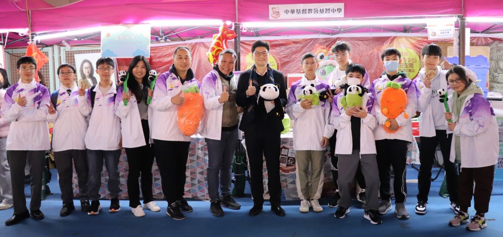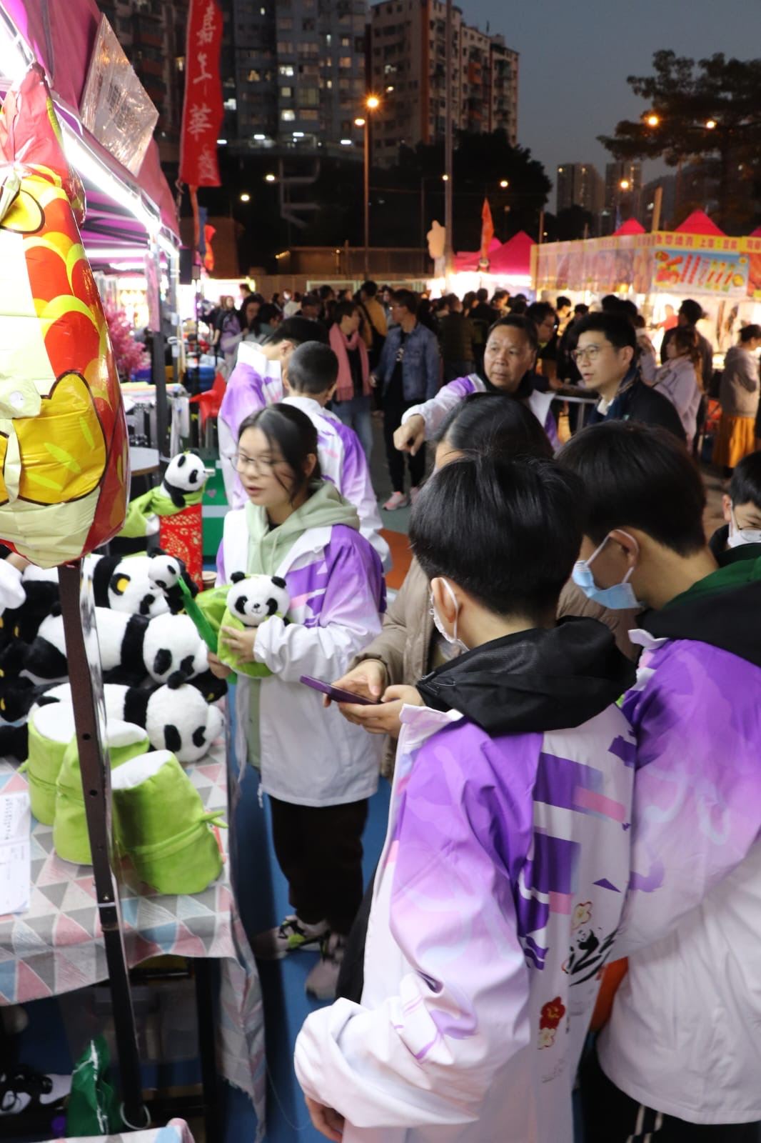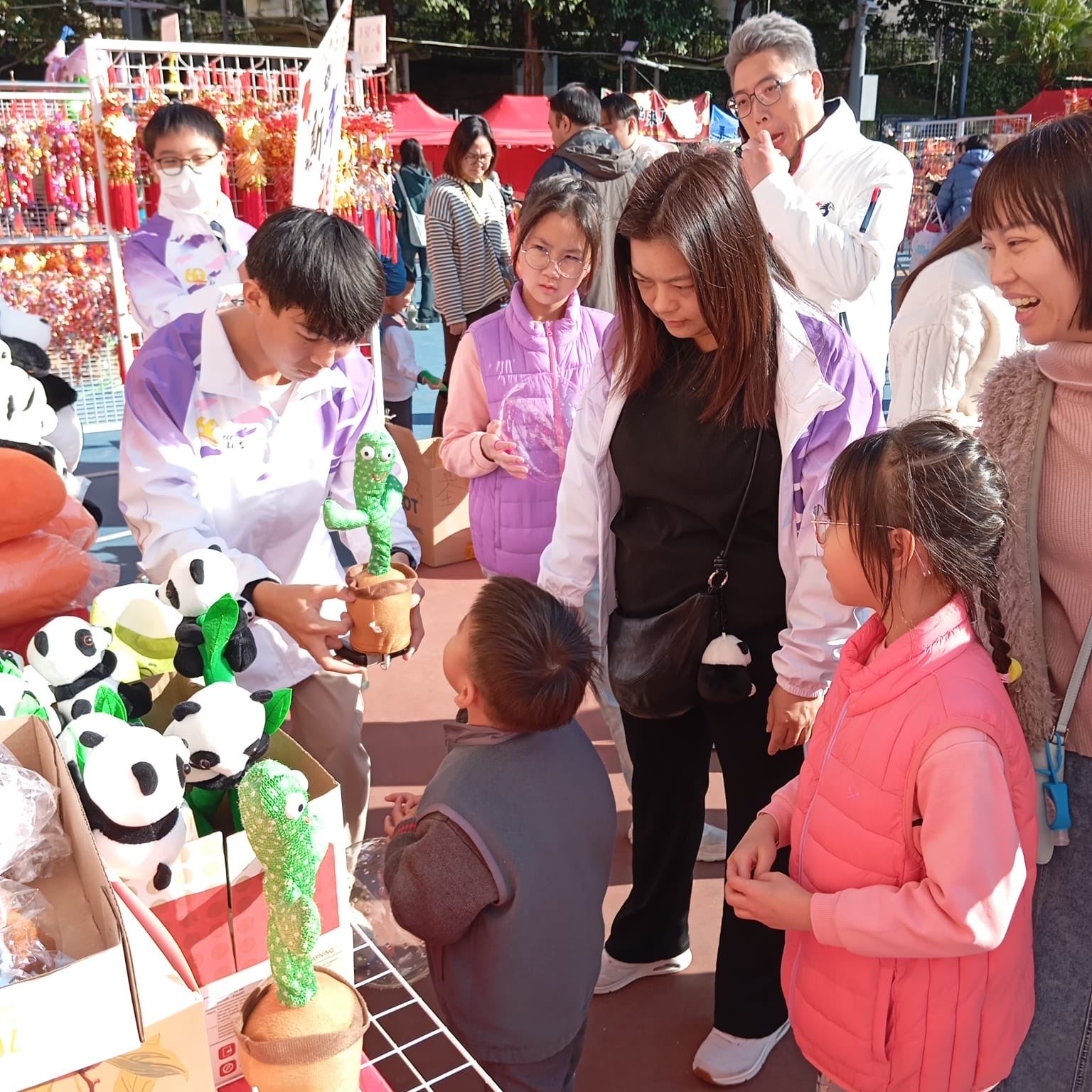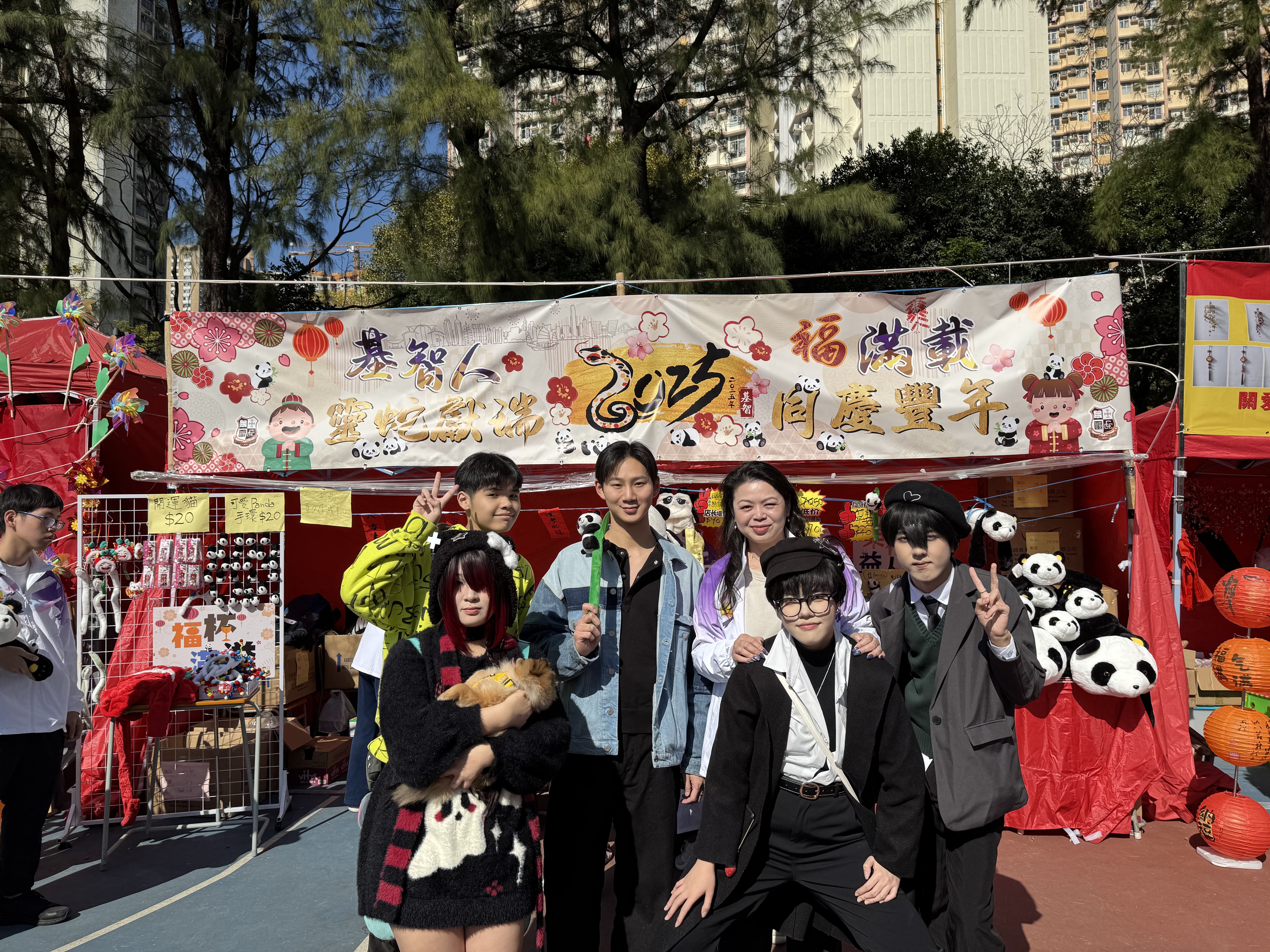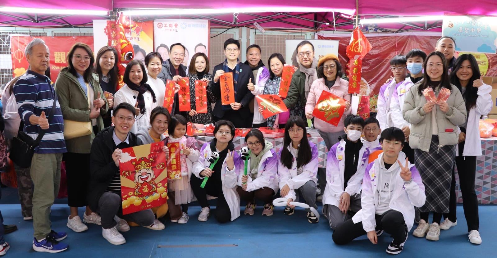校監盧厚敏博士、校長李淦章博士、校友會主席周克翰博士、家教會主席鄧月嫦女士為我們基智年宵攤位開幕。當日除了一向愛護基智的校友們鼎力支持外,觀塘政務專員何立基太平紳士、立法會顏汶羽議員、食物環境衞生署觀塘區衞生總督察周勁梅女士、一眾觀塘區議員、警務官員等等貴賓亦分別到來遊樂場公園及龍騰墟攤位探訪「熊貓家族」,同慶蛇年。