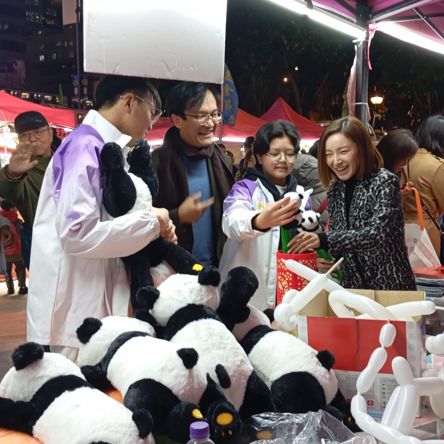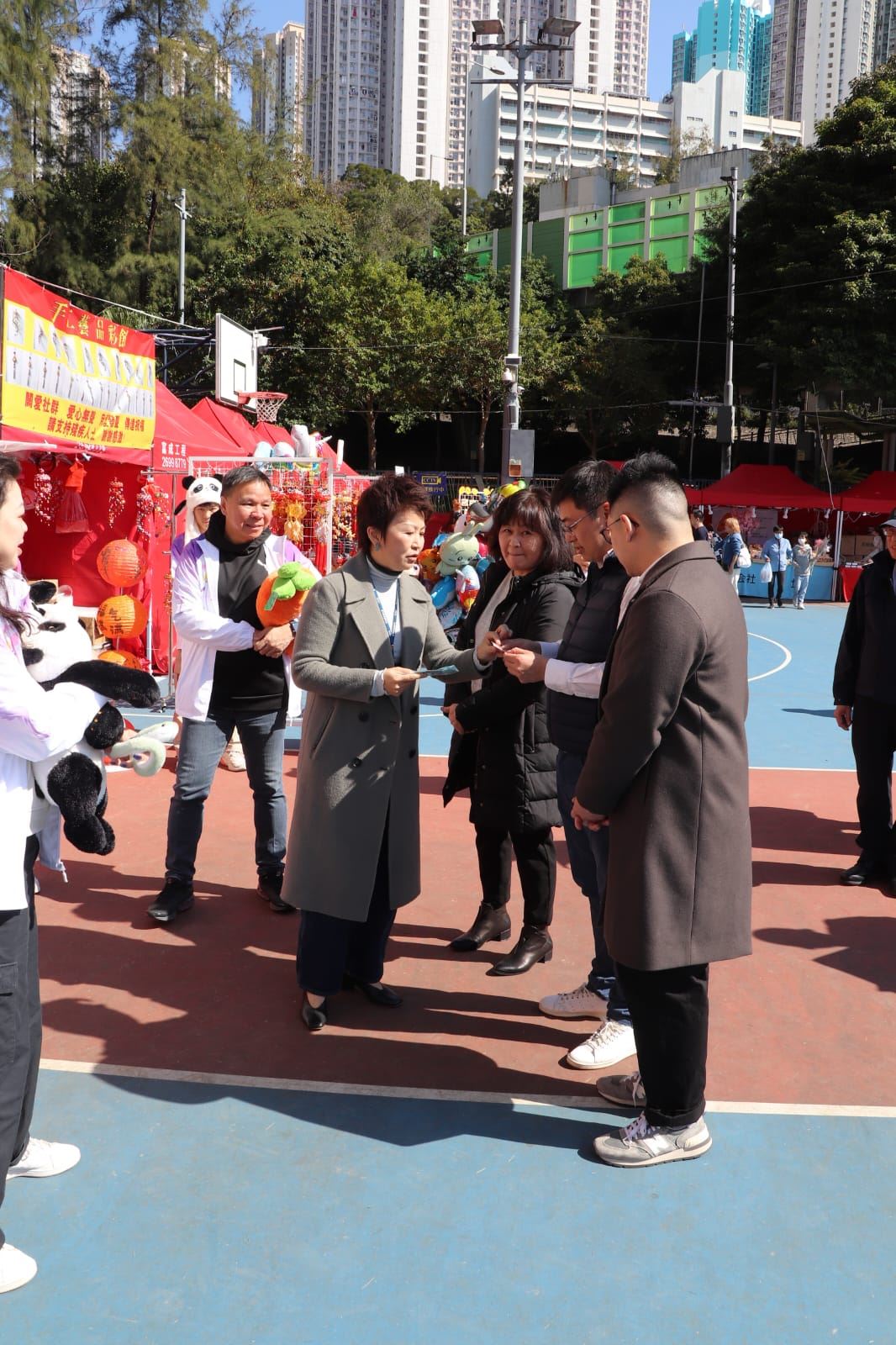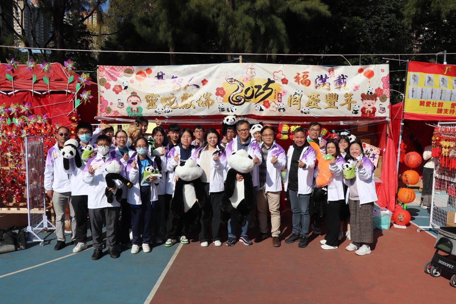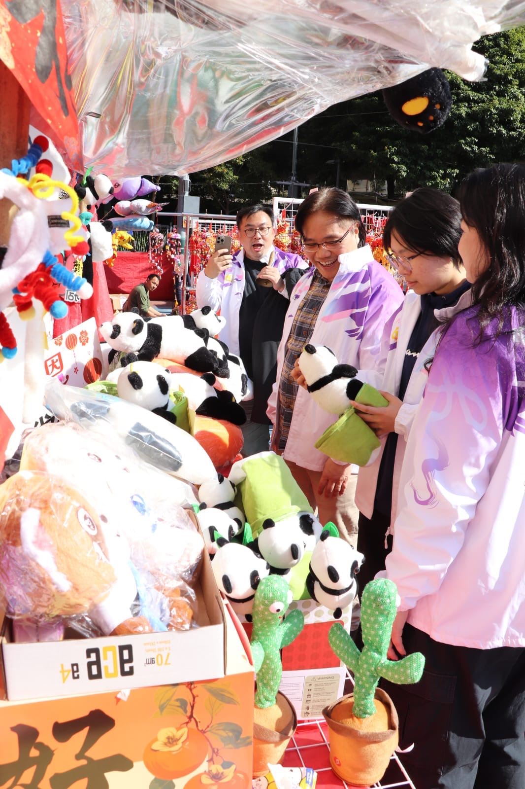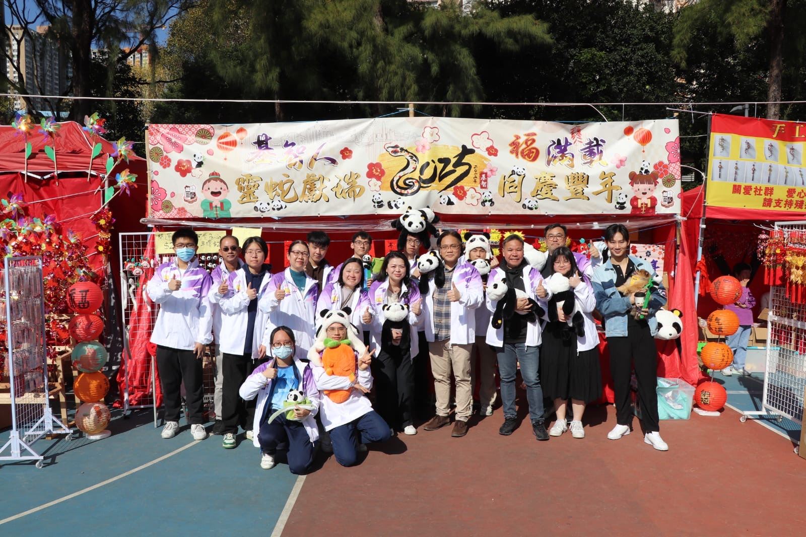 校監盧厚敏博士、校長李淦章博士、校友會主席周克翰博士、家教會主席鄧月嫦女士為我們基智年宵攤位開幕。當日除了一向愛護基智的校友們鼎力支持外,觀塘政務專員何立基太平紳士、立法會顏汶羽議員、食物環境衞生署觀塘區衞生總督察周勁梅女士、一眾觀塘區議員、警務官員等等貴賓亦分別到來遊樂場公園及龍騰墟攤位探訪「熊貓家族」,同慶蛇年。