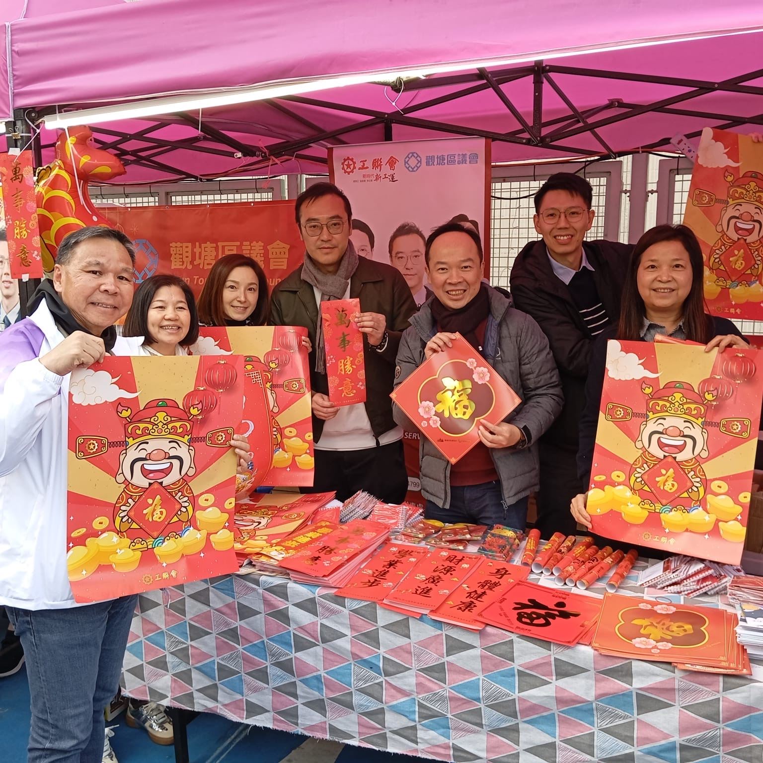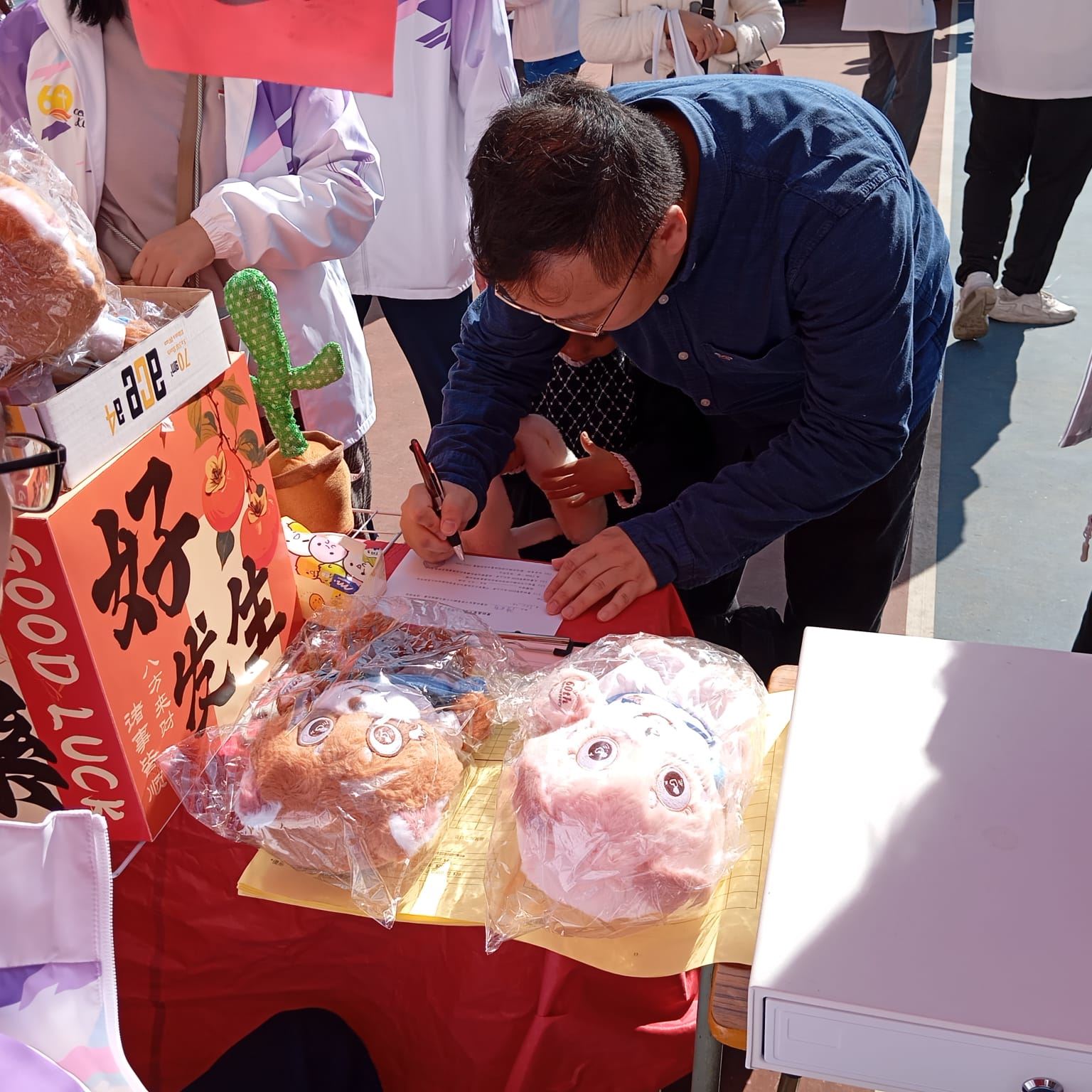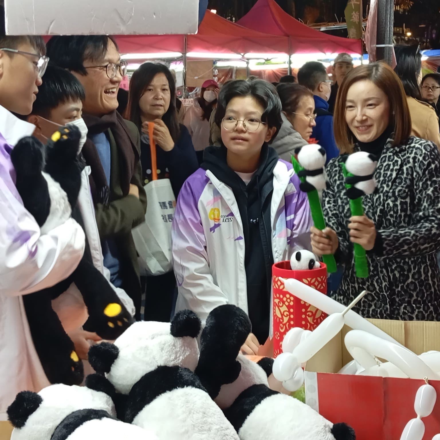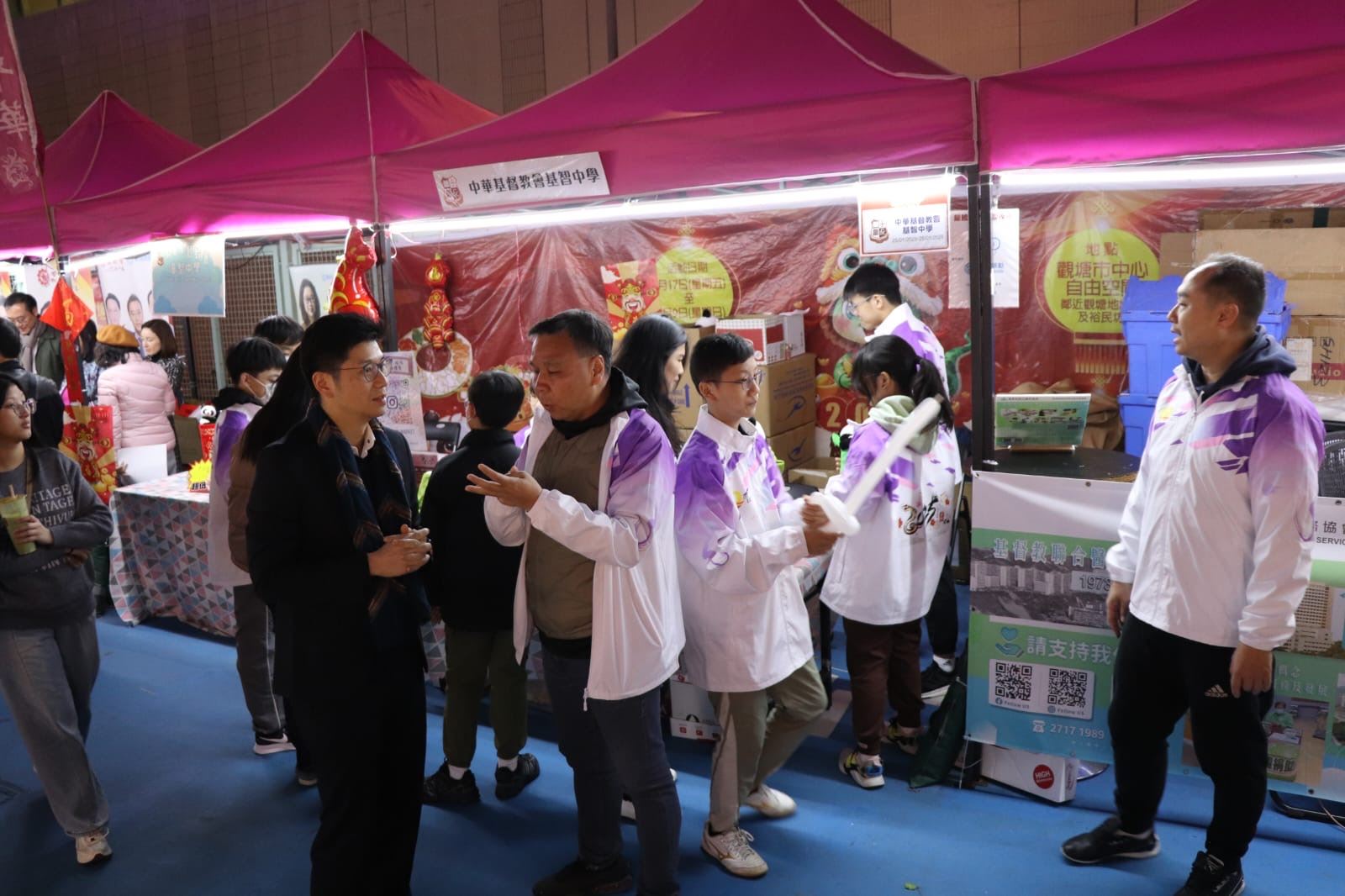 校監盧厚敏博士、校長李淦章博士、校友會主席周克翰博士、家教會主席鄧月嫦女士為我們基智年宵攤位開幕。當日除了一向愛護基智的校友們鼎力支持外,觀塘政務專員何立基太平紳士、立法會顏汶羽議員、食物環境衞生署觀塘區衞生總督察周勁梅女士、一眾觀塘區議員、警務官員等等貴賓亦分別到來遊樂場公園及龍騰墟攤位探訪「熊貓家族」,同慶蛇年。
