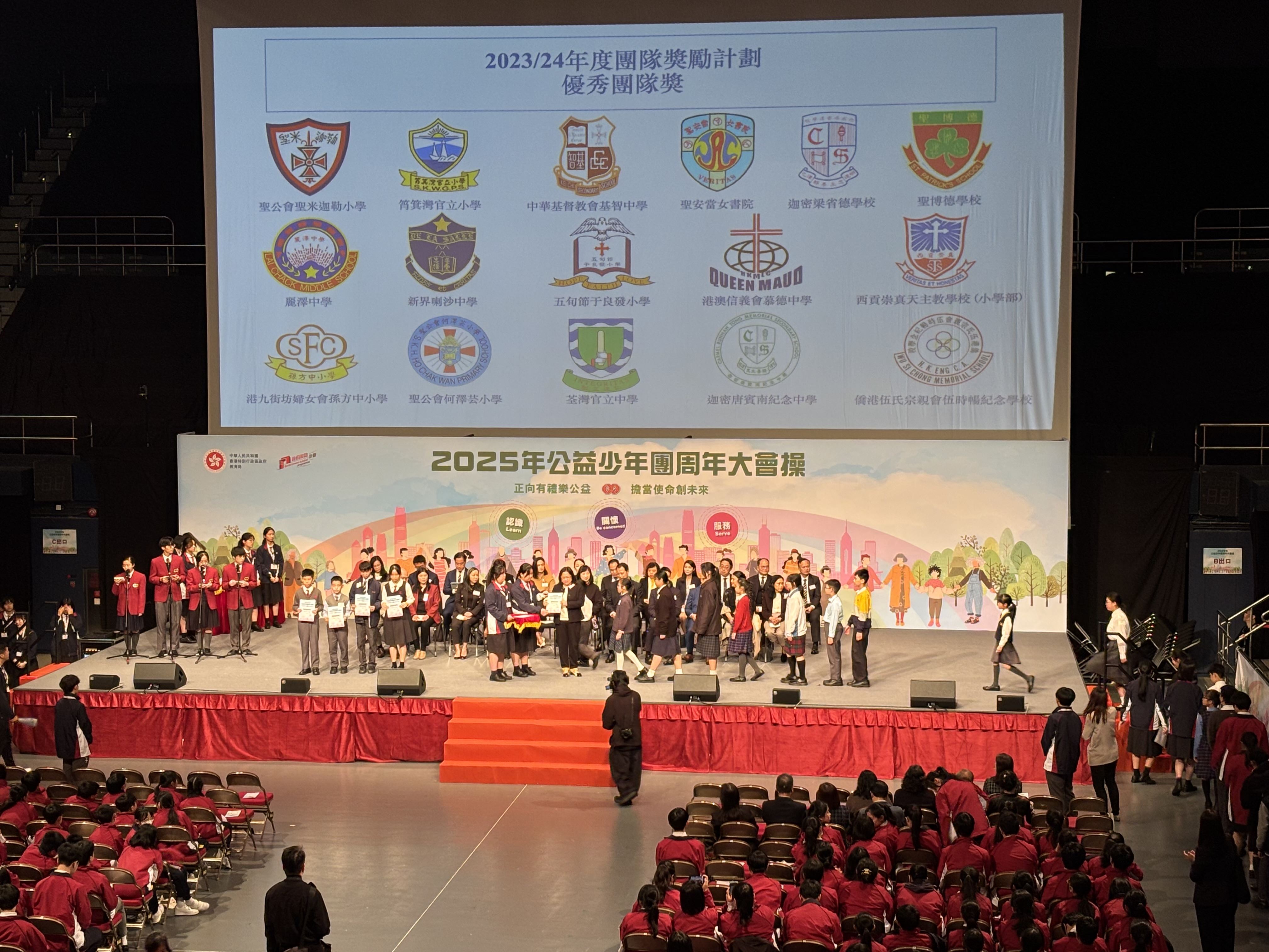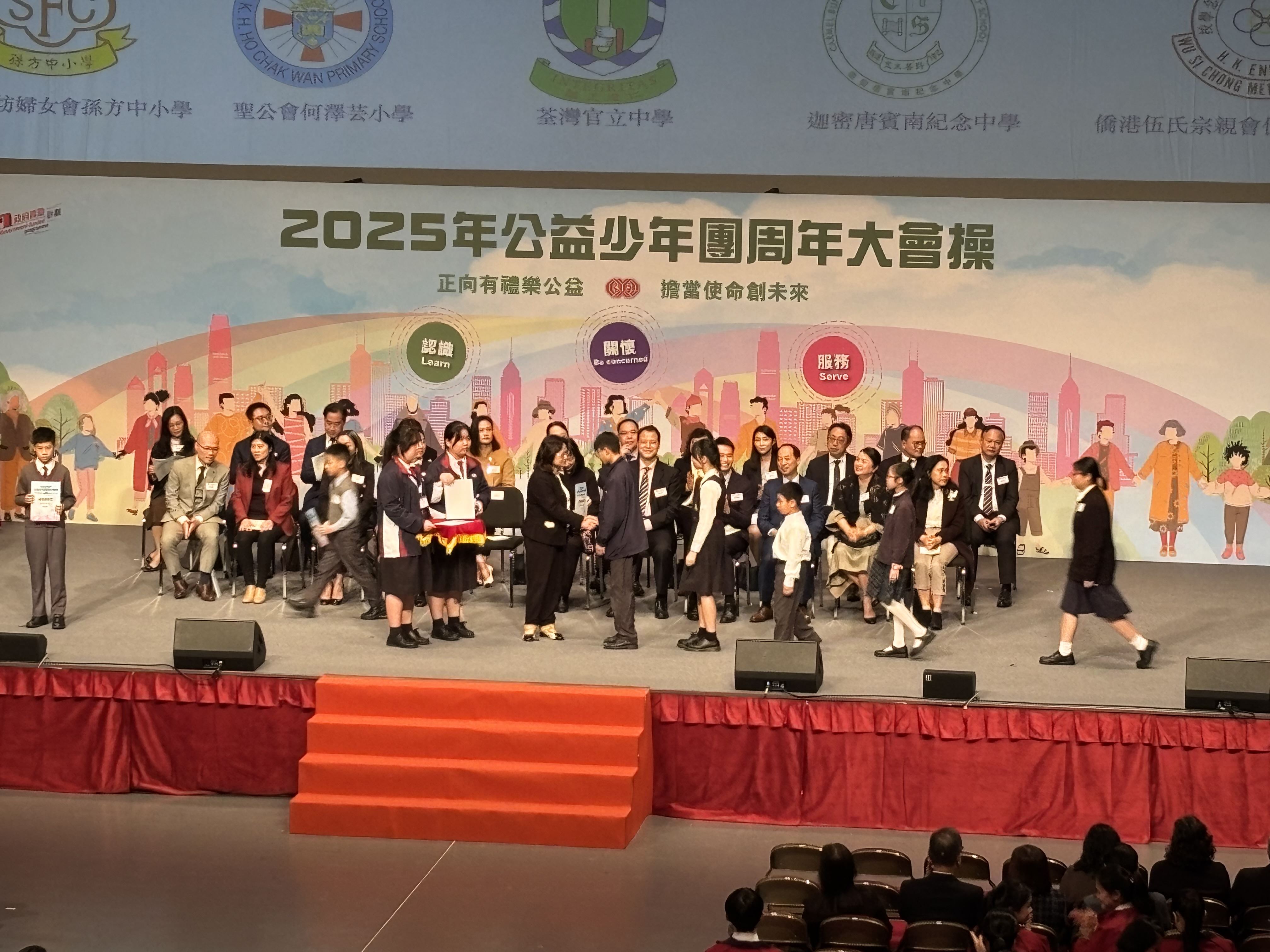 我校公益少年團榮獲2024年度優秀團隊獎,由1C賴羽航同學代表學校於2025年1月23日假灣仔伊利沙伯體育館領獎。