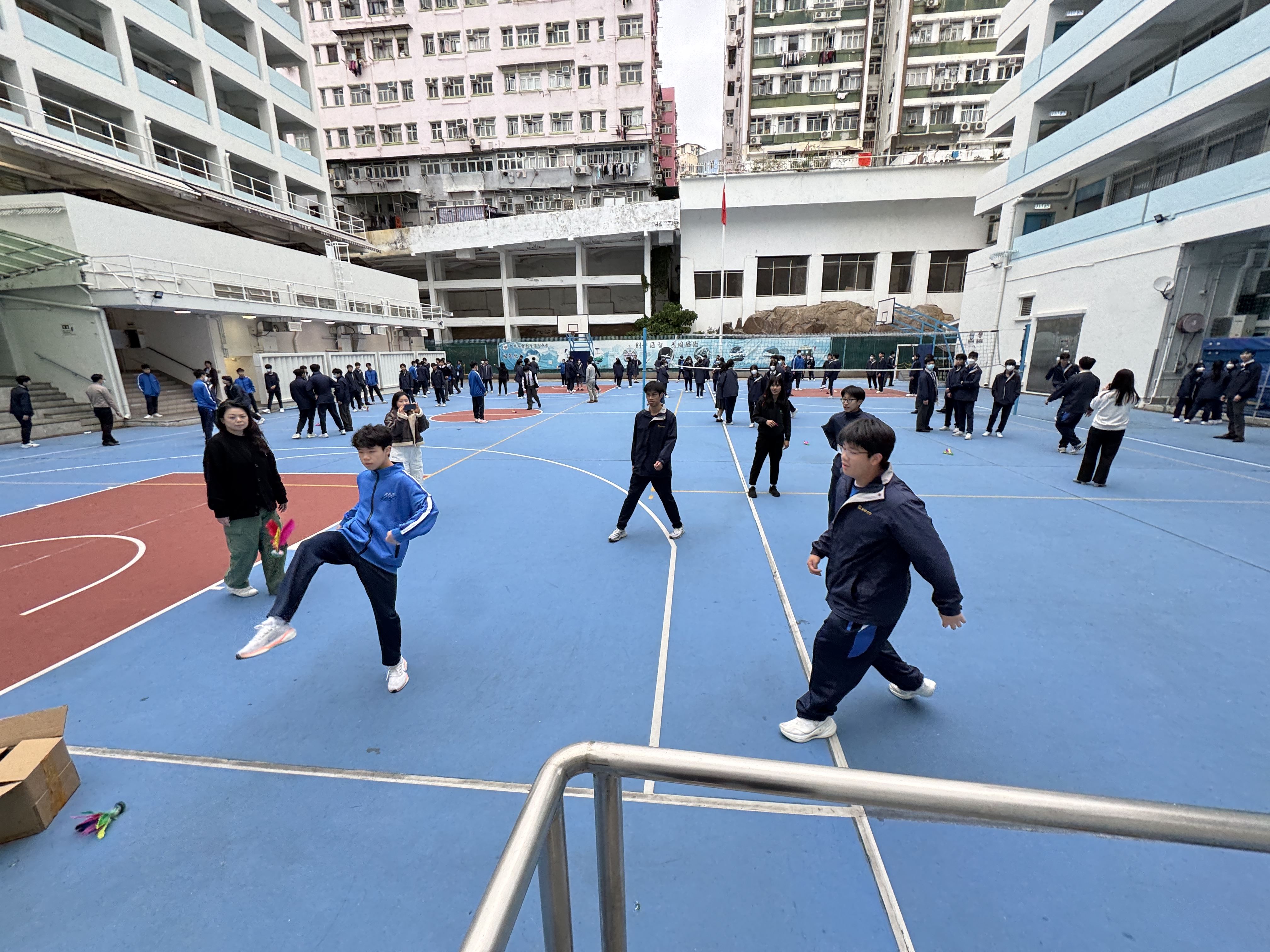 為鼓勵學生多運動,建立健康生活,於2025年2月24日早會向中四級全級同學及老師介紹了這項中國的傳統運動,並一起於於操場踢毽,最後還進行了班際比試,最後由4D班勝出。