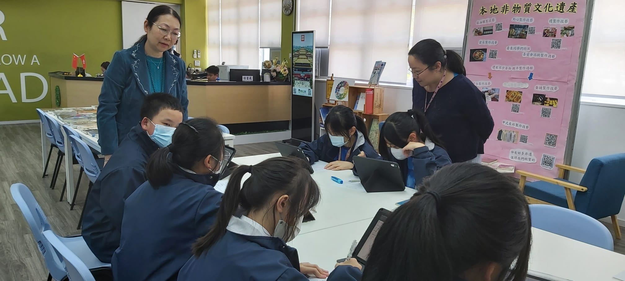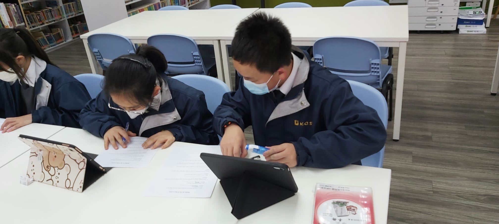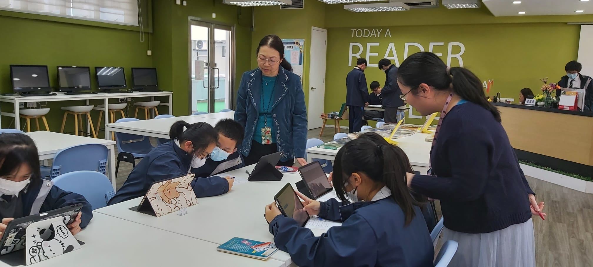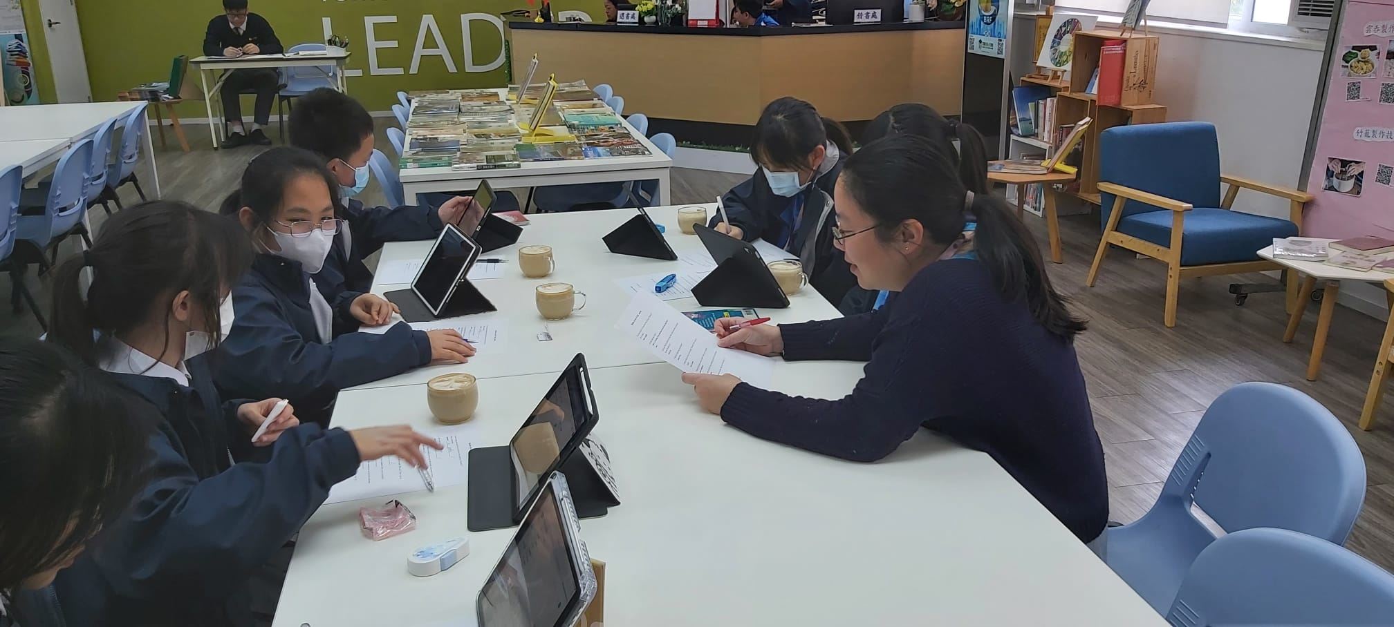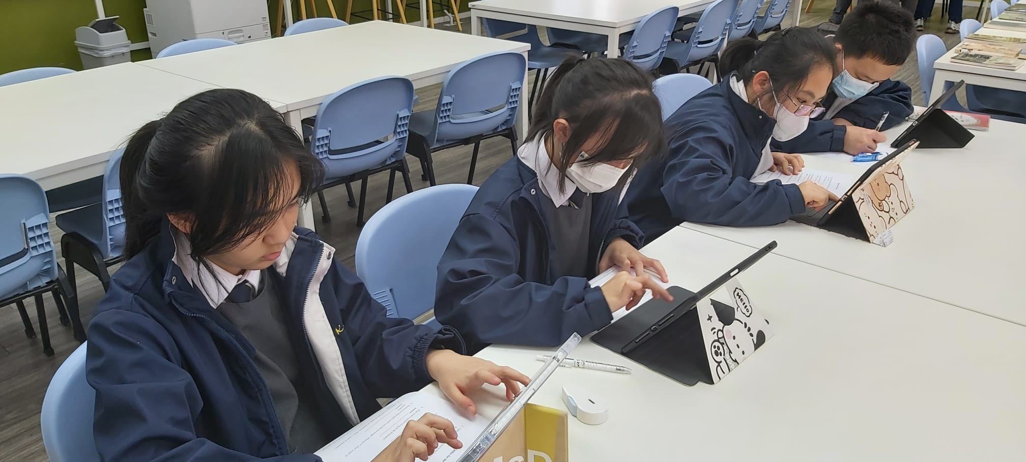 Six Form 1 students engaged in guessing English riddles in Jubilee Learning Resources Centre at lunchtime. This English activity, which focused on guessing English riddles, has enhanced students’ communication and cooperation skills. Students were having fun and could enjoy a cup of coffee at the same time.