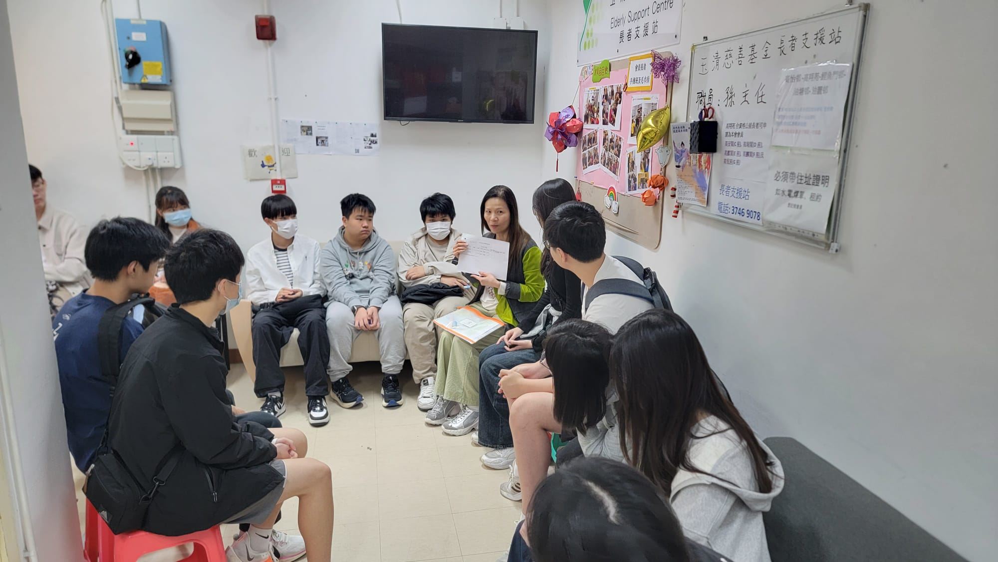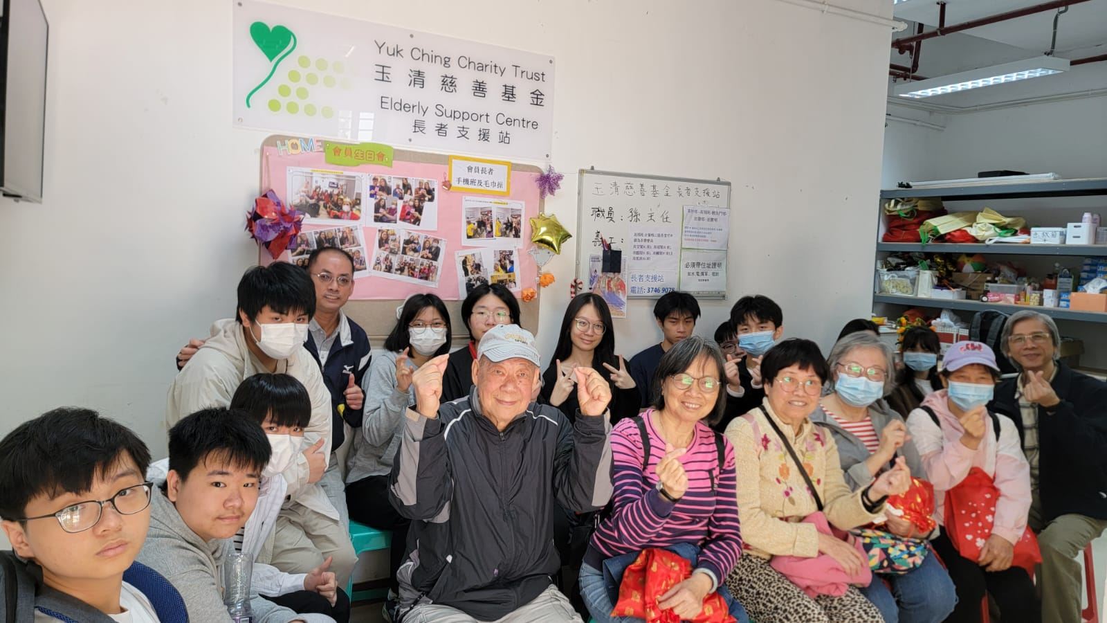 12位4C青年義工領袖到油塘高怡邨玉清慈善基金長者支援站,與長者一起做運動(毛巾操)、教長者使用手機Apps、與長者傾談,最後送上禮物包,學生與長者渡過一個愉快的早上。