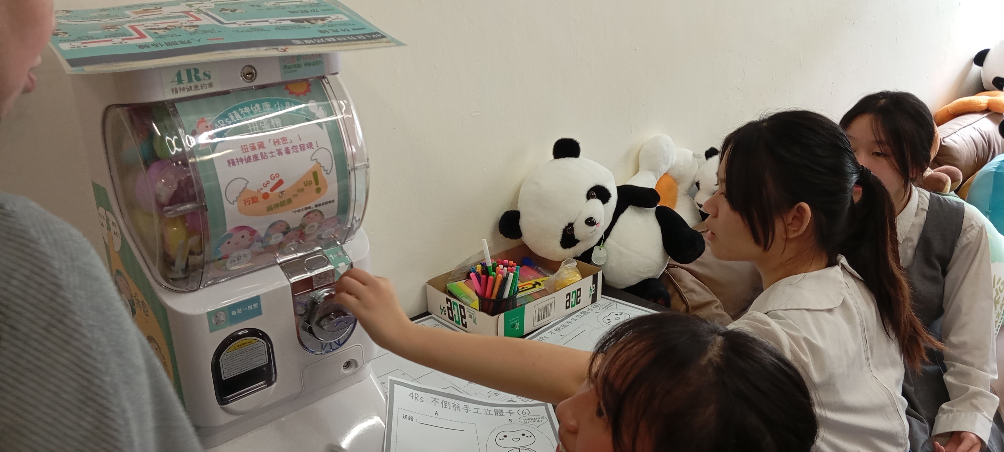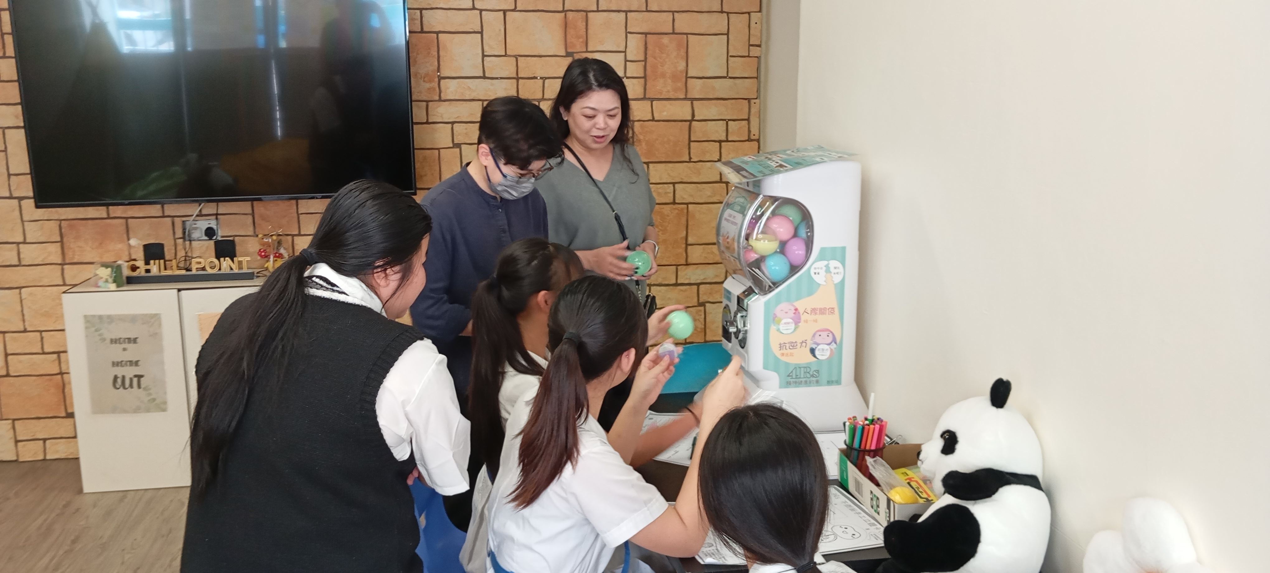 教育局派發的《4Rs精神健康約章》的扭蛋機及抱枕已放置於Chill Point 及擁抱情緒嘉年華中使用,同學紛紛踴躍扭蛋取出禮物。