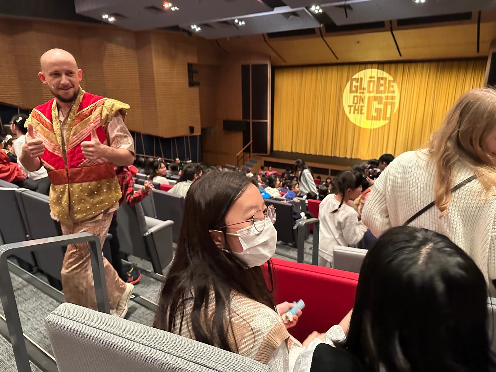 On Sunday, 30 March, 2025, our NET took a group of keen S3 and S5 students to watch a professional drama performance of Shakespeare's "Twelfth Night" presented by "Globe on the Go". This is the finale of ShakeFest 2025 - a week-long celebration of Shakespeare's works hosted by the organization "Shakespeare4All". The students first listened to professionals in the drama industry share their invaluable insight and experience regarding acting, and subsequently watched a hilarious drama production of "Twelfth Night". It was really eye-opening for our students to visit the theatre and watch an entire shakespeare show in English!