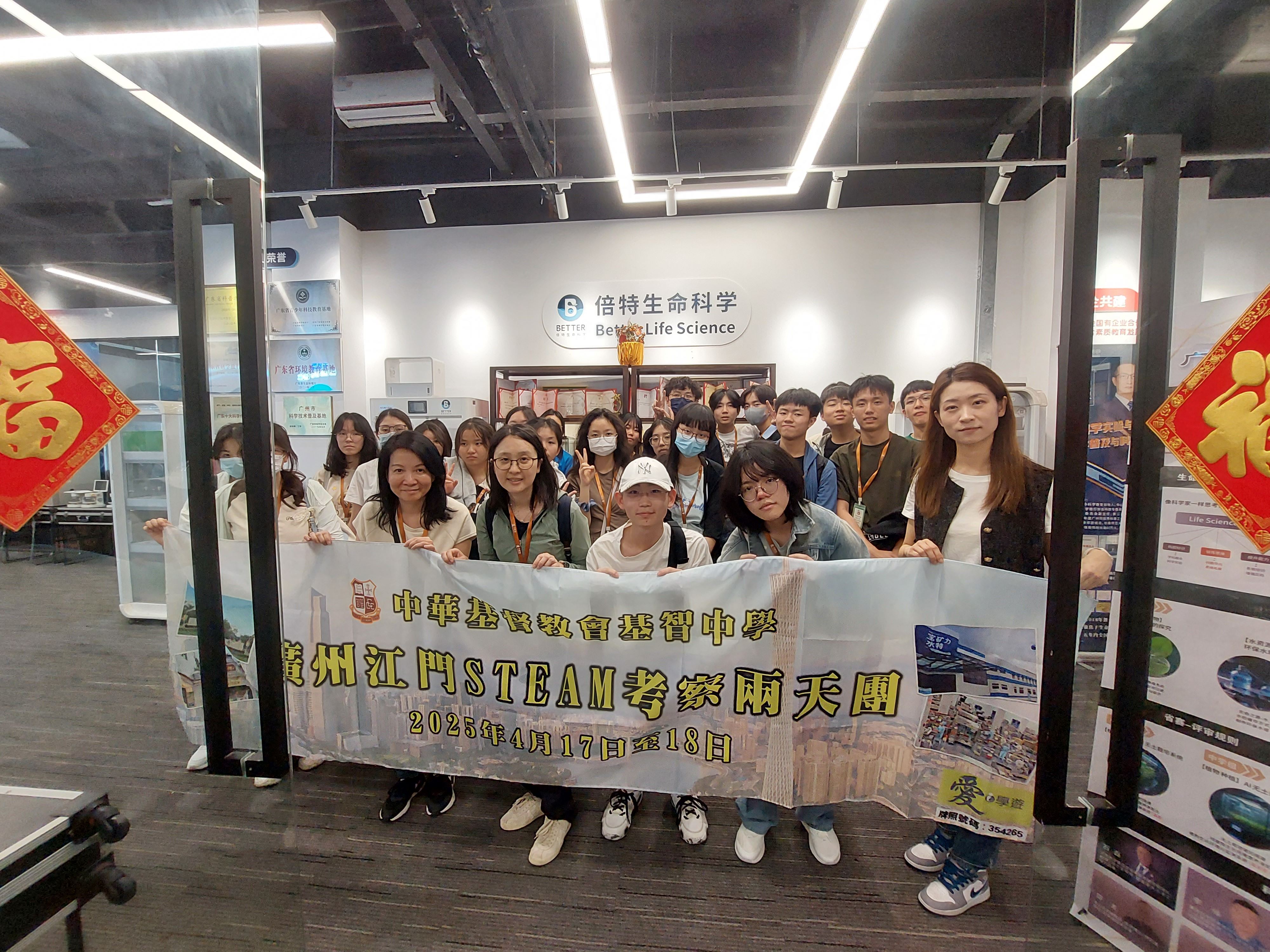 26位中四中五修讀生物、化學科同學於17/4–18/4的廣州、江門STEAM探索之旅中,到訪了「倍特生命科學科普基地」學習傳染病藥物開發對國家安全的重要性、科學家對藥物研究的堅毅精神;「廣州中醫藥大學」了解在內地升讀與科學相關科目的要求及中醫藥的發展歷史;「永慶坊」感受廣州文化的保育方法;「李錦記醬料包裝廠」學習分析化學在食品工業的應用及領會家族發展的企業家精神;「寶礦力水特工廠」認識運動飲品對水份平衡的重要性及食品工業如何避免產品受微生物污染。同學均十分投入這一次學習之旅,感受到科學科技知識如何應用到各種工業中,得到寶貴的學習經歷。
