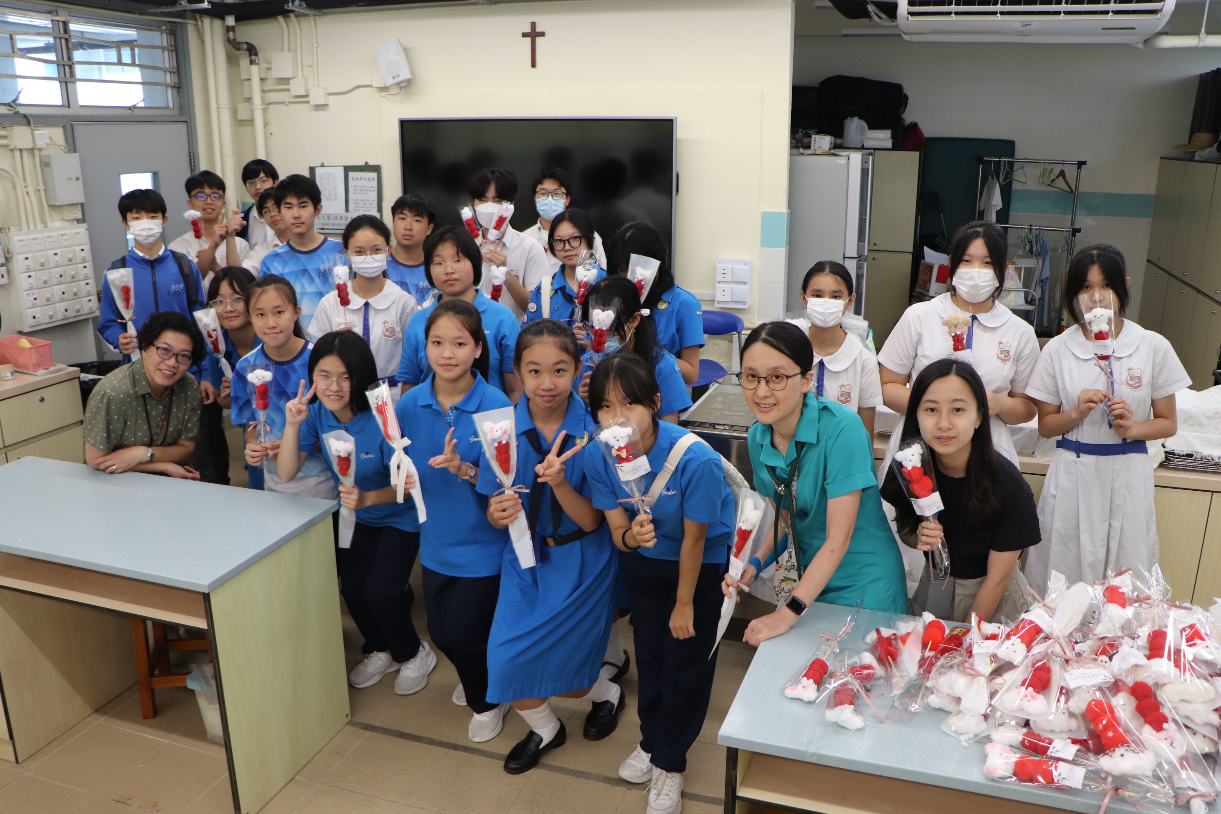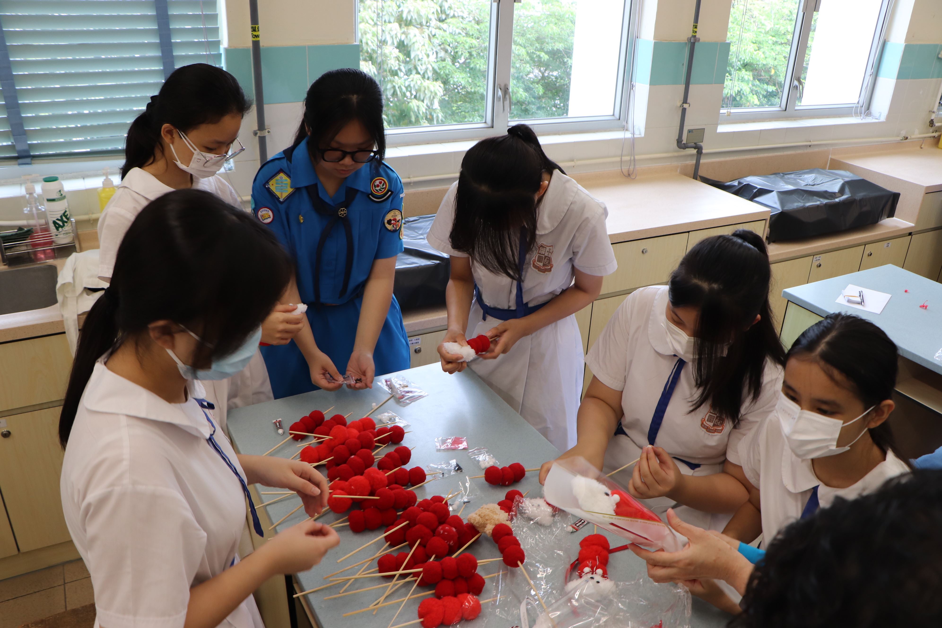 基督精兵聯同女童軍和家政科於26/6安排同學製作小手工, 當中同學學習制作冰糖葫蘆公仔,為老師送上祝福。同學亦學習了製作果撻,完成後帶回家與家人分享。