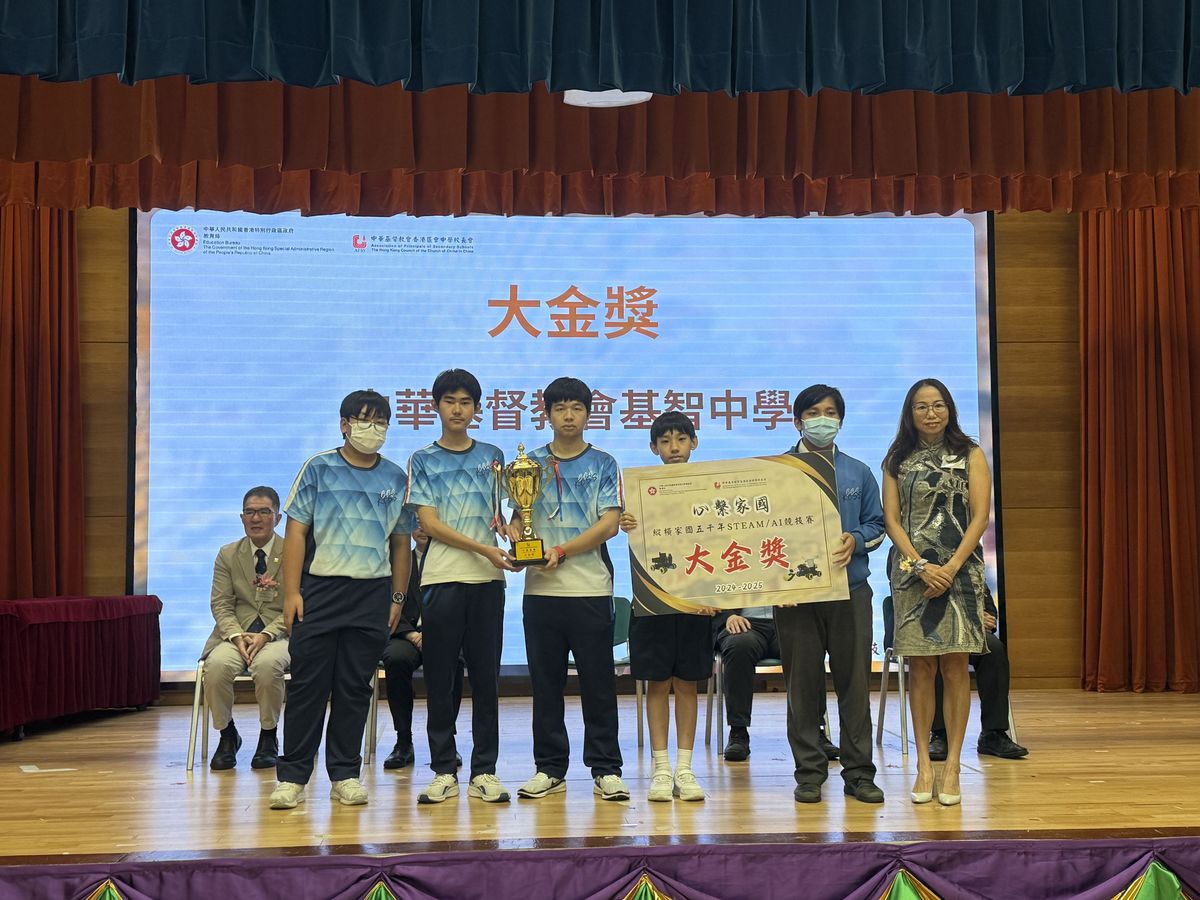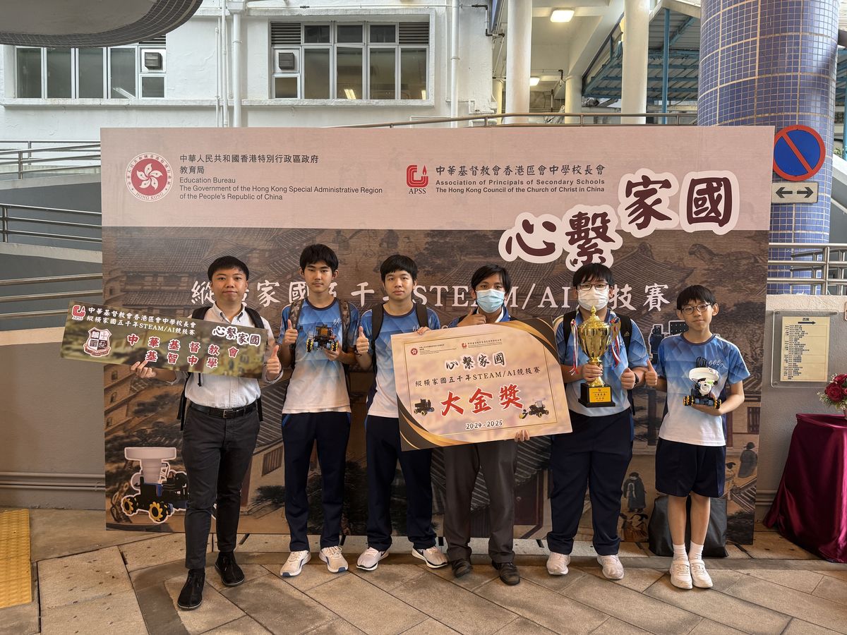 28/6/2025本校學生在「心繫家國:縱橫家國五千年STEAM/AI競技賽」中表現卓越,成功從30隊參賽隊伍中脫穎而出,獲得大金獎。 比賽由中華基督教會香港區會中學校長會主辦,以STEAM教育為核心,透過編程、機械設計、AI視覺識別等技術,將中華歷史、地理、建築、商業和發展等知識轉化為實踐任務,讓學生在過程中感受中華文化的魅力,用科技傳承家國情懷! 在比賽過程中,本校學生展現了優秀的STEAM技能和出色的臨場應變能力。恭喜所有獲獎的同學。