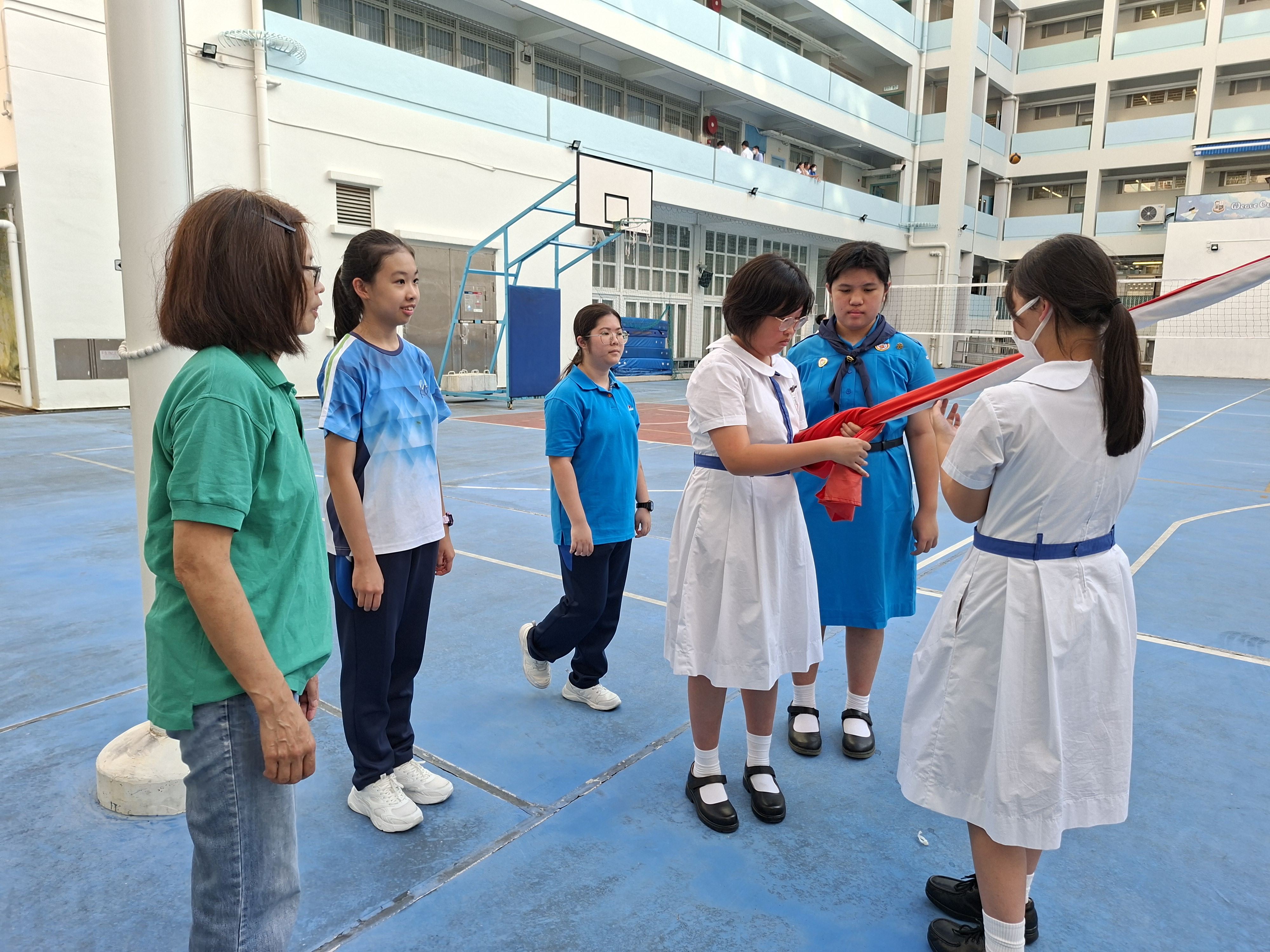 本校女童軍於22/9/2025 及17/10/2025 邀請步操與儀式指導員譚美玉總監,與女童軍進行進階的中式升旗練習,改進同學的升旗技能。 同學均十分留心譚女士的講解和示範,認真練習。