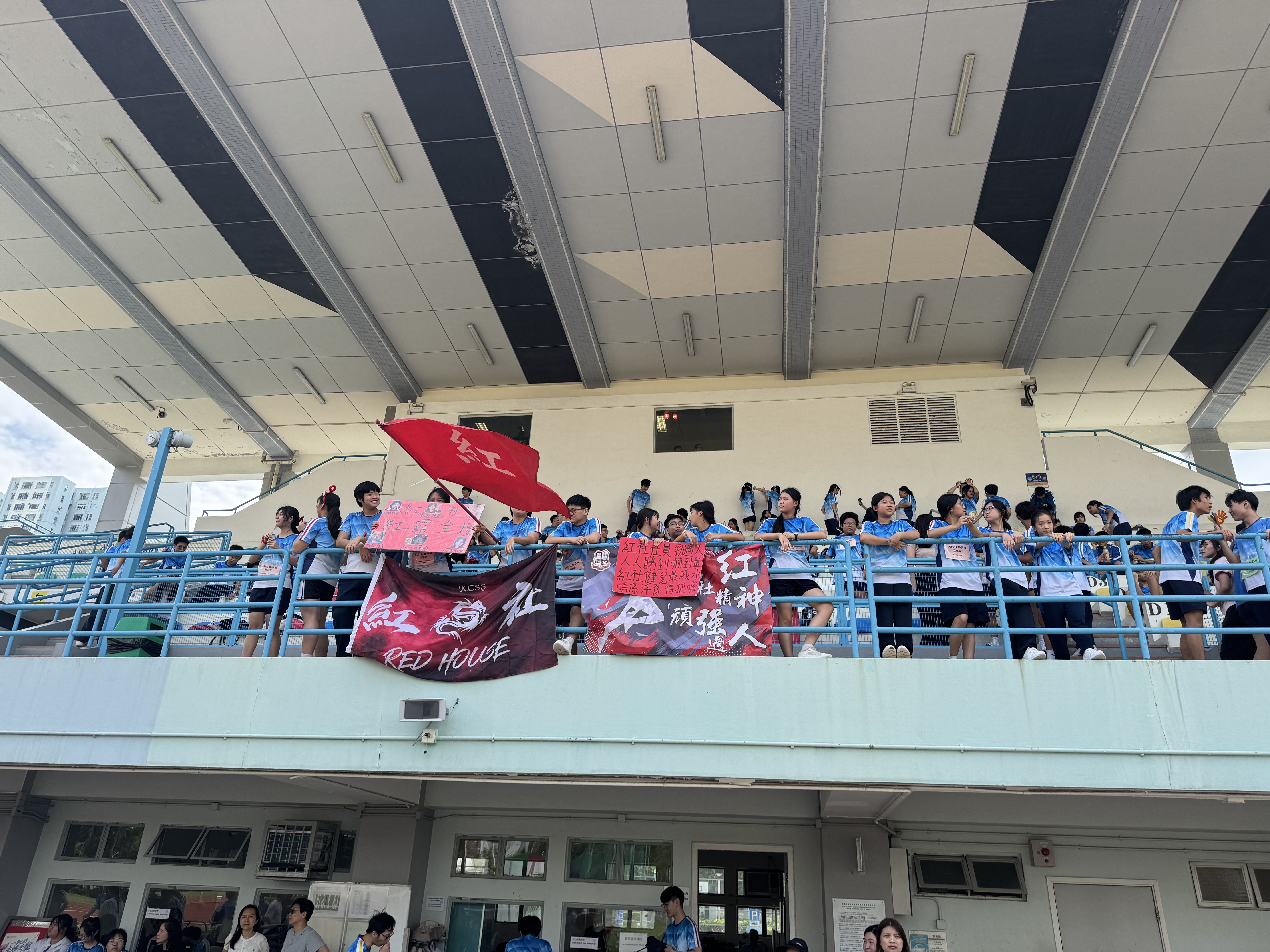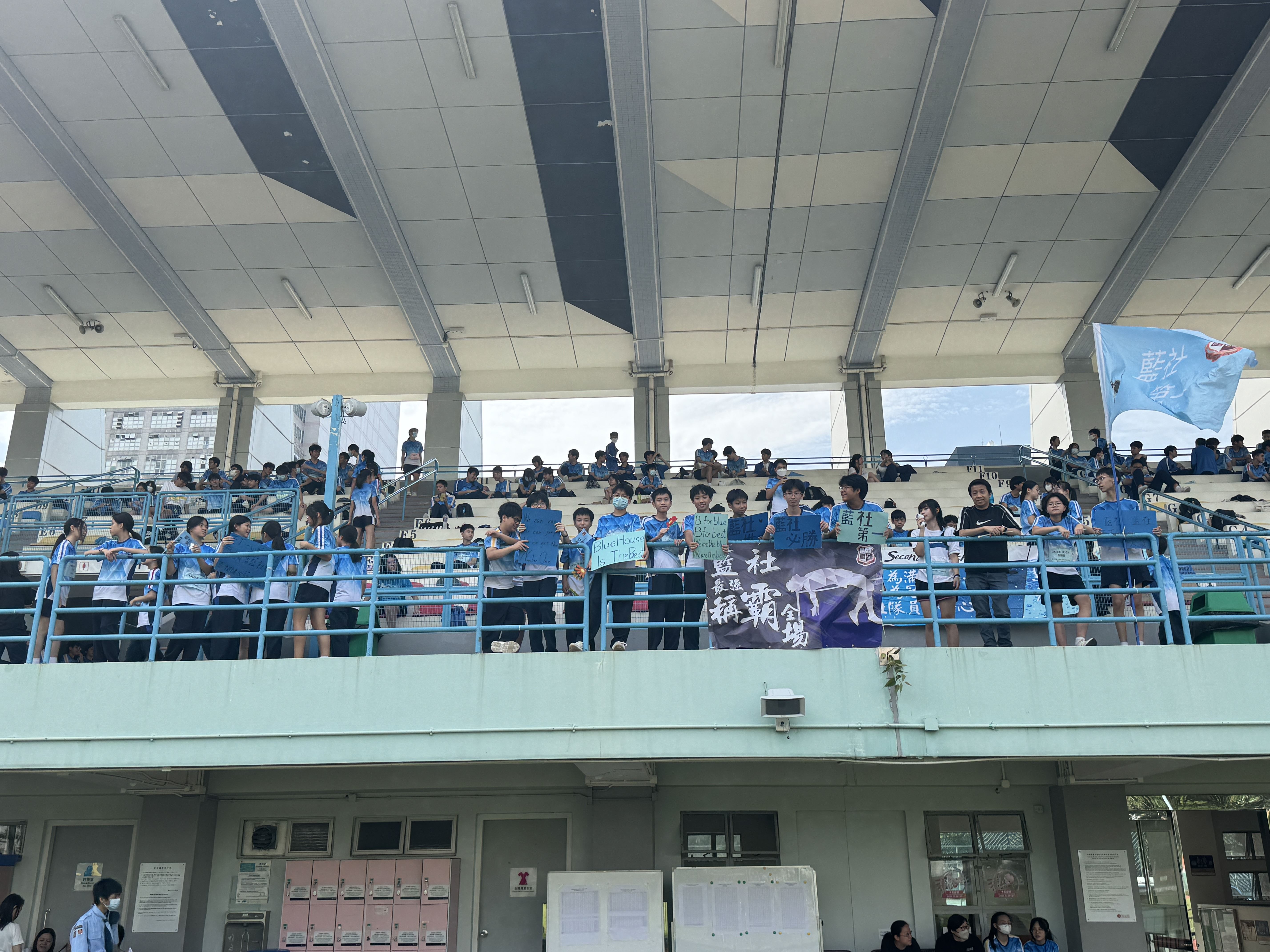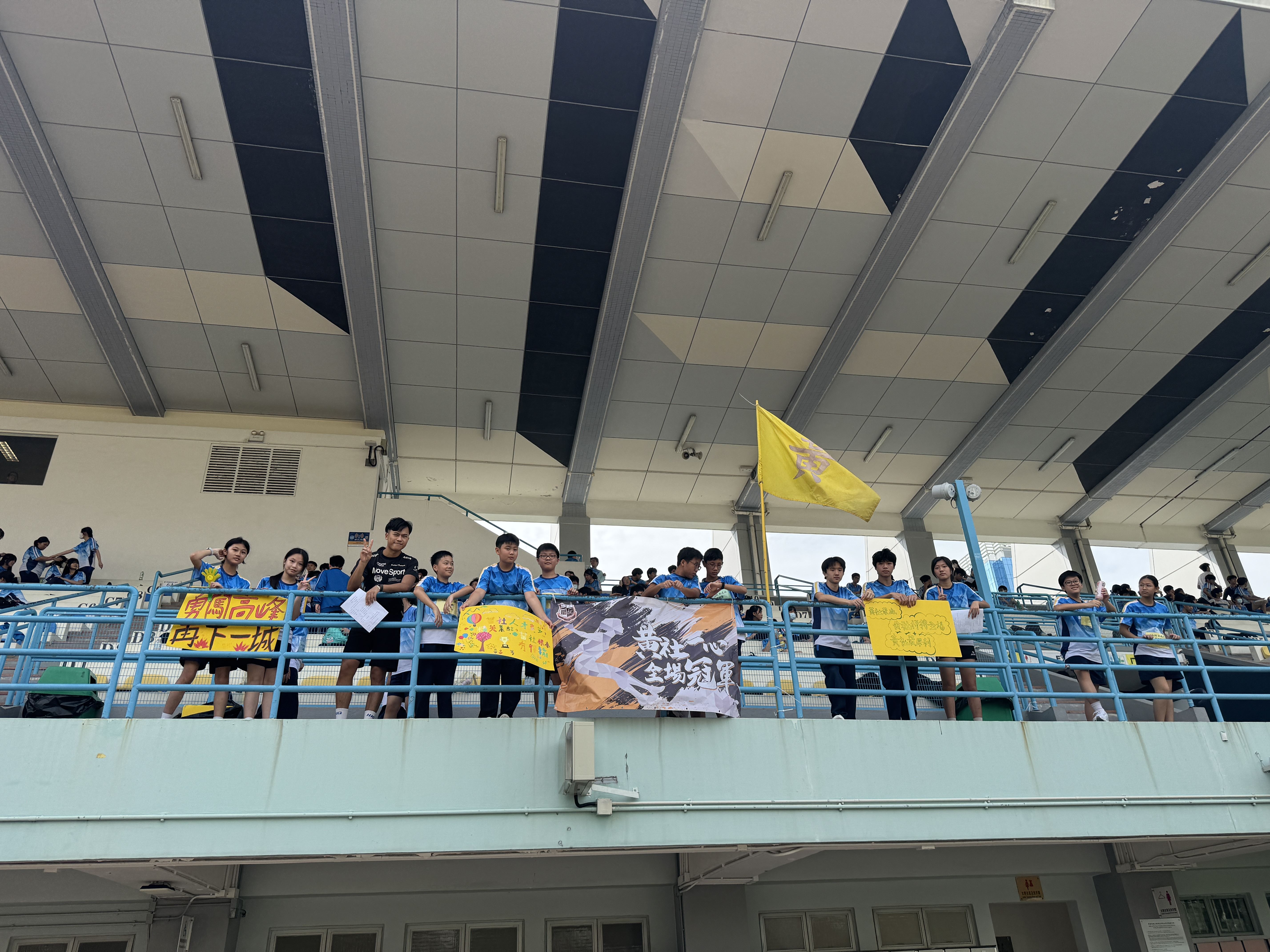 四社幹事帶隊中一啦啦隊成員於陸運會為各社運動健兒打氣。