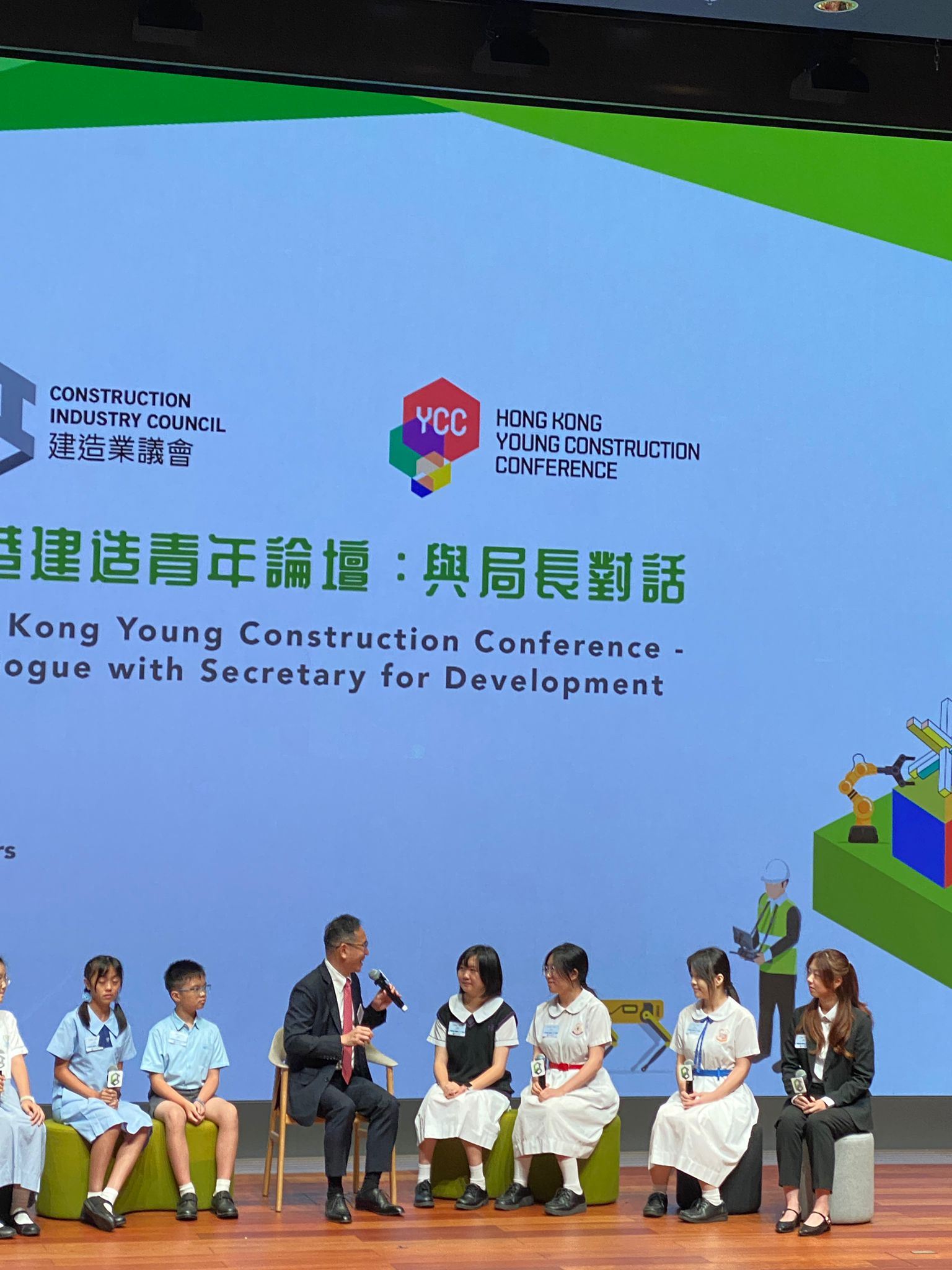 本校5D班黎若南同學應建造業議會邀請,出席「與局長對話:建造未來 建造新角色」活動。當中與發展局署理局長林智文進行現場訪談,討論年青一代與城市建築規劃的關係。此外,本校KOL學生亦到場聆聽並學習。
