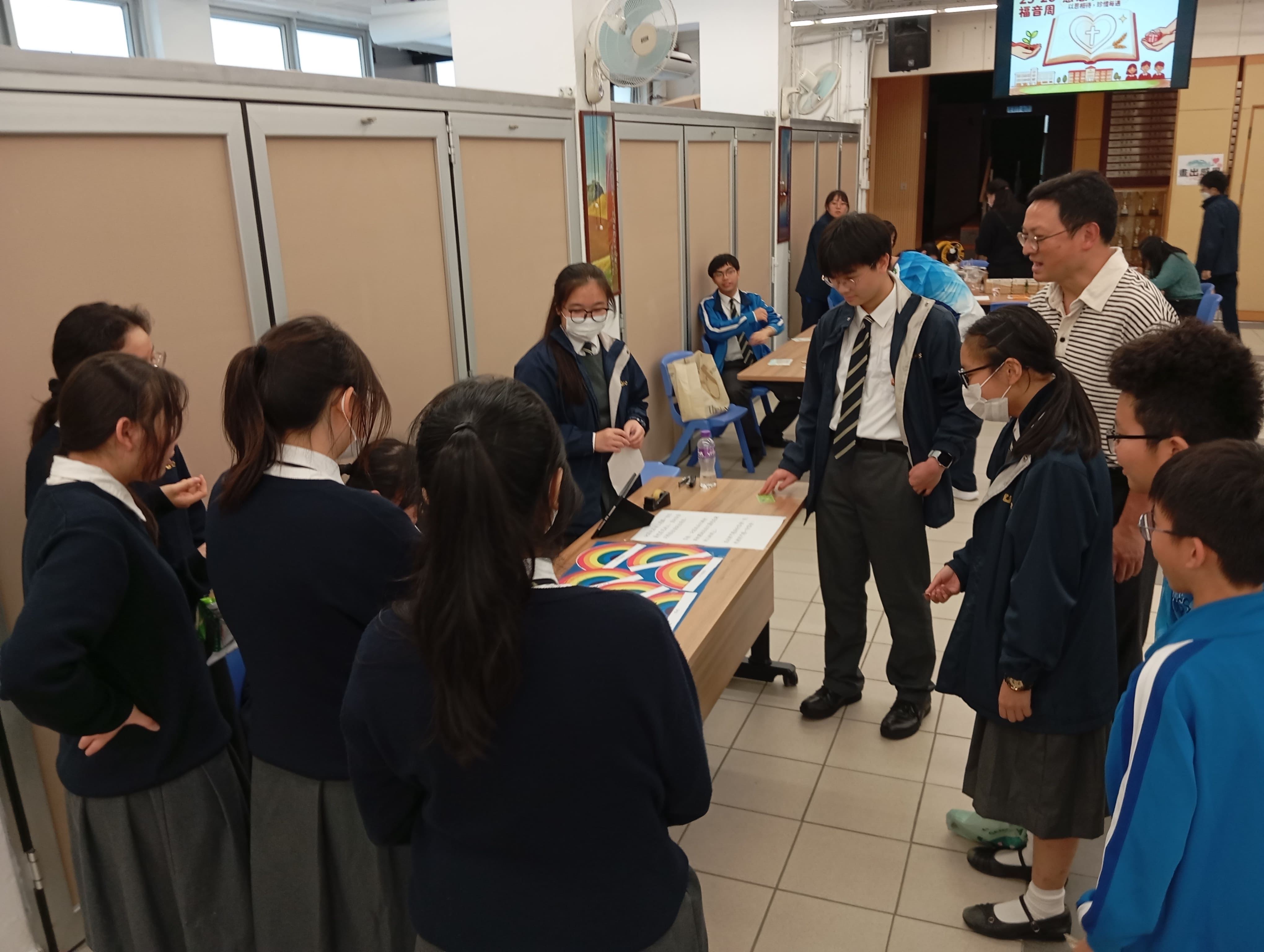 福音周的第二三天,在12月10日和12月11日,宗教委員會和英才計劃同學在學校副堂舉行了一系列「感你玩左未」的攤位遊戲。這些活動包括碌保齡球(碌出感恩),拼圖(拼出感恩)、做手工吊飾(畫出感恩)、掟彩虹(掟出感恩)、夾禮物(夾出感恩)、寫下感恩的事(感恩樹)等。同學們非常積極參與,通過不同的攤位遊戲學習感恩。