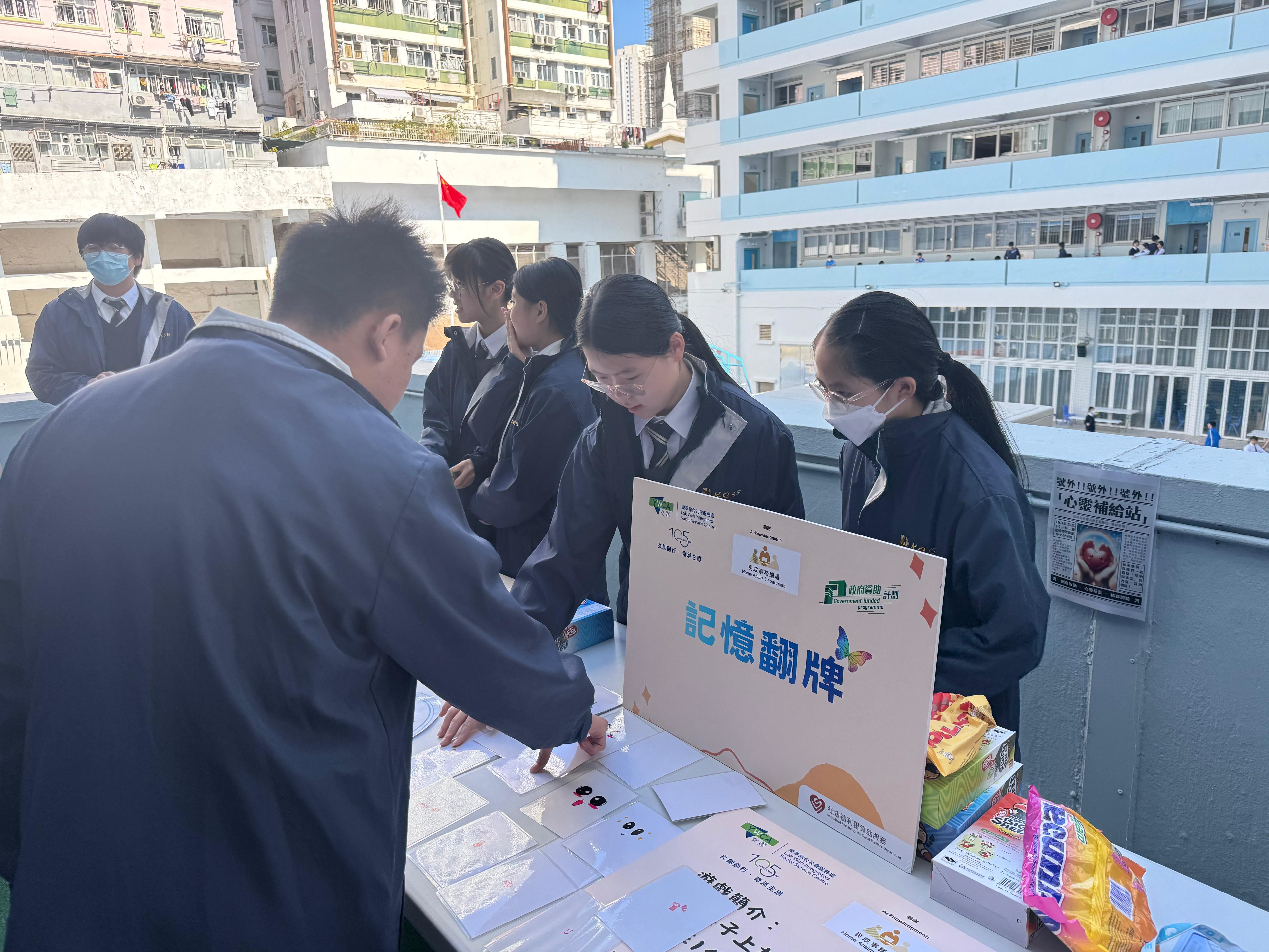 輔導委員會聯同香港基督教女青年會樂華綜合社會服務處及中一同學,精心設計及準備以「接納與承諾治療」為主題的攤位,讓校內學生參與,從而提升他們對理念及基本技巧的認識與應用。中一同學積極帶領大家探索「接納與承諾治療」的核心概念,並學習如何在生活中接納自己、勇敢承諾!