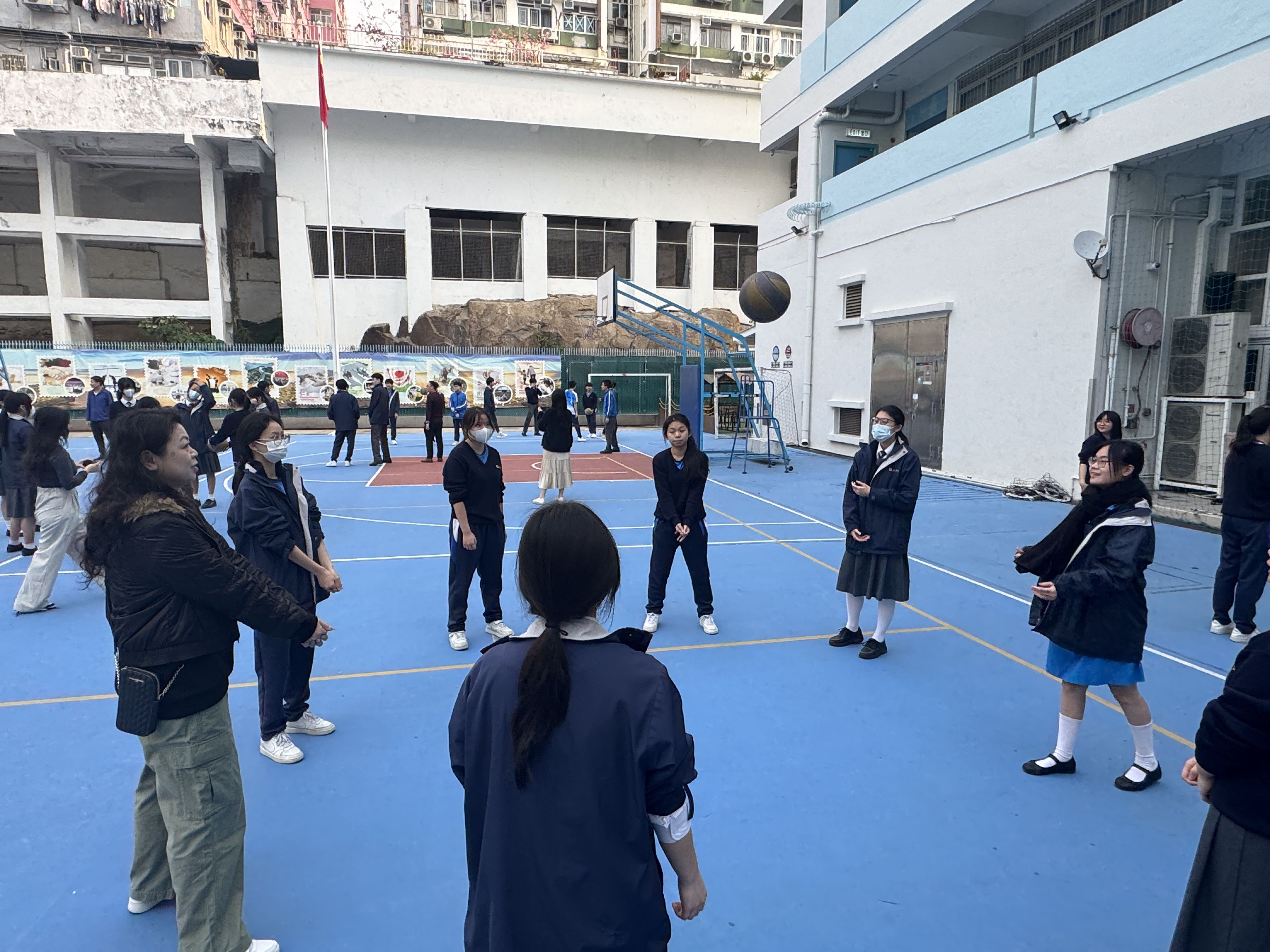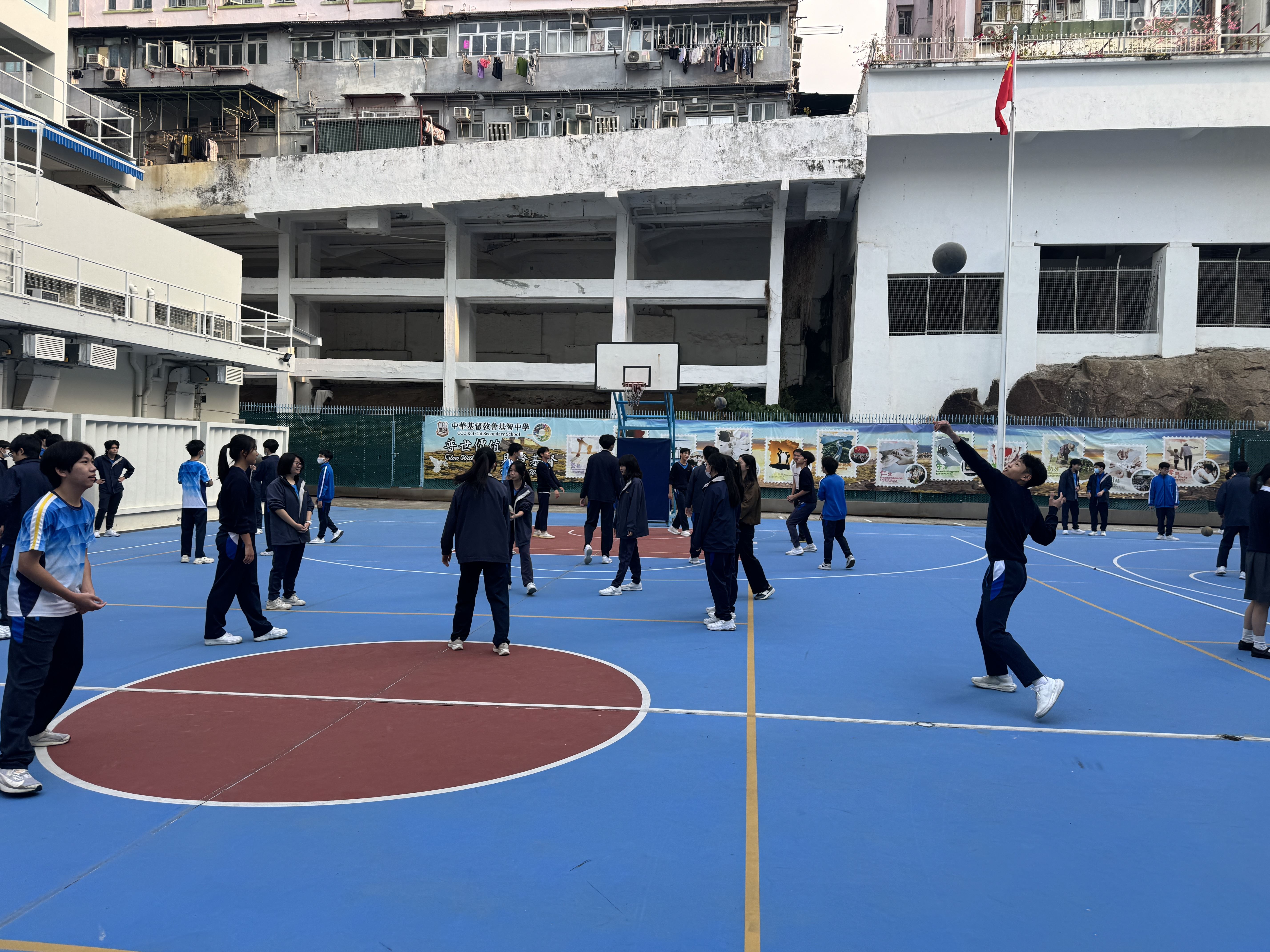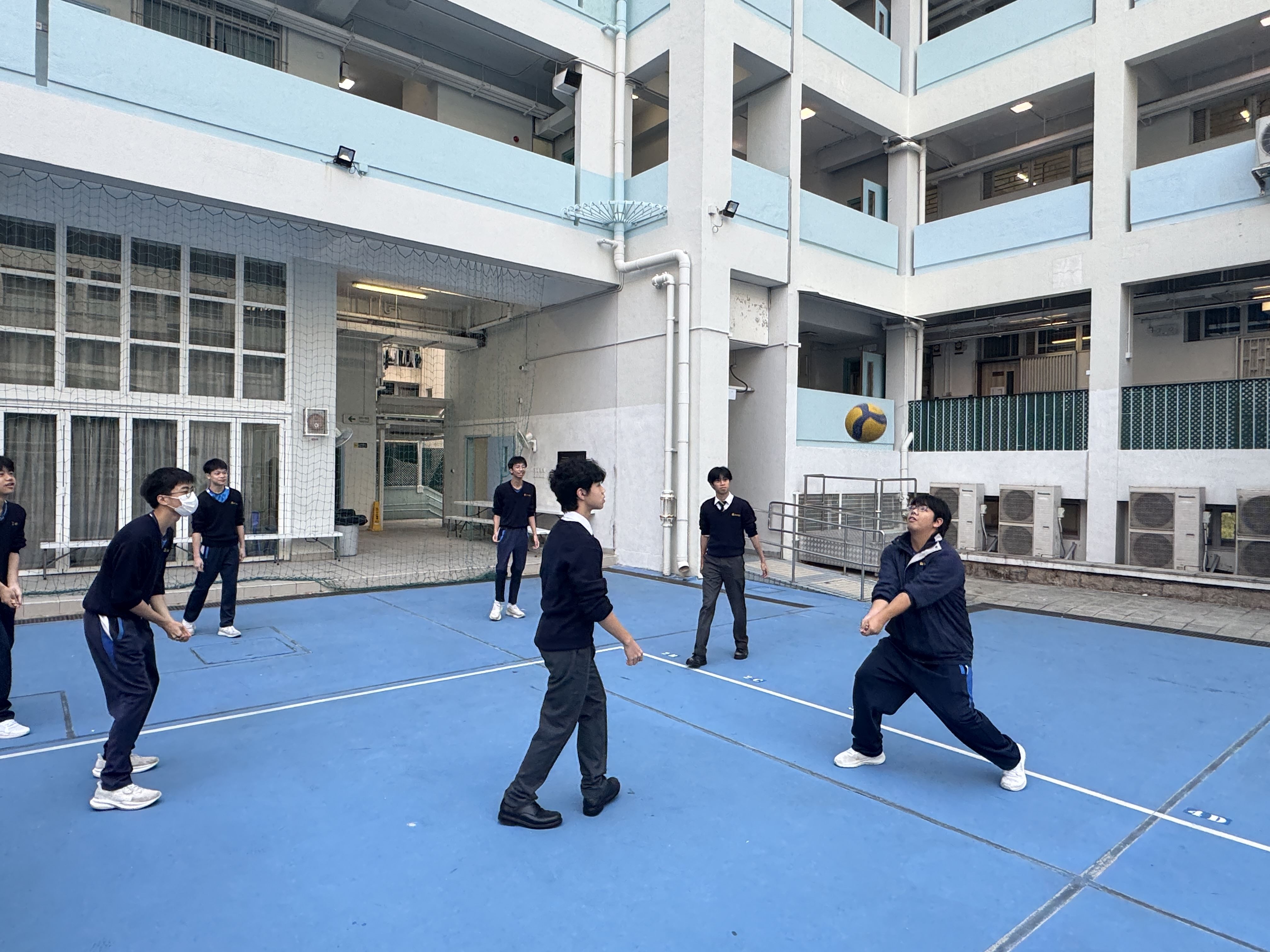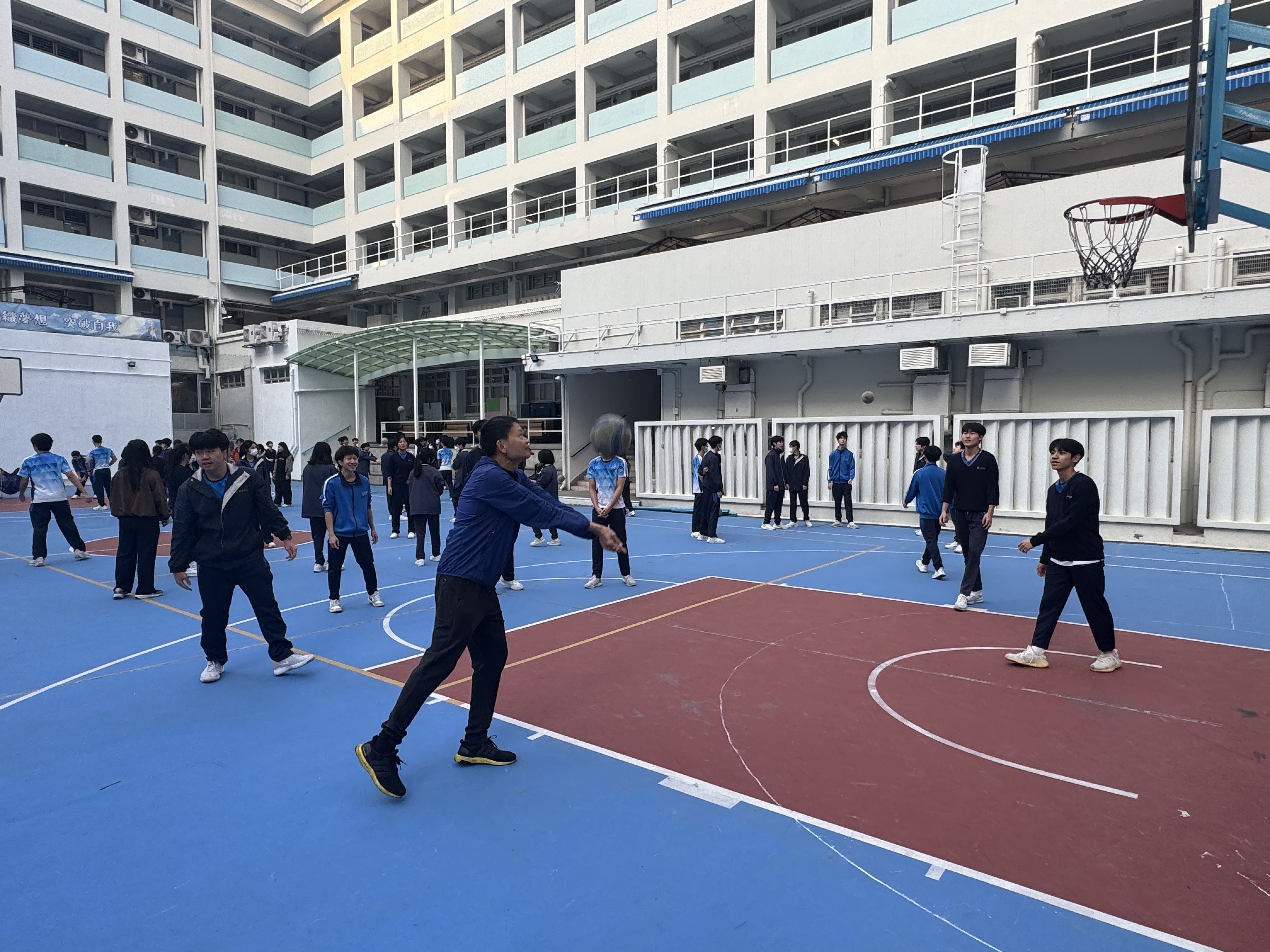 由中六級學生自主帶領,於當日早會舉辦了早會運動活動,學生利用早會時間於操場進行跨班分組打排球。