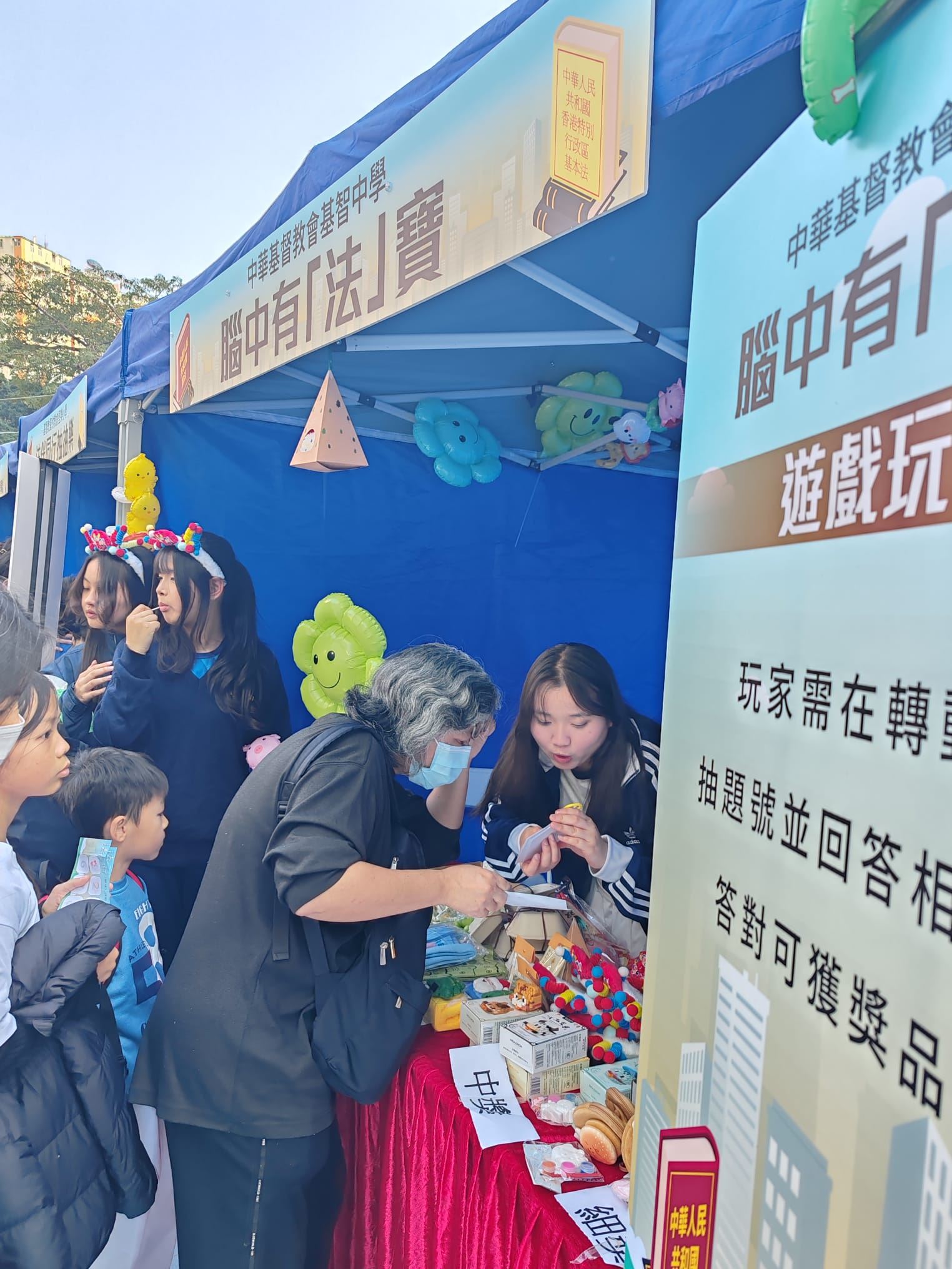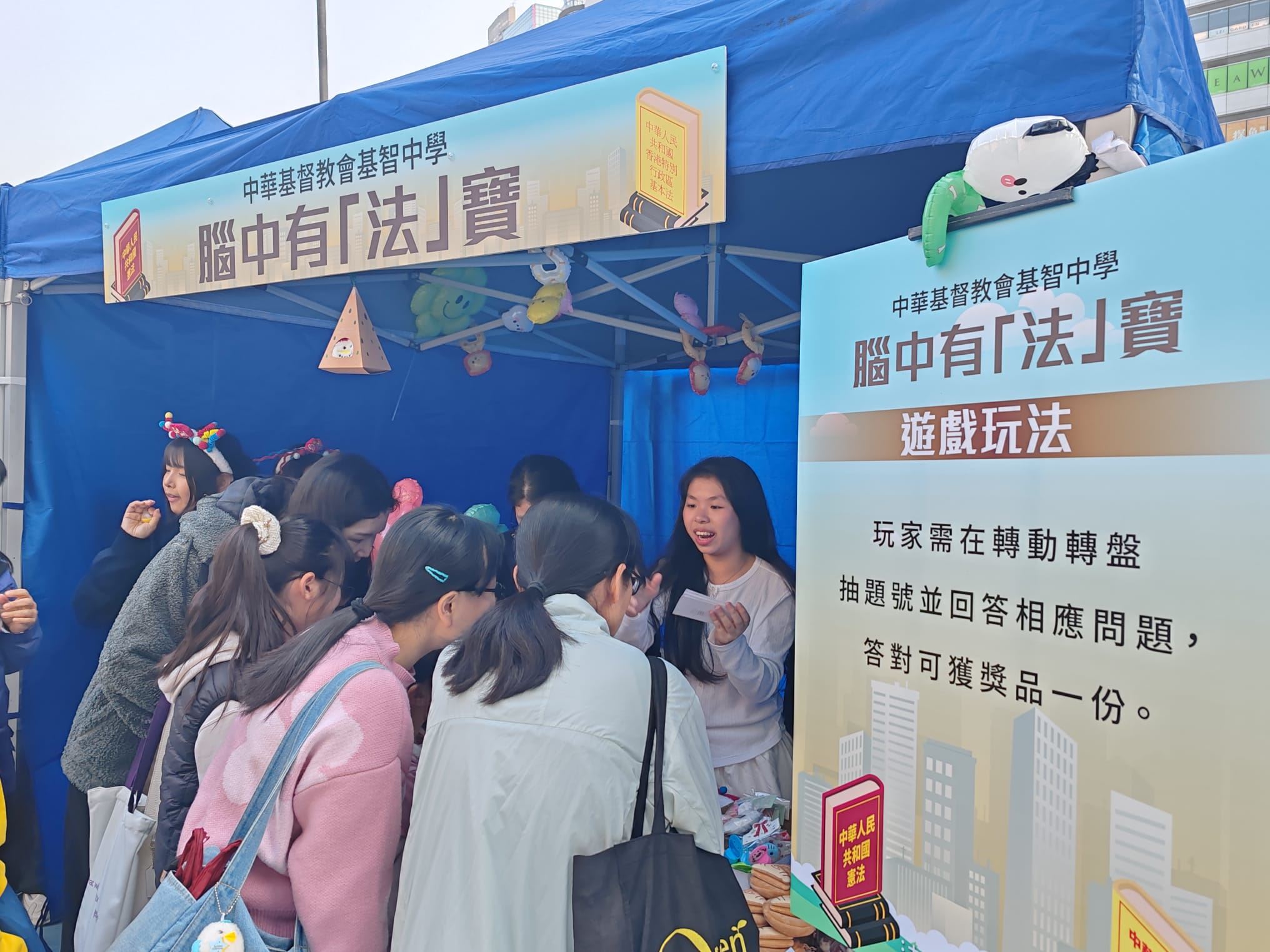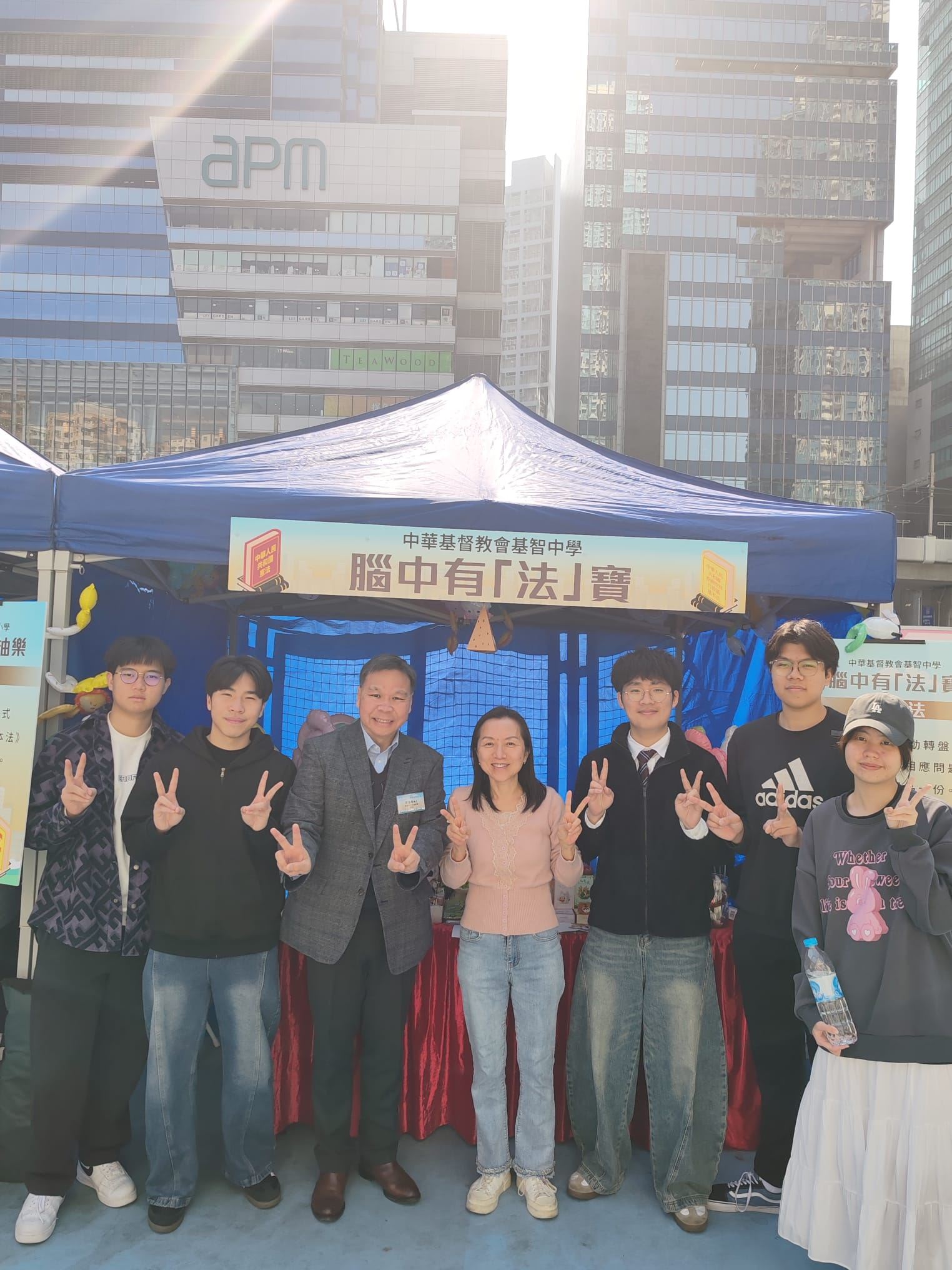 本校參與由「觀塘區青年發展及公民教育委員會」主辦的<法伴同行-樂在觀塘>公民教育嘉年華攤位遊戲營運及舞台表演,八位學生透過營運攤位遊戲,向公眾推廣<憲法>及<基本法>,活動提升學生的國民身份認同,及獲取參與社會服務的經驗。另九位出演的學生除了以音樂及舞蹈將歡樂帶給社區人士,亦能發揮及展示自己的才能,獲益良多。