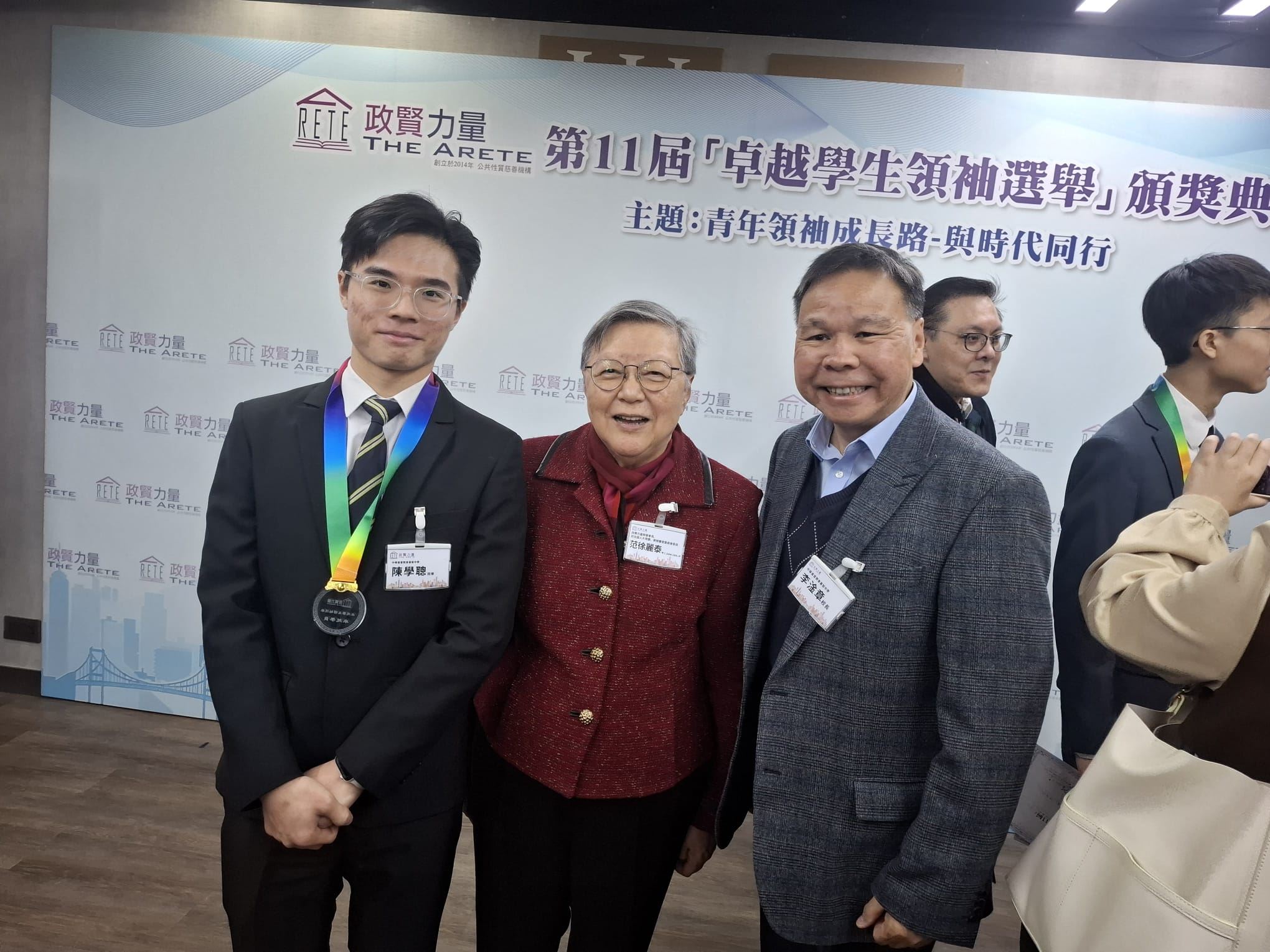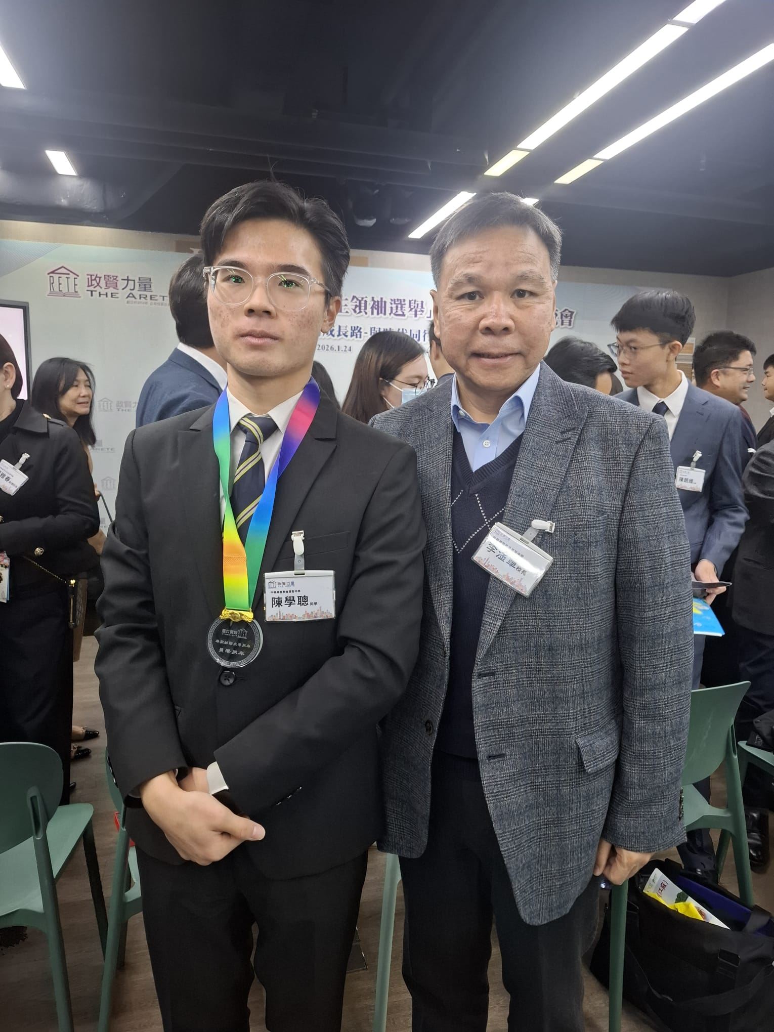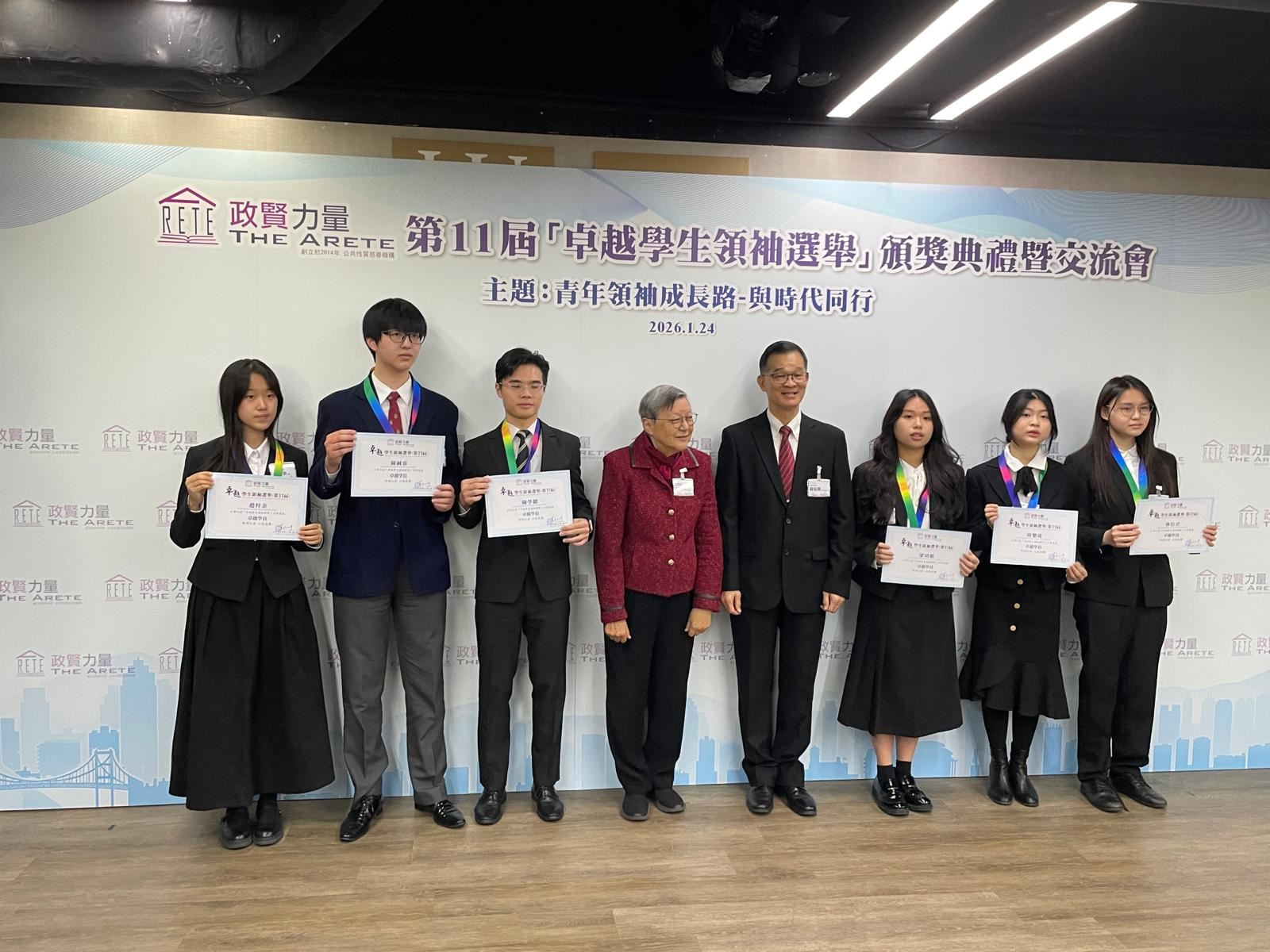本校學生陳學聰獲政賢力量「卓越學生領袖選舉」嘉許成為「卓越學員」,並 於2026年1月24日出席「卓越學生領袖選舉」頒獎禮,由范徐麗泰GBS,JP頒授獎牌及獎狀。恭喜陳學聰同學獲得嘉許。