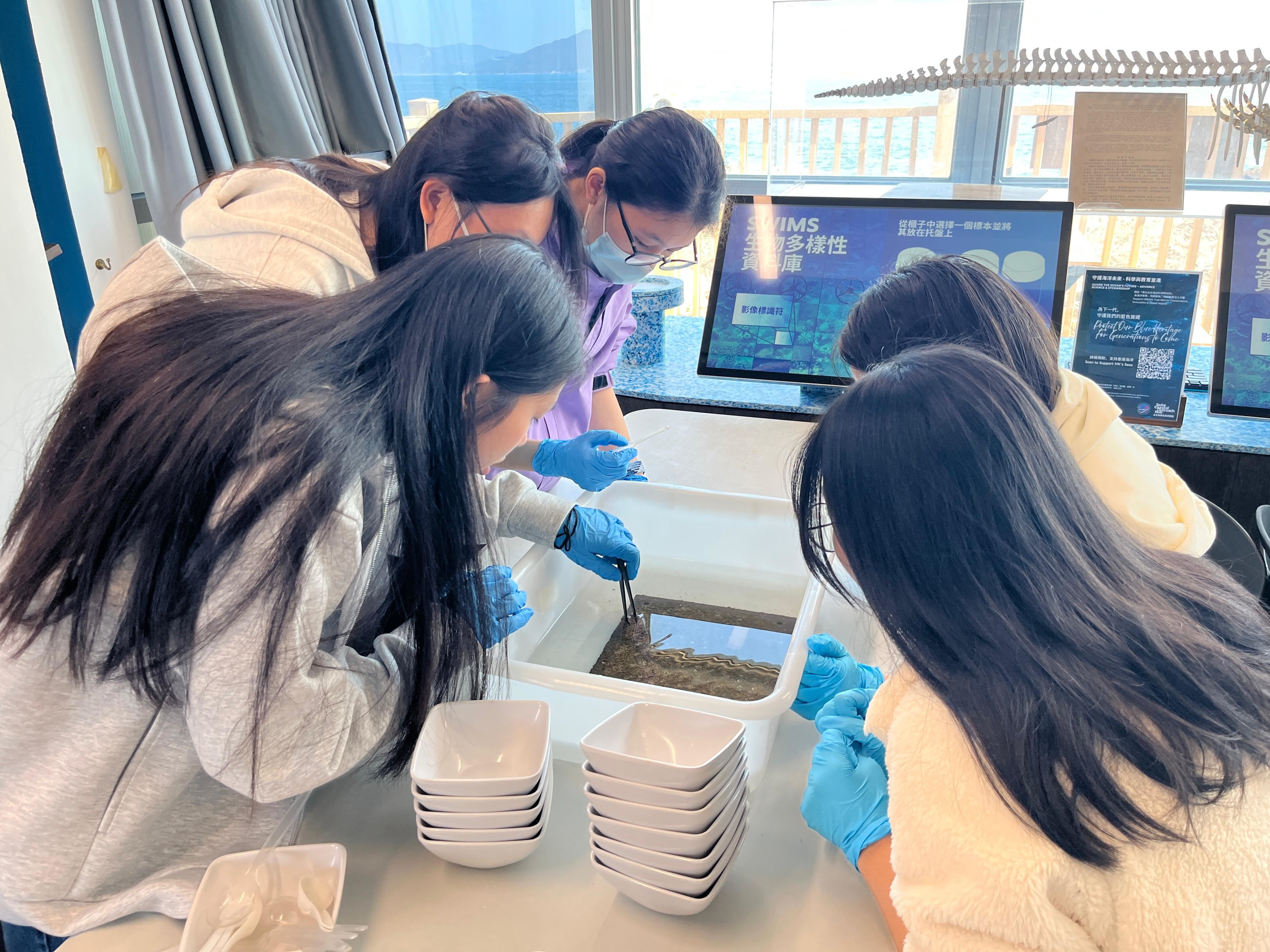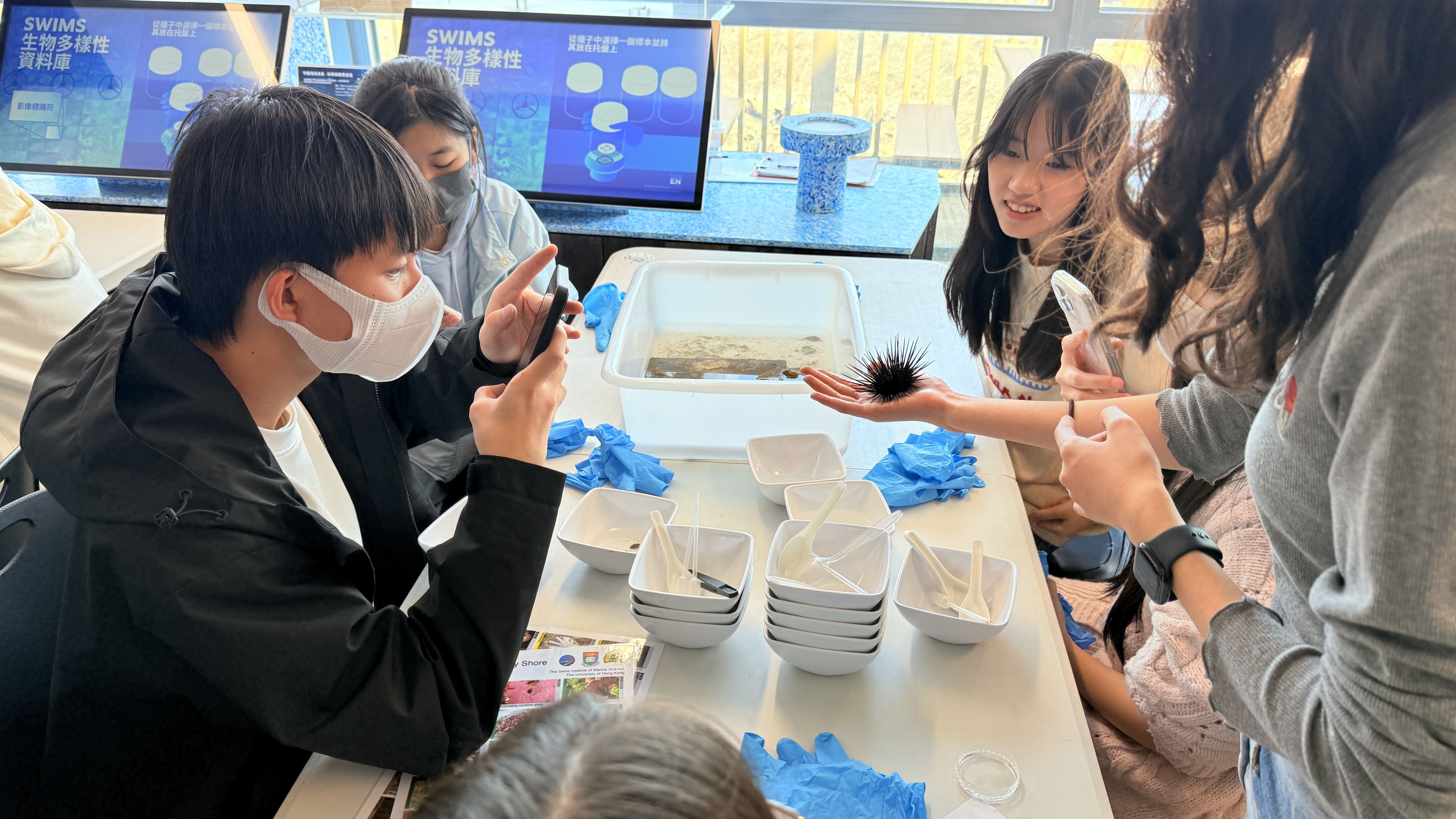 1月17日,TUF和生物科共同安排同學們前往香港大學太古海洋科學研究所參加工作坊。同學在活動過程中親身接觸海洋科學家,了解和體驗他們平日的工作内容,包括在海洋生物採樣器上找出海洋生物,例如:海螺、寄居蟹、海膽等,並把牠們放在顯微鏡下觀察,繼而用生物分類學方法分組和歸類物種。同學們全神貫注,踴躍參與,從中深入了解香港的生物多樣性和加深對海洋科學家的認識。