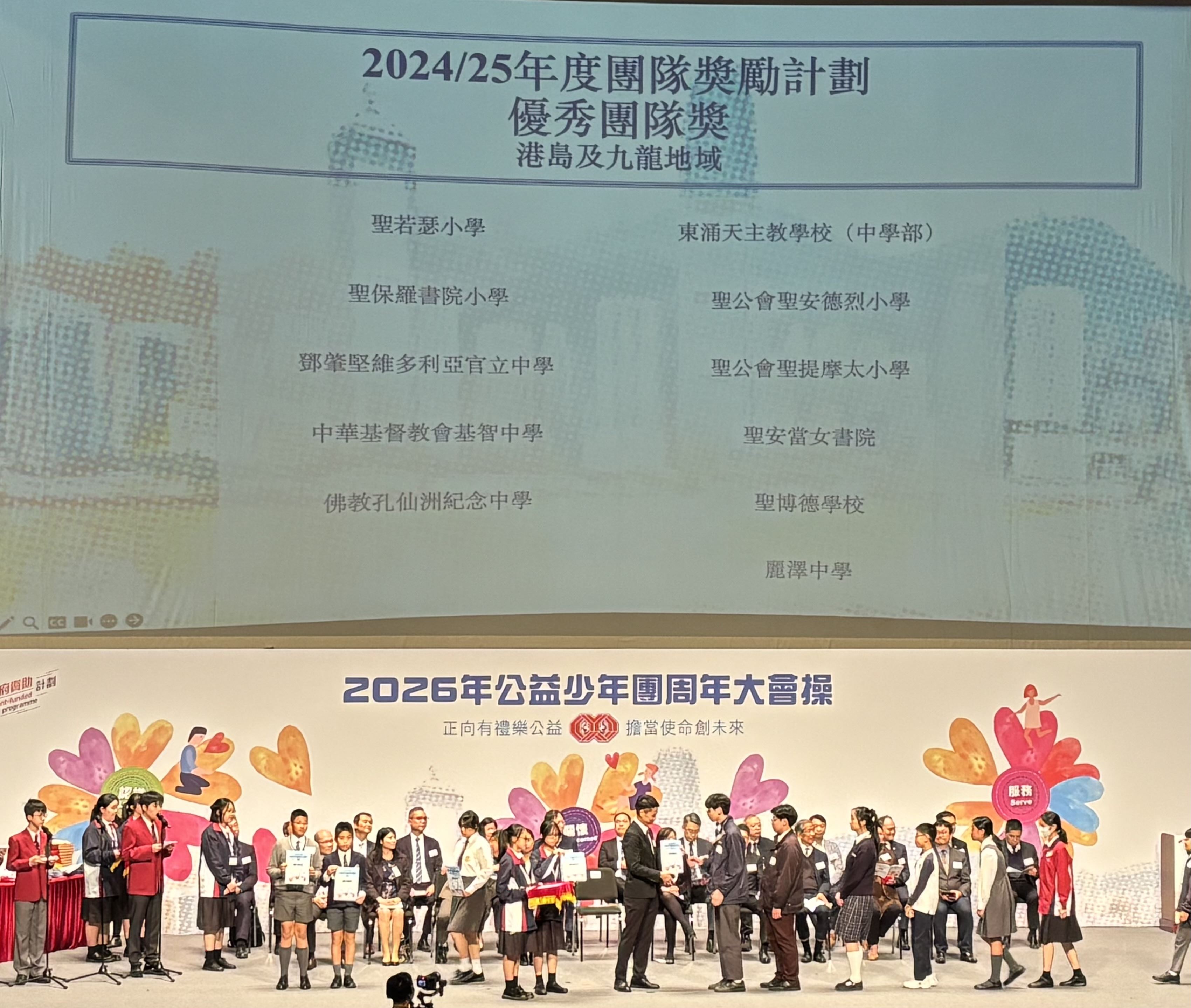 我校公益少年團榮獲2024-2025年度優秀團隊獎,由2C蘇煒軒同學代表學校於2026年1月30日(星期五)假灣仔伊利沙伯體育館領獎。