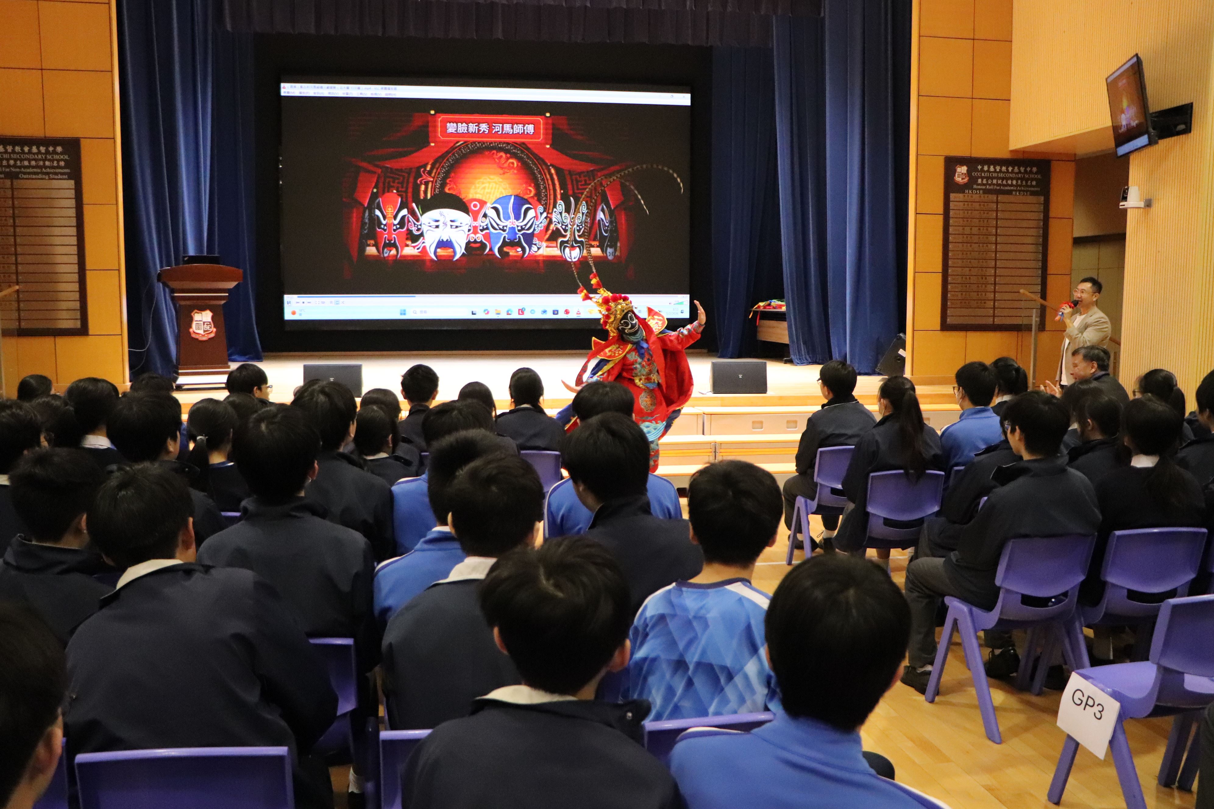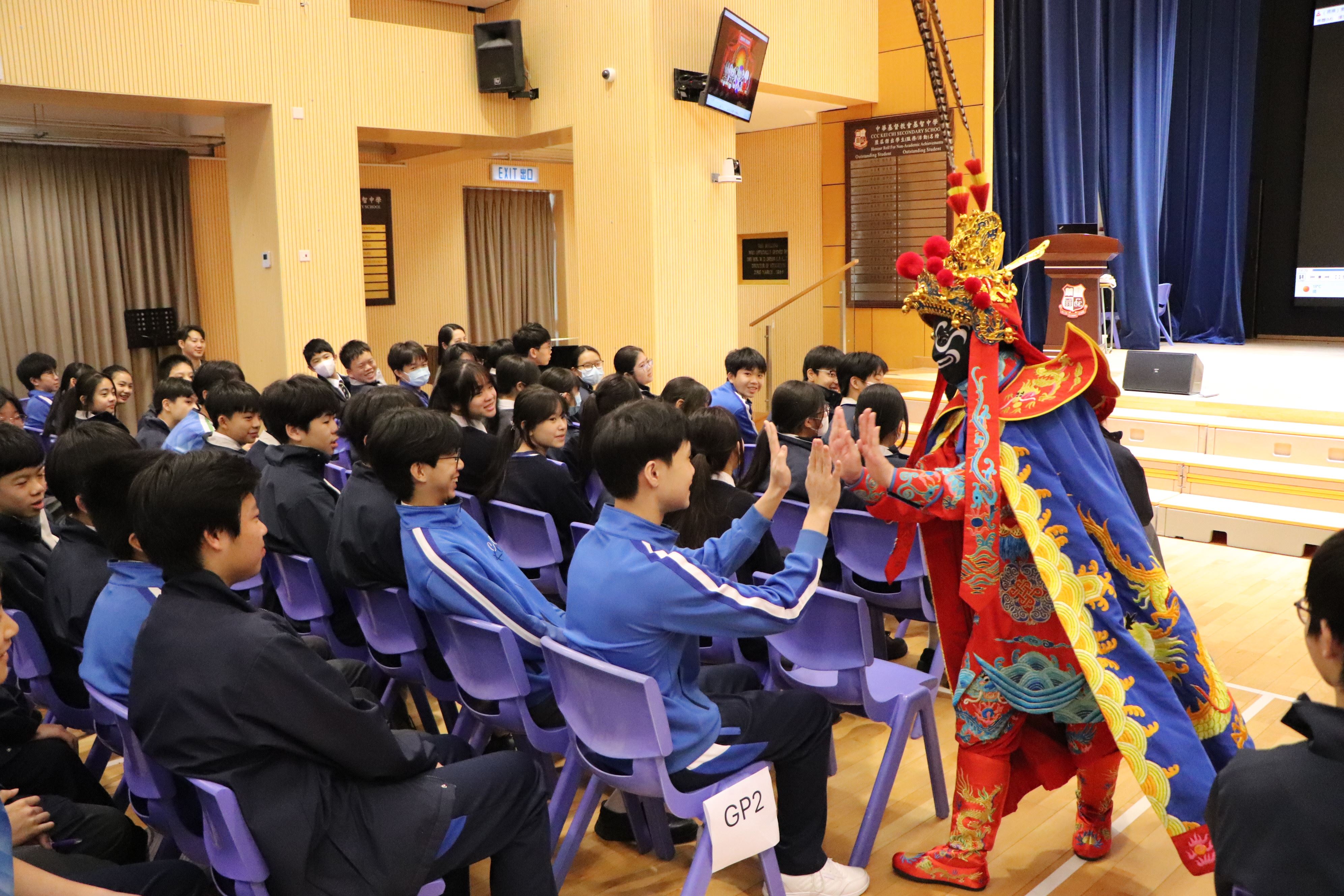 中二級同學到禮堂欣賞川劇變臉絕技。師傅技藝精湛,瞬間變換多張臉譜,贏得全場掌聲。活動讓同學近距離認識傳統藝術,亦讓同學在互動環節中一嘗變臉的滋味,領略中華文化的深厚底蘊。